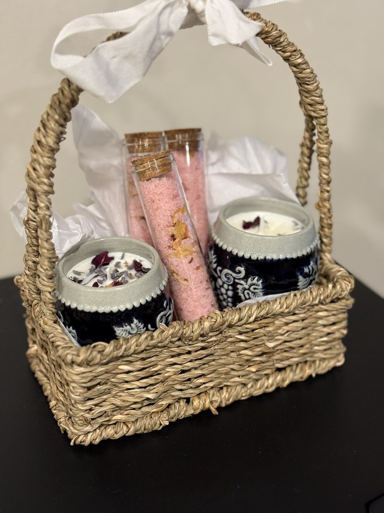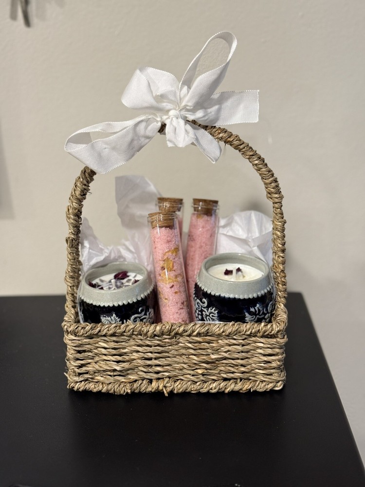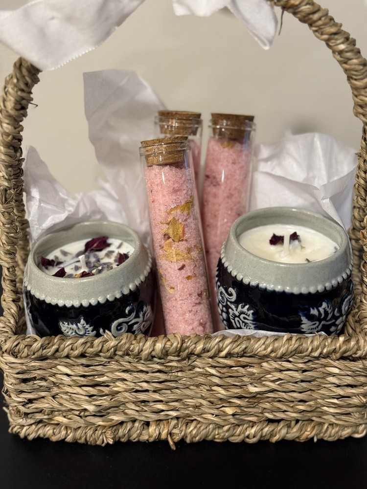 This scented candle set is a romantic Valentine's Day gift for her, featuring a soothing Crème brûlée scent. Handmade in the United States from soy wax, each medium-sized white candle is round in shape with a single wick. The set includes two candles and three bath soaks perfect for creating a romantic atmosphere in the bathroom or bedroom. Additionally, these decorative candles come in a pack and are ideal for pampering bath soaks, making them a thoughtful and luxurious present for a loved one on Valentine's Day.