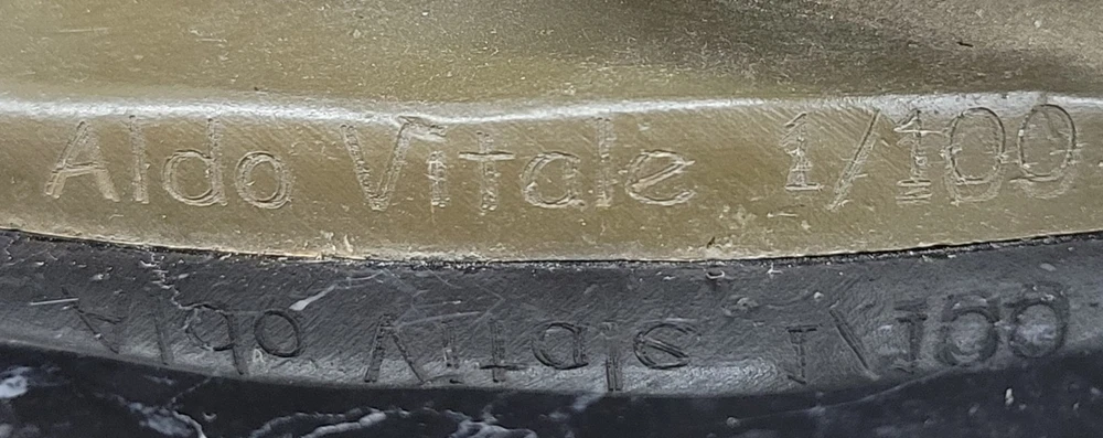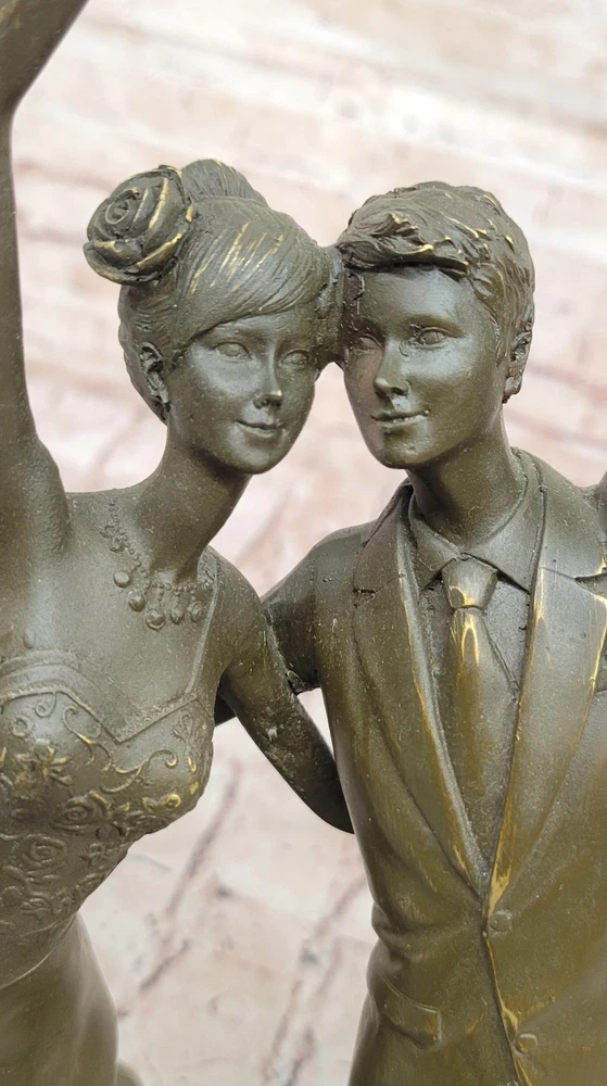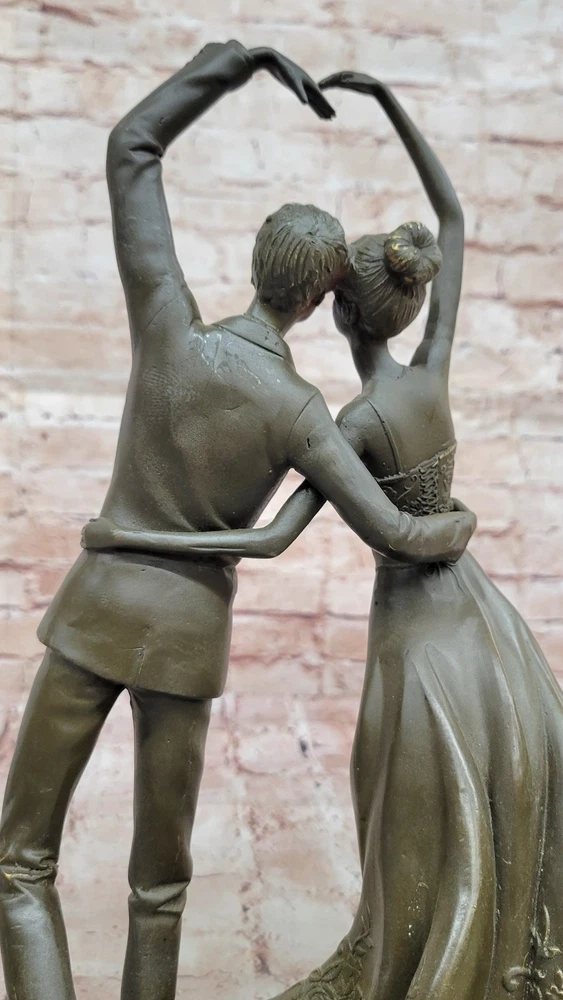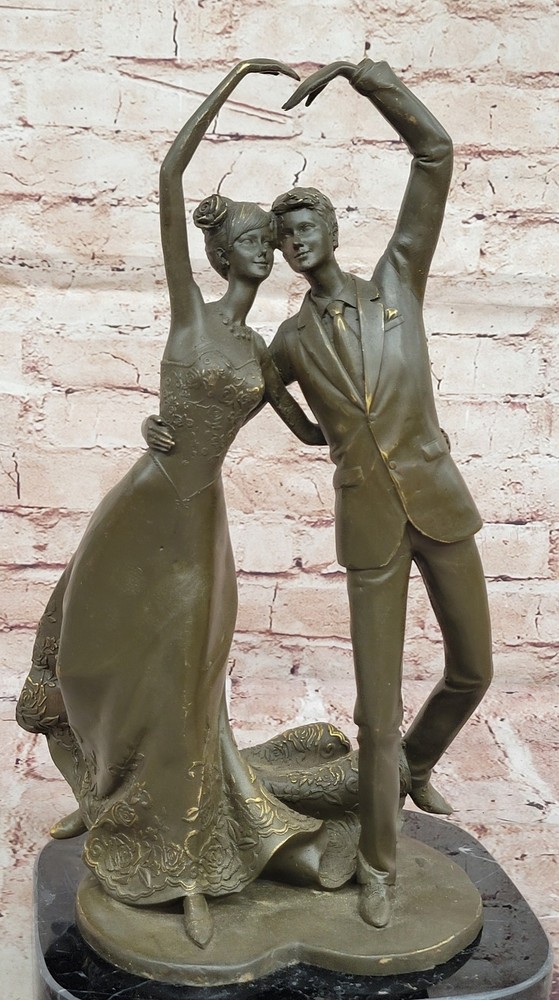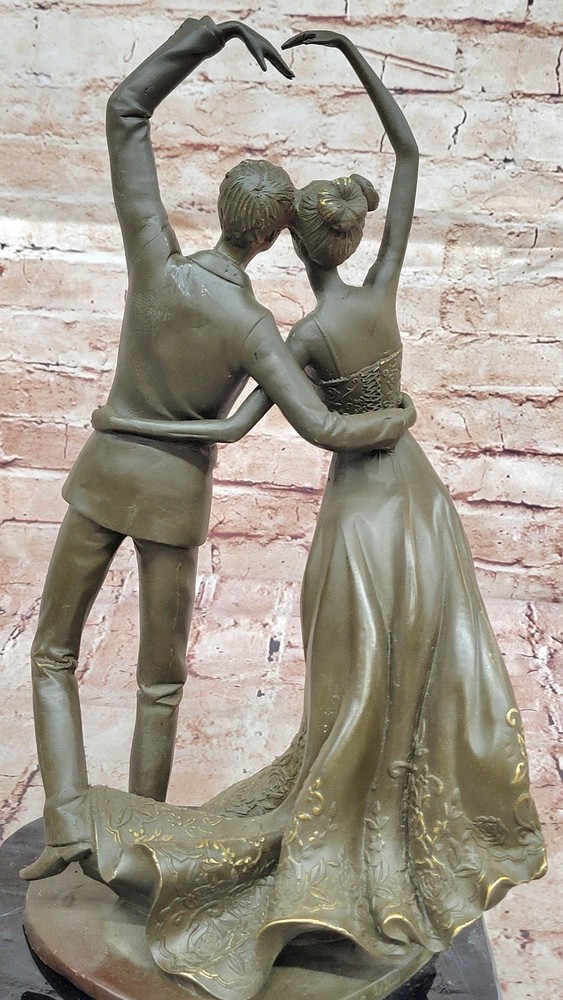 Romantic Waltz Dancers Bronze Statue Sculpture by Vitaleh Collector Gift Art NR Romantic Waltz Dancers Bronze Statue Sculpture by Vitaleh Collector Gift Art NR Condition : This sculpture is in perfect condition. Bronze Dimensions with Marble Base: Height 15" X Width 8" Marble Dimensions: Diameter 8" Height without base:14" Weight:14 LBS Inventory:54GTS4408245 This exquisite limited edition bronze sculpture by Aldo Vitaleh beautifully captures a romantic moment between a couple gracefully dancing the waltz. Their poised stance and flowing movement reflect both elegance and emotion, making this piece a timeless tribute to love and partnership. The sculptor’s eye for detail brings the couple to life—each gesture, fold of their garments, and expression is delicately rendered to convey the intimacy and grace of the dance. Handcrafted using the revered lost wax casting method, this genuine bronze sculpture is finished with a rich brown patina that enhances its classic charm. The couple stands atop a polished black marble base, providing a solid and refined foundation for the composition. Signed and individually numbered by the artist, this piece is a true collectible—representing exceptional craftsmanship and artistic sentiment. Whether as a meaningful anniversary, wedding, or birthday gift, this sculpture makes an unforgettable impression. It is not only a celebration of love and movement but also a sophisticated work of art that will elevate any space with its beauty and emotional depth. A perfect choice for anyone who appreciates romance, fine sculpture, and enduring artistry. Shipping Terms : Most of our items are shipped via USPS (United States Postal Service) mail or UPS. Most orders are shipped within 24-48 hours of purchase. Please be aware that not all items are available for USPS shipping due to size and weight. We do ship to Hawaii, Alaska, Canada, Puerto Rico, APO/AE, and U.S. Virgin Islands, however, an additional charge may be required. Please contact us before making any purchases in these areas. For Non-USA customers, you may be responsible for all duty, tax, brokerage fees that may be due upon delivery (shipping costs cover freight charges only). We also ship internationally. Please refer to the "Shipping and Handling" chart for the rates for each area. Payment : We accept just about any form of payment. PayPal, Master Card, Visa or American Express credit cards. Money orders, cashiers checks, and even personal or business checks. For governmental institutions, we will also accept a purchase order. Please understand that for personal or business checks we have to wait for the check to clear (usually 7 days) before shipping. Condition : New Detailed Hand Crafted Hot Cast Bronze Satisfaction Guaranteed. This is Stock Photo, Slight Color Variation!! Listing and template services provided by inkFrog
