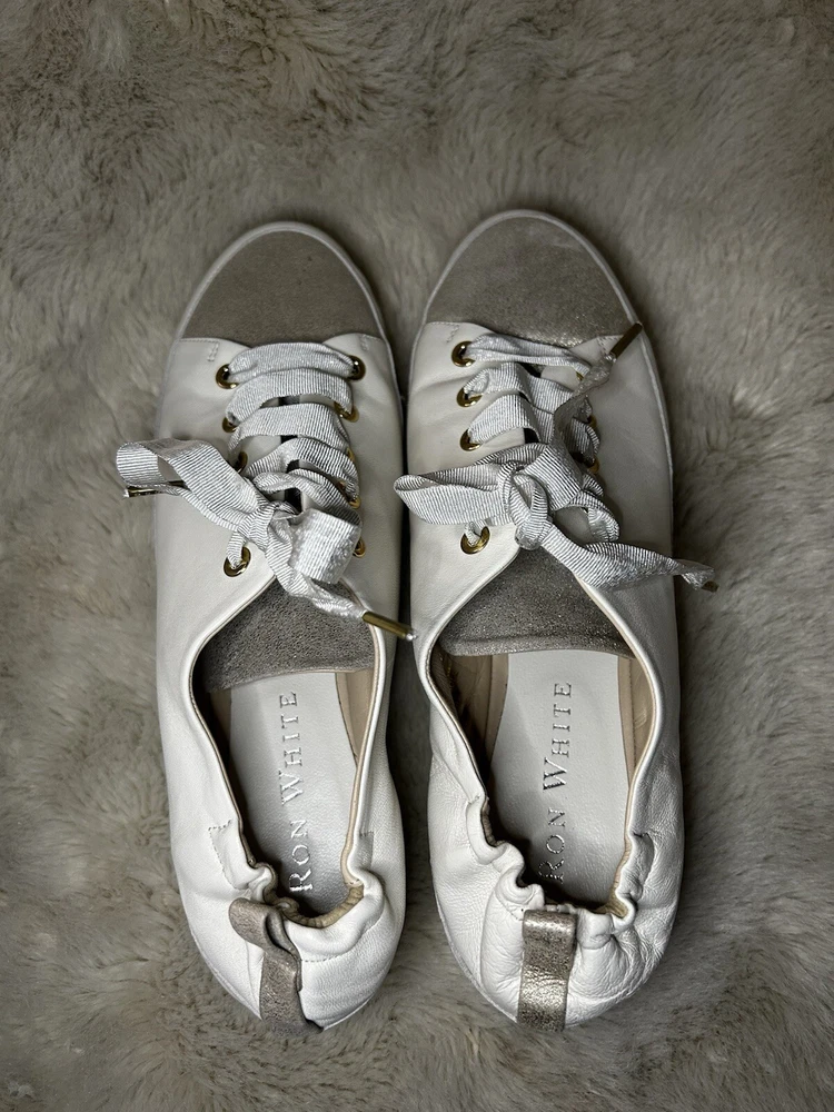 Style: Sneaker Accents: Glitter Season: Summer, Spring, Fall Type: Athletic Signed: No Shoe Shaft Style: Low Top Country/Region of Manufacture: Italy Upper Material: Leather Model: Ron White Theme: Designer Closure: Lace Up Department: Women Pattern: Solid Features: Arch Support Product Line: Nova Sneakers Occasion: Casual, Activewear, Workwear Character: Nova EU Shoe Size: 39.5 Color: White Insole Material: Leather Vintage: No Shoe Width: Standard US Shoe Size: 9.5 Customized: No Brand: Ron White UK Shoe Size: 8.5
