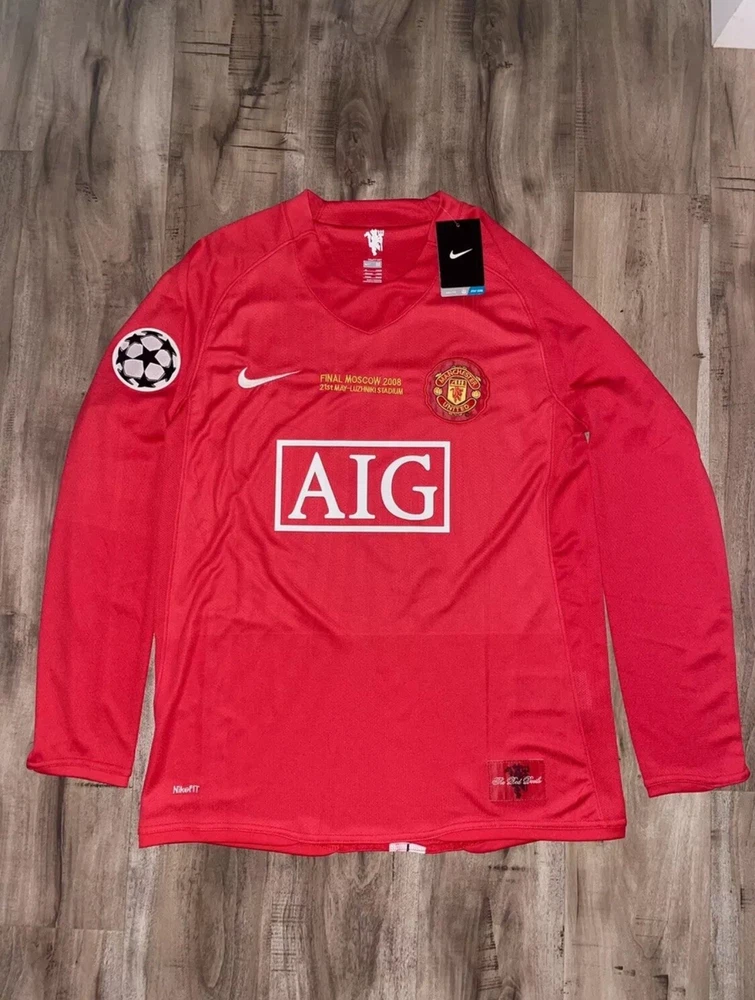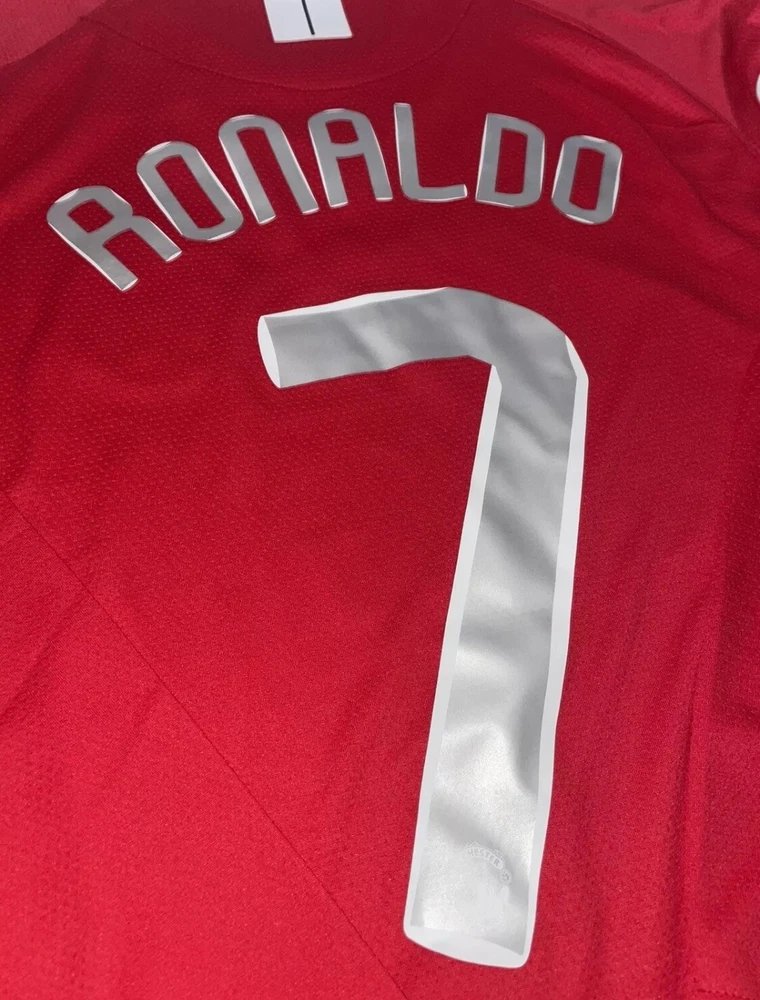 Show your support for Manchester United and one of their greatest players of all time, Cristiano Ronaldo, with this 2008 UCL home red jersey. The jersey features Ronaldo's iconic #7 and is made by Nike. It is perfect for any soccer fan or collector of sports memorabilia. The jersey is a size medium and made in Indonesia. It is great for wearing to games or displaying in your collection. Get this piece of soccer history today!
