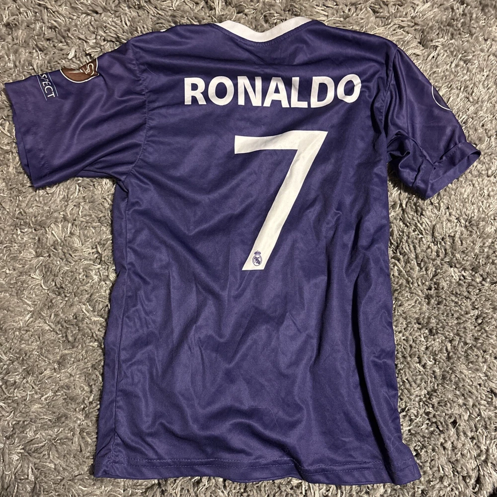 Show your love for Cristiano Ronaldo and Real Madrid with this authentic adidas jersey. Made from high-quality materials, this jersey is perfect for any soccer fan. The purple color and iconic Real Madrid logo make this jersey a must-have for any true fan. Featuring a capacity of 8 oz and a size of Euro 152 (Youth Large), this jersey is perfect for wearing to games or as a part of your fan apparel collection. Made in Jersey, this jersey is a great addition to any sports memorabilia collection. Get yours today and show your support for the greatest soccer player of all time!