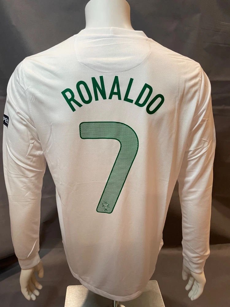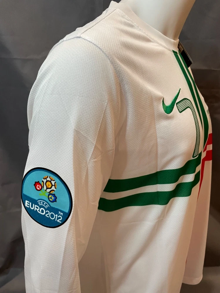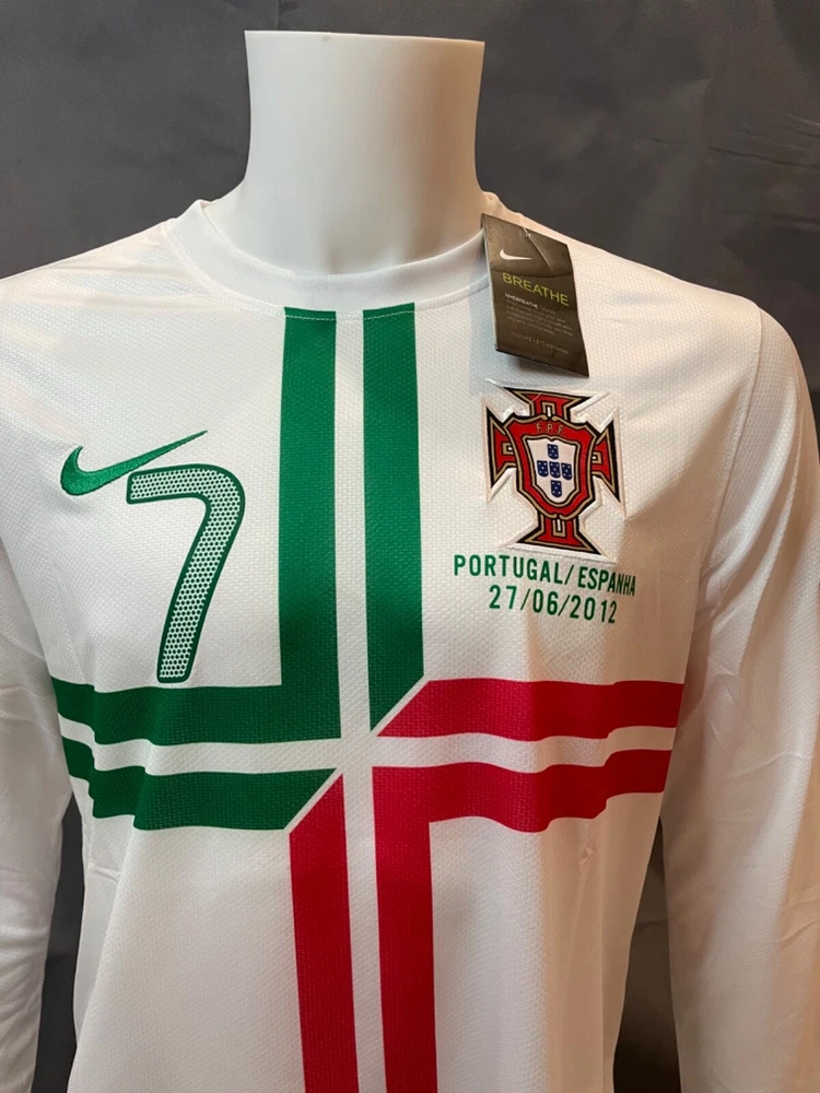 Show your support for Portugal in the 2012 Euro Cup with this Cristiano Ronaldo #7 Retro Away Jersey.by Nike, this jersey is perfect for soccer fans who want to represent their favorite team and player. The white jersey features the iconic #7 on the back and is made with high-quality materials for maximum comfort and durability. This men's large size jersey has a capacity of 8 oz and is perfect for wearing to games. The jersey is a must-have for any fan of Ronaldo or Portugal and is a great way to show your support for your favorite team. Get yours today! If You Have Any Questions Lemme Know.