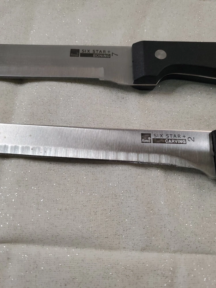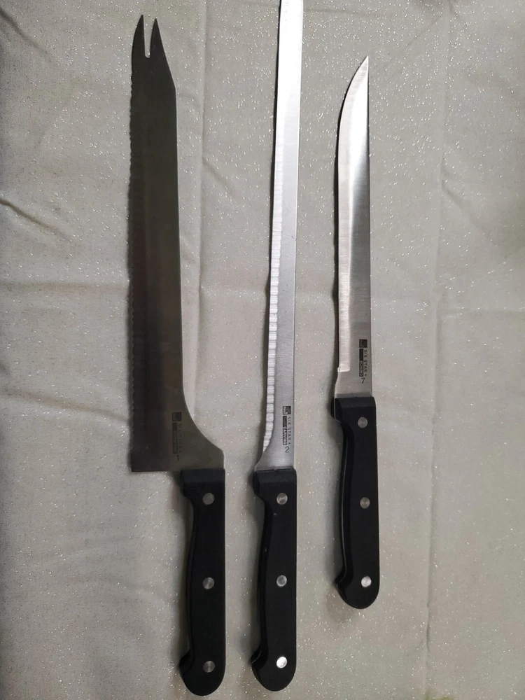 Love this Ronco Showtime knife set! The stainless steel blades are sharp and durable, while the comfortable handles make prep work easy. The three included knives (carving, boning, and showtime) cover all my kitchen needs, and the sleek black design looks great. Fast shipping and solid packaging—definitely worth it!