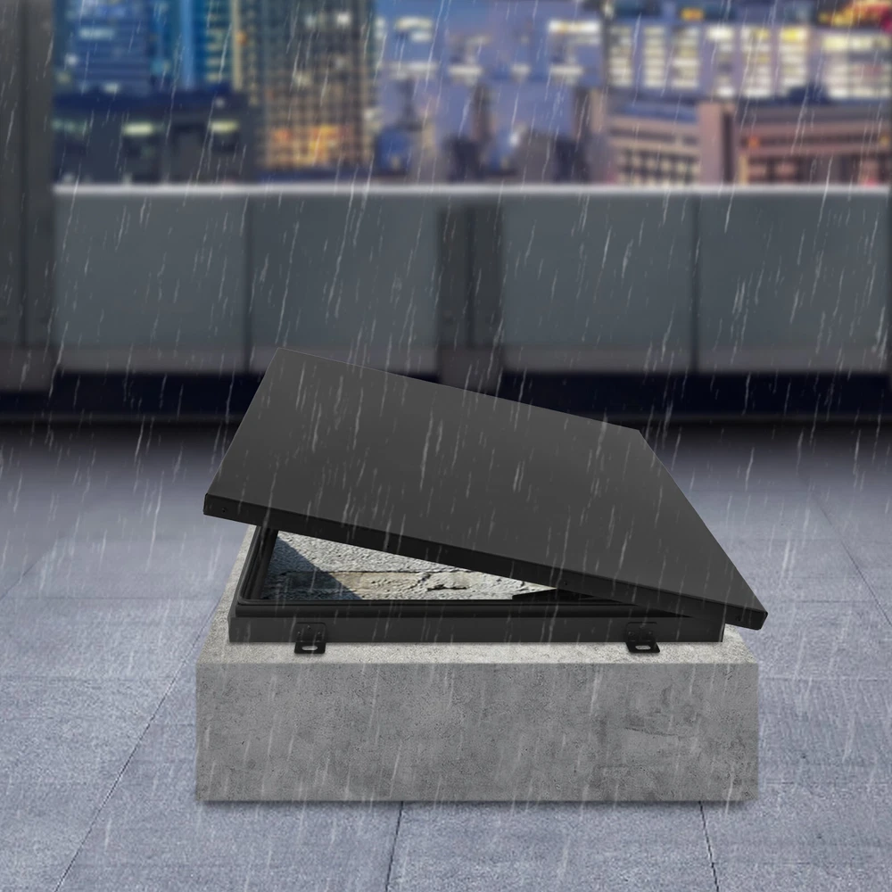 Specification Material: Aluminum Alloy Color: Black Shape: Square Opening and Closing Angle: 90° Package Size: 72.5*72.5*9.5cm/28.54*28.54*3.74in Outer Size: 71*71cm/27.95*27.95in Inner Size: 60*60cm/23.6*23.6in Gross Weight: 6.9kg/15.21lbs Net Weight: 6.1kg/13.45lbs Package Included 1* Roof Hatch Roof Hatch, Roof Access Hatch, Roof Security Door Description This roof hatch is a remarkable product with multiple advantages that combine functionality and durability. Its aesthetic appeal allows it to blend well with various building styles, while its structural strength guarantees reliability. It is a versatile solution suitable for different types of buildings, offering great value in terms of both performance and long-term cost-effectiveness. Whether for maintenance access or other roof-related needs, this roof hatch is an ideal choice. Key Features Build to Last: Made of premium aluminum alloy, this product is wear-resistant, rust-resistant , and not easy to deform , ensuring a long service life. The handle is fixed with screws, which can not easily be damaged by pulling. High Safety: Except for its sturdy construction, the door of this product can only be opened from the inside and not from the outside. This feature provides an extra layer of security, preventing unauthorized access to the building's interior from the roof. It is particularly beneficial for residential and commercial properties where security is a top priority. Optimal Size : With an outer dimension of 27.95*27.95 inches and an inner dimension of 23.6*23.6 inches, it provides a generous access area while fitting well into most standard roof structures. Thoughtful Design : The 90-degree opening and closing angle and the hydraulic support rod allow for easy access to the roof space, enhancing safety during use. Aesthetically Pleasing : The aluminum alloy material gives it a sleek and modern appearance that can complement various architectural styles without detracting from the building's overall look. Easy to Install : The moderate weight, combined with its well-designed structure, makes the installation process relatively straightforward, which can save on installation labor and time. Easy to Clean: The surface of the product is smooth, and just a simple wipe with a damp cloth is sufficient to remove stains and dirt and keep it looking its best. Buy with Confidence: We stand behind all our guests and look forward to assisting you with your purchase. It is our pleasure to answer your confusion and questions. Details Switch-type Handle: It simplifies the opening and closing process and functions as a straightforward on-off mechanism, allowing you to easily access the roof space with just a simple grip and turn. Sealing Rubber Gasket : The sealing rubber gasket contributes to a quiet opening and closing process by minimizing friction-induced noise, ensuring a noiseless operation environment. At the same time, it can also effectively prevent rain, dust, debris, etc. from entering the building, reducing the cleaning pressure inside the building. Application It is suitable for residential buildings, commercial buildings, industrial plants, warehouses, hotels, restaurants, shopping malls, etc. Specification Material: Aluminum Alloy Color: Black Shape: Square Opening and Closing Angle: 90° Package Size: 72.5*72.5*9.5cm/ 28.54*28.54*3.74 in Outer Size: 71*71cm/27.95*27.95in Inner Size: 60*60cm/23.6*23.6in Gross Weight: 6.9kg/ 15.21 lbs Net Weight: 6.1kg/ 13.45 lbs Package Included 1* Roof Hatch Notes Please check the product size carefully before purchasing. Please allow the slight color difference caused by the shooting light and the 1-3 cm error due to manual measurement, and make sure you do not mind before ordering. Payment Delivery details Terms of sales About us Contact us Payment We accept ebay payment 。 Fees such as import duties, taxes are not included in the item price or shipping costs. These charges are the buyer's responsibility. Delivery details Shipping: 2-9 working days to: USA Terms of sales We maintain high standards of excellence and strive for hundred percent customer satisfaction. Feedback is very important to us. We hope that you contact us immediately before you give neutral or negative feedback, so that we can address your concerns. It is impossible to address issues if we do not know about them! About us Your satis faction is our ultimate goal. We work hard to earn your trust and future business. Our certified technicians have tested each item before shipping. The unit comes with 1 year limited warranty on all manufacturing defects. a) If you receive a defective item, you may return it or ask for a discount. Please contact us within 14 days after you receive the package. b) What you returned must be intact and in its original packaging as re? u. Customer is responsible for shipping costs of the returned item. c) We will cover the cost of shipping back t with the shipping rate indicated in the registration page. We will send you a new unit or refund the full payment you paid. Thank you. Contact us Business Hour Business Hour: Monday To Friday: 8:30 AM to 5:00 PM (Beijing China time) Due to time zones, our reply to your questions may not be immediately. But within above working time, we will reply your email within 24 hours. If it's non-workdays, please kindly be patient and wait till Monday. Please contact us with ebay message. Please feel free to contact us if you have any questions. Monday To Friday: 8:30 AM to 5:00 PM (Beijing China time) Due to time zones, our reply to your questions may not be immediately. But within above working time, we will reply your email within 24 hours. If it's non-workdays, please kindly be patient and wait till Monday. Please contact us with ebay message. Please feel free to contact us if you have any questions. Shape Square Brand Unbranded Material Aluminum Alloy Color Black Package Size 72.5*72.5*9.5cm/28.54*28.54*3.74in Outer Size 71*71cm/27.95*27.95in Inner Size 60*6