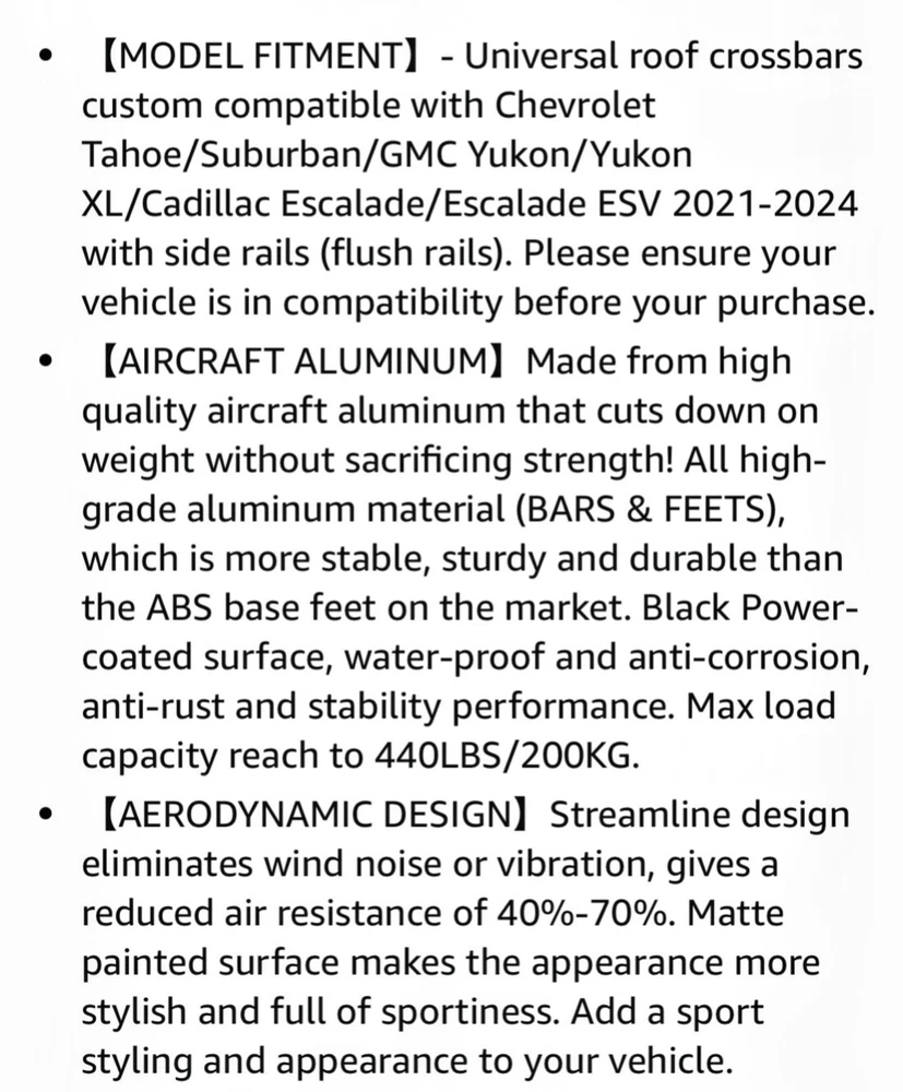 Roof Rack Cross Bars 440Lbs For 21-24 Chevy Tahoe Suburban Yukon XL Escalade ESV. Condition is New. Shipped with UPS Ground.