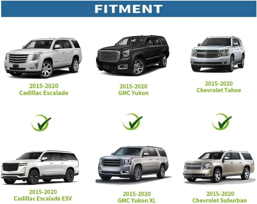 Fitment: 2015-2020 Cadillac Escalade 2015-2020 Cadillac Escalade ESV 2015-2020 Chevy Suburban 2015-2020 Chevy Tahoe 2015-2020 GMC Yukon 2015-2020 GMC Yukon XL Specification: Condition: Brand new Color: Black Weight Capacity: 220lbs (100kgs) Part Number:Replace 84683395 Feature: Perfect Compatibility: Our roof rails cross bar has a high compatibility for Chevrolet Tahoe/GMC Yukon Universal. Please pay attention to your vehicle’s year and model before picking on this. High-graded Aluminum Alloy: Our crv roof rails are made of high-grade aluminum. Package Included: 2 x Roof Rack Cross Bars Necessary Hardware Installation Instruction is Included Roof Rack for 2015-2020 Tahoe Suburban Yukon XL Escalade ESV Cross Bar #84683395 Fitment: 2015-2020 Cadillac Escalade 2015-2020 Cadillac Escalade ESV 2015-2020 Chevy Suburban 2015-2020 Chevy Tahoe 2015-2020 GMC Yukon 2015-2020 GMC Yukon XL Specification: Condition: Brand new Color: Black Weight Capacity: 220lbs (100kgs) Part Number:Replace 84683395 Feature: Perfect Compatibility: Our roof rails cross bar has a high compatibility for Chevrolet Tahoe/GMC Yukon Universal. Please pay attention to your vehicle’s year and model before picking on this. High-graded Aluminum Alloy: Our crv roof rails are made of high-grade aluminum. They have a strong capacity of 220 lbs. In addition, the premium material and fine quality make it long-lasting. Aerodynamic Construction: The arc-shaped roof rack crossbars perfectly fit your car. The aerodynamic construction also gives you a silent and comfortable driving experience. Package Included: 2 x Roof Rack Cross Bars Necessary Hardware Installation Instruction is Included Payment Delivery details Terms of sales About us Contact us Payment We accept major credit card payments via Paypal. Payment must be received within 7 days of auction closing date. If you do not contact us or respond to our email within 7 days of auction closing date, we do not guarantee the item availability. We reserve the right to cancel any unwanted bids. Delivery details Flat rate shipping charge will be applied to the 48 continental USA States. Extra shipping fee will be charged to ship item(s) to HI, AK, PR, GU, VI, APO, FPO . Item(s) will be shipped via UPS Ground or USPS or Fedex within 3 Business days after payment is received. A Tracking Number will be upload on platform as soon as item(s) is shipped. International buyers please note, we are not responsible for any custom duties, taxes and brokerage fees. For some oversize packages, we may not be able to ship via USPS. Terms of sales All of our items are professionally made and guaranteed to fit. A professional installation is always recommended. Please send a message over eBay if you have any questions. We accept returns within 30 or 60 days after you received the item(s). All returned items must be new and in original package. The buyer will pay return shipping fees. No refund will be made for damaged parts. Shipping and handling fees and insurance fee are not refundable. About us Our warehouses are located in CA and NJ The transportation time is approximately 3-5 working days Contact us Your satisfaction is our top priority. We stand behind all products that we sell. If you have a problem with any of our listings, please allow us to work it out. Our business times are Monday-Friday 9:00- 5:00 Pacific Time. Office closes on weekends and holidays. We are striving to earn a 5- star rating with every purchase. Please take a moment to leave us a positive feedback when you receive your order. If you are not satisfied, please let us know before you leaving feedback. Please always include your purchase eBay item number in the mail whenever you have any questions.
