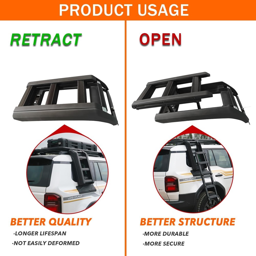 Features: 100% brand new and high quality. Easy To Install and durable use. High Quality Materials and High Quality Product. Brings a Different Appearance to Vehicle. Limited life guarantee for workmanship and defects. Color: Black Warranty: 1 Year Quantity: 1set Material: Aluminum The ladder can support up to 200 pounds. The ladder is installed on the passenger side. The ladder is installed on the hole position of the platform. Fits: For Toyota Land Cruiser J250 Prado LC250 2024 2025 2026(Need to install with Platform) This product needs to be installed together with our platform If installed together with your own platform, you need to drill holes Platform:https://www.ebay.com/itm/405883477222 Pls Note: This is aftermarket, Not OEM one. Package Included: 1 Set Access Ladder+Hardware Roof Rack side Ladder For 2024-2026 Toyota Land Cruiser Prado J250 LC250 Black Features : 100% brand new and high quality. Easy To Install and durable use. High Quality Materials and High Quality Product. Brings a Different Appearance to Vehicle. Limited life guarantee for workmanship and defects. Color: Black Warranty: 1 Year Quantity: 1set Material: Aluminum The ladder can support up to 200 pounds. The ladder is installed on the passenger side. The ladder is installed on the hole position of the platform. Fits: For Toyota Land Cruiser J250 Prado LC250 2024 2025 2026 (Need to install with Platform) This product needs to be installed together with our platform If installed together with your own platform, you need to drill holes Platform: https://www.ebay.com/itm/405883477222 Pls Note: This is aftermarket, Not OEM one. Package Included: 1 Set Access Ladder+Hardware Payment Delivery details Terms of sales About us Contact us Payment We accept major credit card payments via Paypal. Payment must be received within 7 days of auction closing date. If you do not contact us or respond to our email within 7 days of auction closing date, we do not guarantee the item availability. We reserve the right to cancel any unwanted bids. Delivery details Flat rate shipping charge will be applied to the 48 continental USA States. Extra shipping fee will be charged to ship item(s) to HI, AK, PR, GU, VI, APO, FPO . Item(s) will be shipped via UPS Ground or USPS or Fedex within 3 Business days after payment is received. A Tracking Number will be upload on platform as soon as item(s) is shipped. International buyers please note, we are not responsible for any custom duties, taxes and brokerage fees. For some oversize packages, we may not be able to ship via USPS. Terms of sales All of our items are professionally made and guaranteed to fit. A professional installation is always recommended. Please send a message over eBay if you have any questions. We accept returns within 30 or 60 days after you received the item(s). All returned items must be new and in original package. The buyer will pay return shipping fees. No refund will be made for damaged parts. Shipping and handling fees and insurance fee are not refundable. About us Our warehouses are located in CA and NJ The transportation time is approximately 3-5 working days Contact us Your satisfaction is our top priority. We stand behind all products that we sell. If you have a problem with any of our listings, please allow us to work it out. Our business times are Monday-Friday 9:00- 5:00 Pacific Time. Office closes on weekends and holidays. We are striving to earn a 5- star rating with every purchase. Please take a moment to leave us a positive feedback when you receive your order. If you are not satisfied, please let us know before you leaving feedback. Please always include your purchase eBay item number in the mail whenever you have any questions.