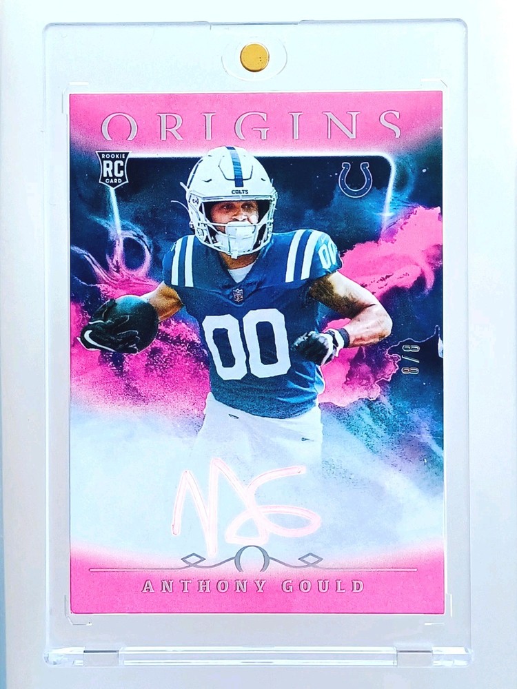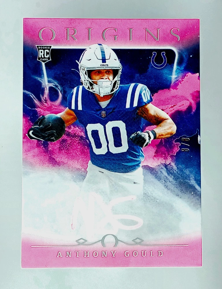 Daily auctions starting at $0.01 free shipping The Anthony Gould 2024 Prizm Origins /8 Autograph Auto Rookie Rc Case Hit Card is a highly sought-after collectible in the sports trading card industry. This rare card features a hard-signed autograph from the National Football League player Anthony Gould, making it a valuable addition to any collector's arsenal. With only 8 copies in existence, this limited edition card is sure to be a prized possession for fans of football trading cards. The card is part of the 2024 Panini Prizm set, known for its high-quality content and stunning Prizm parallel variety, adding to its appeal as a must-have for collectors and enthusiasts alike.