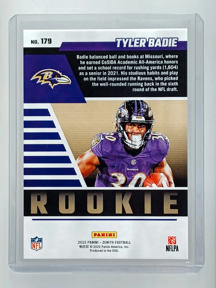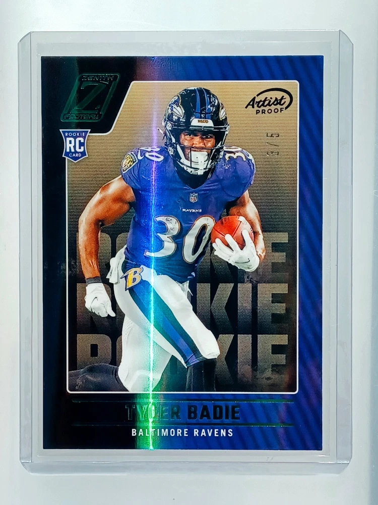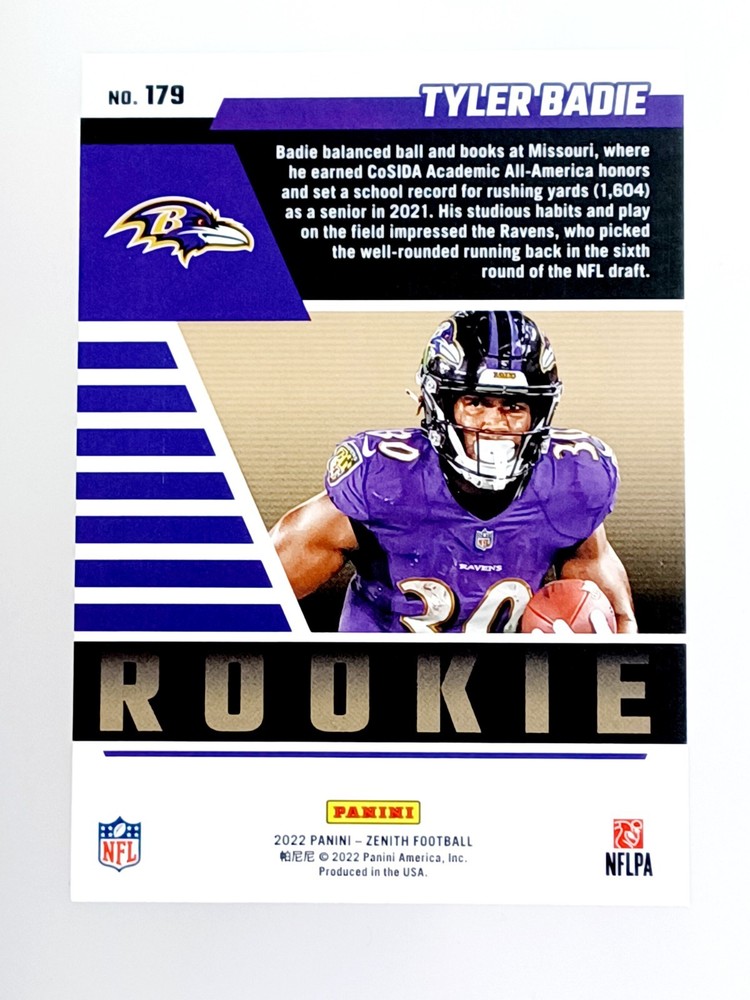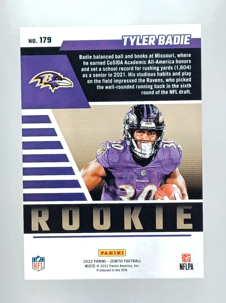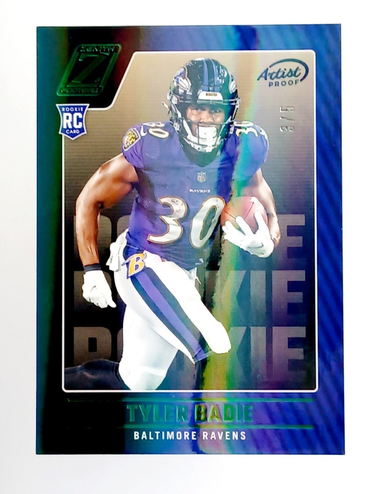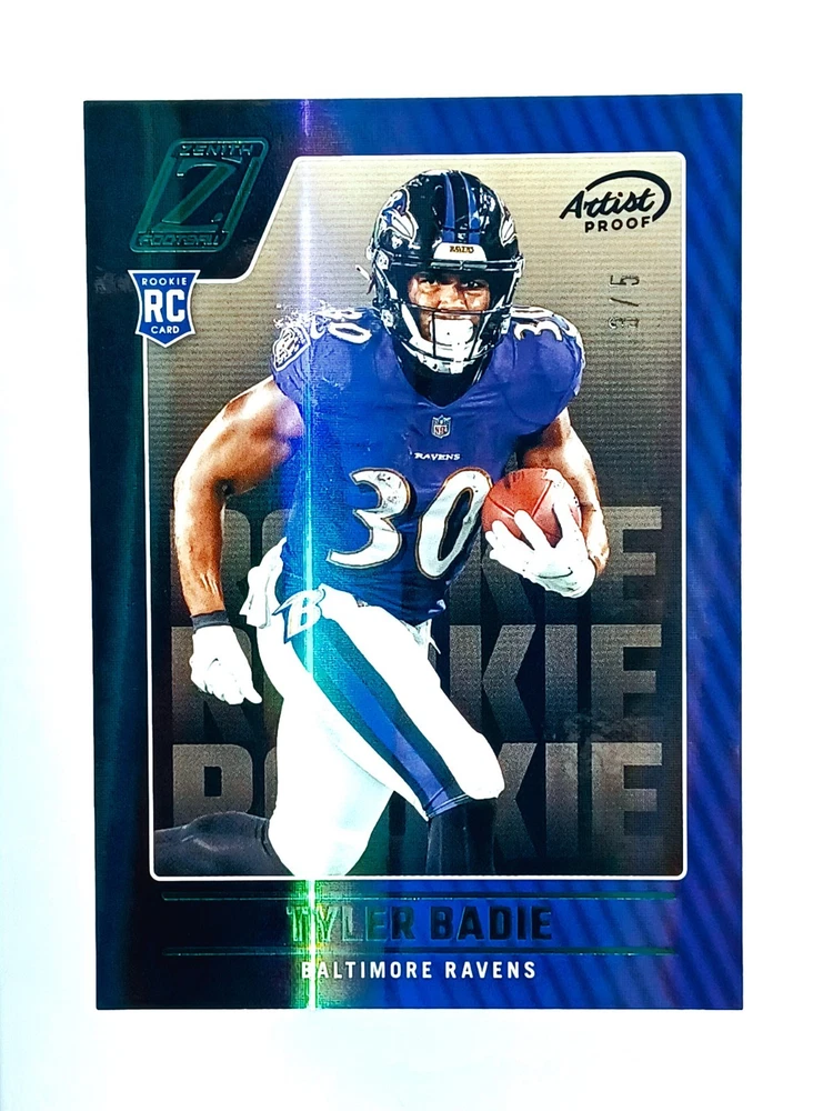 Daily auctions starting at $0.01 free shipping The product is a 2022 Panini Zenith Tyler Badie football card, part of the Rookie set with a limited print run of 5. This highly sought-after card is a Prizm parallel variety, making it a rare find for collectors. It features exclusive rookie design, serial numbering, and is an insert or memorabilia piece, perfect for fans of the Denver Broncos or Baltimore Ravens looking to add a unique and special card to their collection.