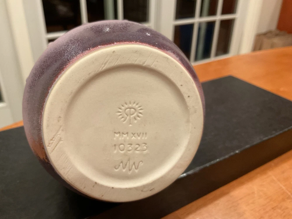 Rookwood Art Pottery Vase from 2017 Purple/Lavender Tapered Vase # 10323 Measures 7.5". Signed by artist Morgan Willenbrink Bottom Is Marked Rookwood, 2017 in Roman Numerals, #10323, MW signature Excellent Condition. No Chips, Cracks, or Repairs. Please see pics and feel free to ask any questions