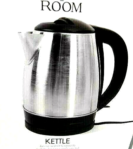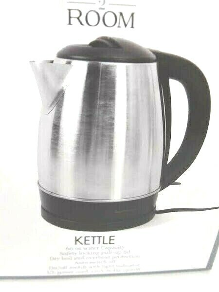 Room 2 Room Coffee Tea Kettle Silver Black 60 Oz 1500 W Electric Safe Lock Lid The Room 2 Room Electric Kettle in Silver and Black is a stylish and efficient addition to any kitchen. With a 60 oz capacity and 1500 watt power, this electric kettle is perfect for boiling water quickly and safely. The safe lock lid ensures that the kettle is securely sealed while in use, while the temperature control feature allows for precise heating. Made of durable aluminum and compliant with Energy Star standards, this electric kettle is a reliable and energy-efficient option for tea, coffee, or any other hot water needs. *** Item Details *** * Room 2 Room * New In Box * Coffee Tea Kettle * Black, Silver * Electric * 1500 Watt * 60 Oz. Capacity * Made In China