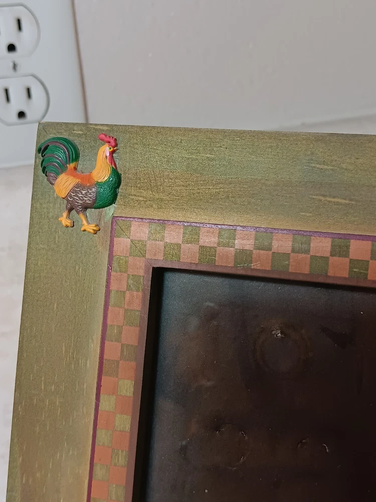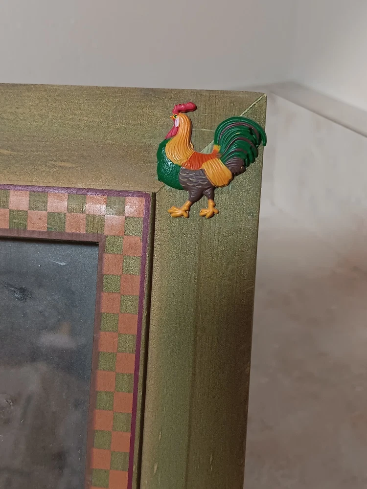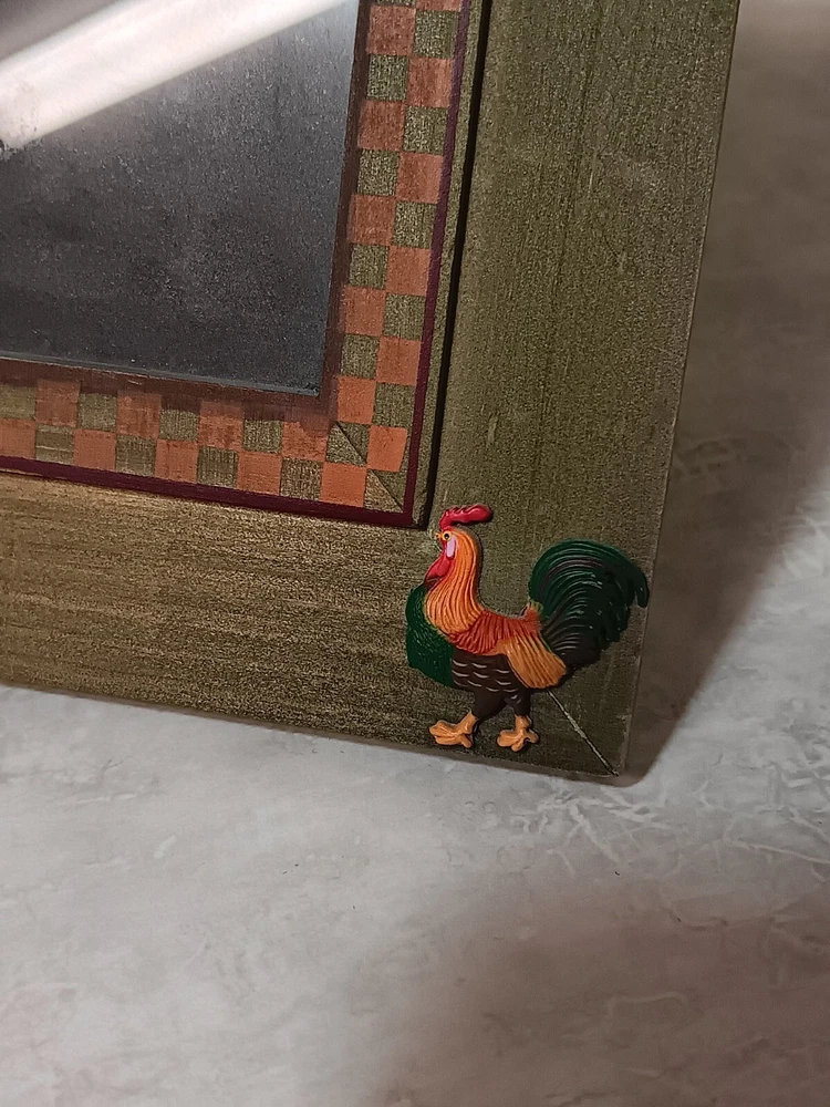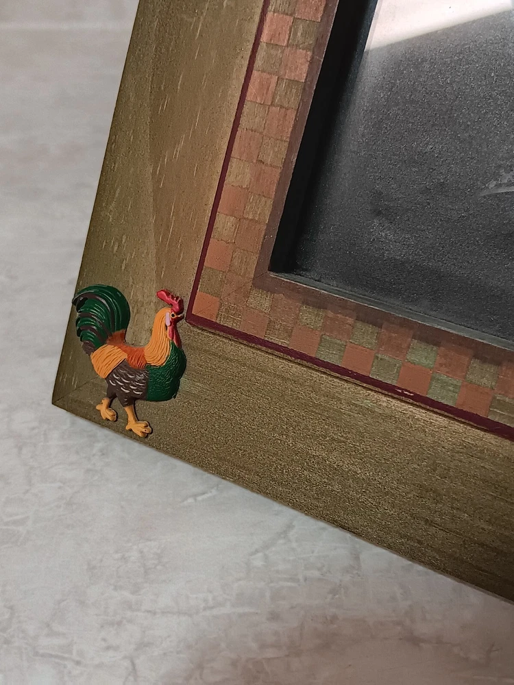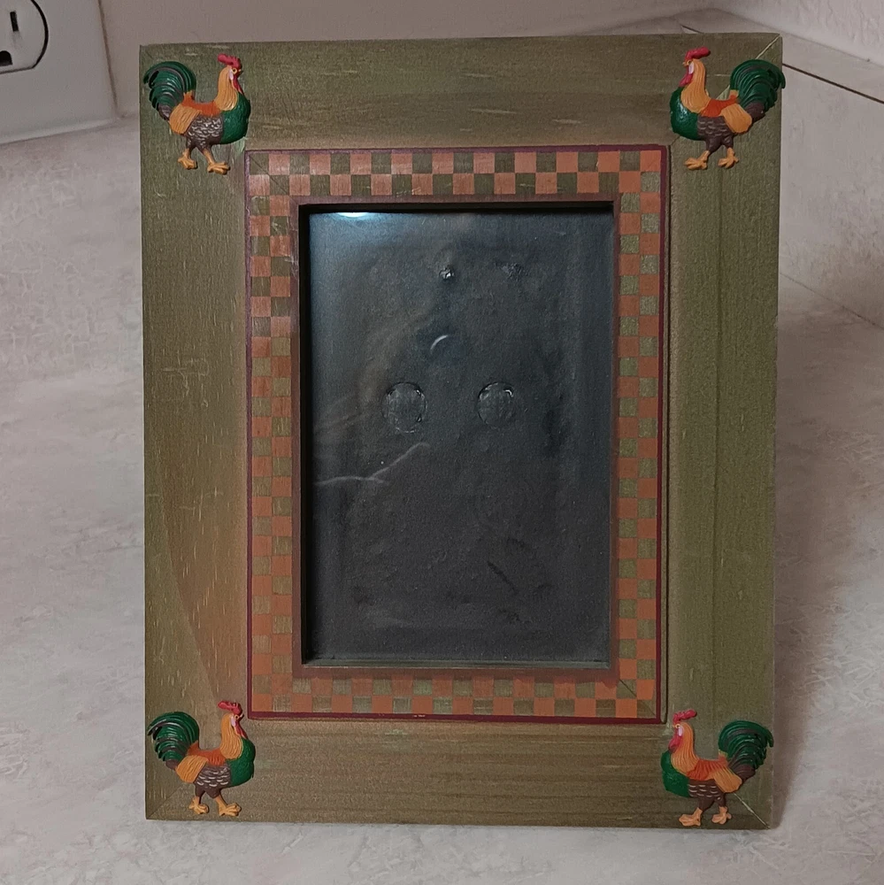 Rooster 4.5" X 3" Photo Farmhouse Chic Frame Vtg W/ Glass Hanging/standing