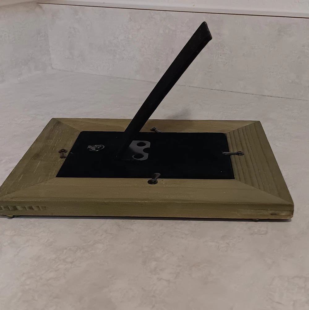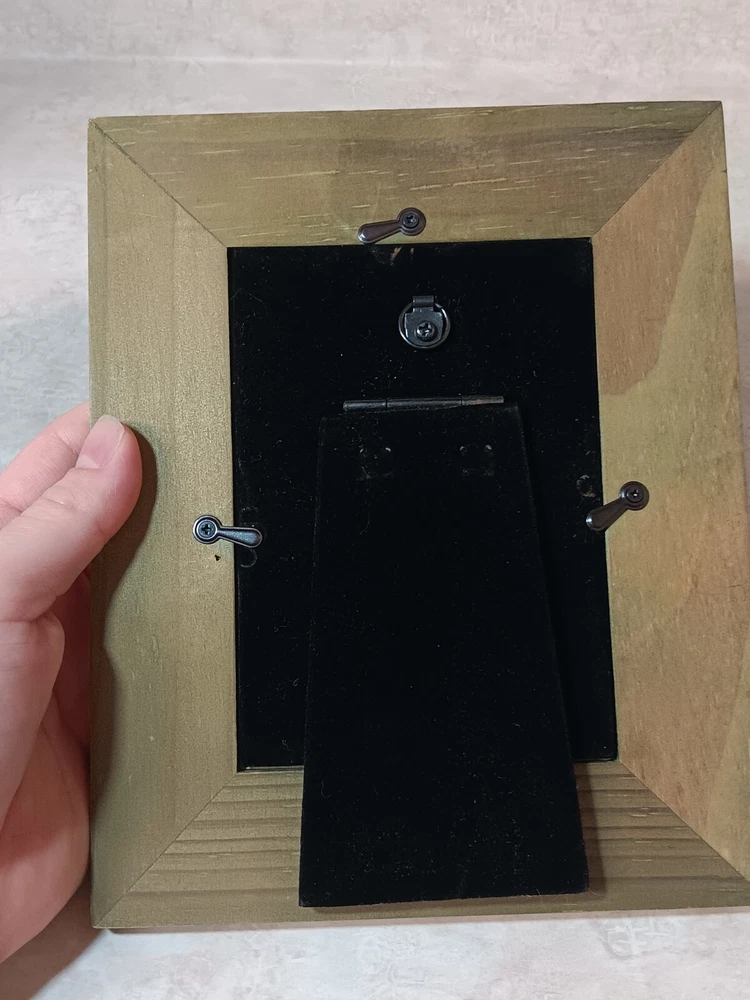 Perfect for any farmhouse kitchen! This cute photo frame has signs of love from use over the years. You can see rust around the placeholders in the back (see photos). Still works perfectly, however and ready for a fun new home! Approx Dimensions: 7.75" x 6.25" .5 inch thick Holds a photo that is 4.5" x 3"
