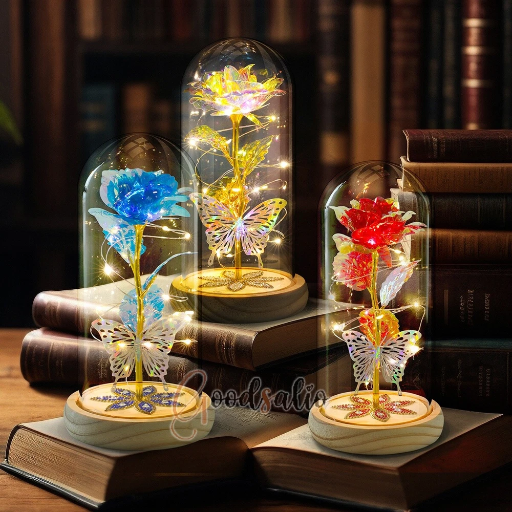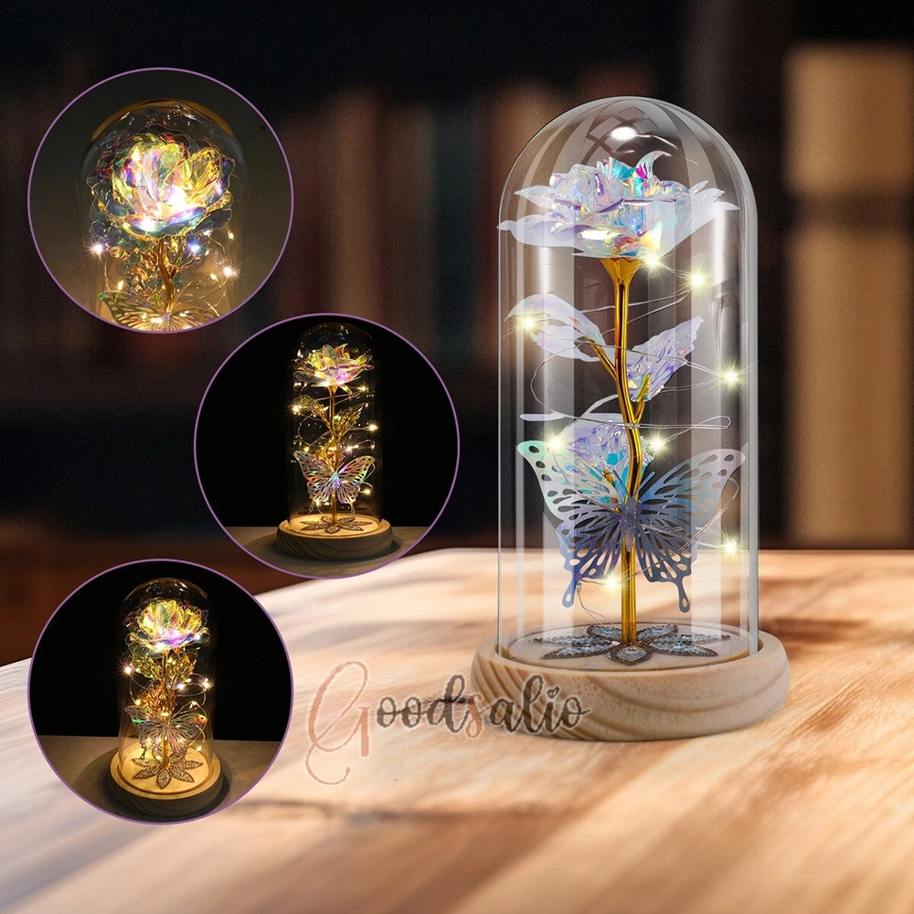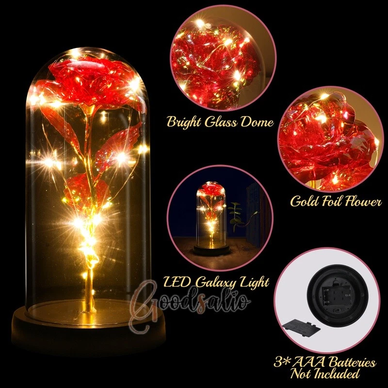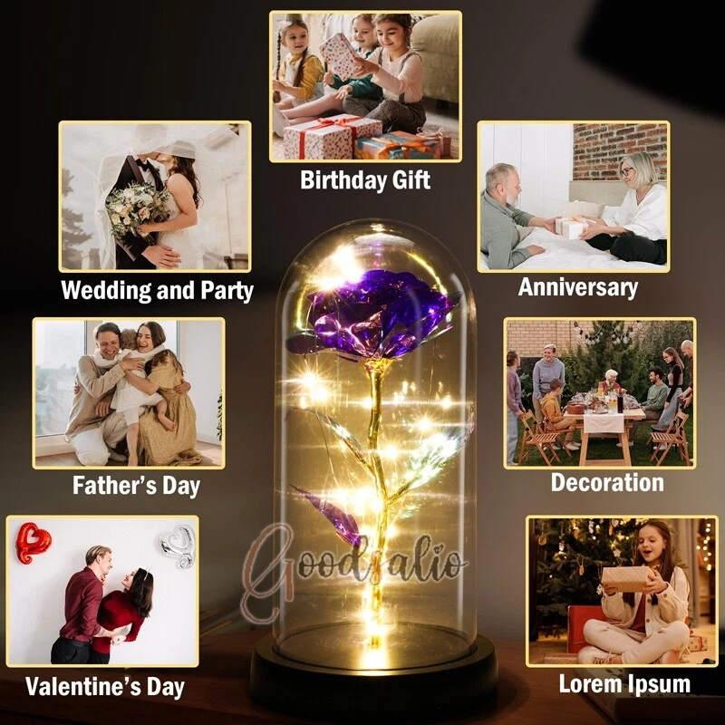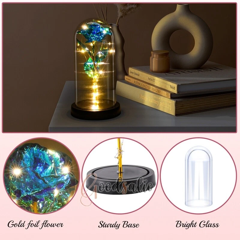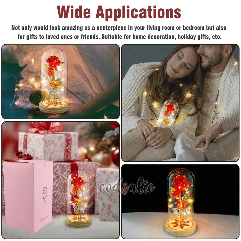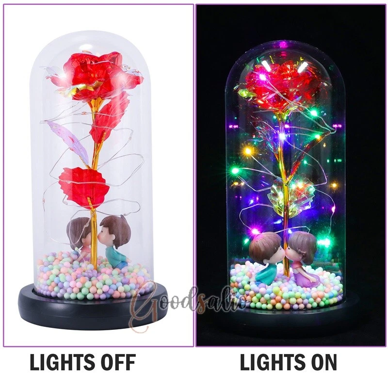Rosa Roja En El Domo De Cristal luz LED con cubierta de vidrio Valentine's Day ★SPECIAL TIPS: √ Ship within 24 hours Via USPS from NJ ,USA √ 100% New & Excellent Quality √ Professional Customer Service √ Strictly QC, Each set was fully tested before shipping √ Offer delivery with Tracking Number If not 100% satisfied with our products, no-questions asked, we offer 30-day free return & money back. TypeA: Feature: -- Rose Flower: This colorful foil gold rose flower is made of high-quality plastic with a stable and smooth surface, the roses and petals displayed look very real, and it is also covered with a transparent dome that protects the rose flower and makes it timeless. -- LED Rose: The rose is wrapped around the colorful LED light strip, powered by 3 AAA batteries (not included). When turned on at night, it will light up with colorful constant lights, creating a romantic atmosphere for your home and bedroom at night. -- Romantic Symbol: The built-in kissing toy for little boys and girls is very cute. The rose will bring you infinite love and beauty. It not only symbolizes eternal love, but also a symbol of good wishes. -- Wide Application: Not only can be used as a decoration in the living room or bedroom, but also as a gift for relatives or lovers, very suitable for home decoration, holiday gifts, etc. Specification: Flower color: colorful/Red Light color: multicolor Material: plastic Lighting mode: always on LED lights: 20 pcs Battery type: 1.5V*AAA battery (not included) Usage: Suitable for home decoration, holiday gifts, etc. Product size: 21.5 (height)*11 (bottom diameter)*9 (thickness) cm/8.46*4.3*3.5inch Package includes: 1*Rose Flower Night Light 1*Packing Box Feature: -- Rose Flower: Made of high-quality plastic, which makes the rose and petals look very real, and also covered with a transparent dome, which can protect the rose flower and enjoy the beauty of the rose in 360°. -- Romantic Symbol: This is a beautiful LED light rose, which means enthusiasm and romance, not only eternal love, but also a symbol of good wishes. -- LED Roses: Roses wrapped around the LED light strip, powered by batteries, can be used for home decoration or create a romantic atmosphere during the day and night. -- Wide Application: Not only can be used as a living room or bedroom decoration, but also can be used as a gift for relatives or friends, very suitable for home decoration, holiday gifts, etc. Specification: Flower color: Red/Pink/Blue/Purple Light color: warm white Material: plastic Lighting mode: always on LED lights: 15pcs Uses: suitable for home decoration, holiday gifts, etc. Battery Type: 1.5V*AAA battery (not included) Product size: 20.5 (height) *11 (bottom diameter) *9cm/8.07*4.3*3.5inch Package includes: 1*Rose Flower Lamp 1*Packing Box Features: *Unique new design - Beauty and The Beast Rose Kit, was inspired by the movie "Beauty and the Beast" - a beautiful true love story. The tiny LED string lights are embedded in the petals, the warm white light illuminates the entire dome. *Durable,Safety and Heat-resistant Dome-Safety and light Dome cover allows LED light to shine more brilliantly in our high borosilicate heat-resistant glass than other covers, resists yellowing & discoloration. *Warm colored LED strings- LED string is made with a fine bendable copper wire that create any shape you want. *Charming decor for Indoor house,living room,bedroom,hotel,bars,to create romantic atmosphere. *Rose is the symbol of LOVE & BEAUTY,ROMANCE & PASSION,BEST WISHES,so it is the Ideal Gift for Valentine's Day, Mothers Day,Anniversary,Wedding, Engagement, Birthday. *Turn on the switch under the base,you will see the eternal beautiful flowers especially at night. *Lighting mode-Steady on Specifications: Materials: Glass Dome+ LED Lights + Silk Rose Rose Color:Red LED quantity:20LED Lighting color:Warm white Power source:3*AAA Batteries(not included) Dome diameter:9cm Base diameter:11cm thickness:2cm Overal height:22cm LED string lights length:100cm LEDs interval:5cm Package includes: Rose LED Lights*1(3*AAA Batteries not included) Features: 1.100% brand new and high quality! 2. Valentine's Day, Mother's Day, the best gift for Christmas. 3. Rose has always been a symbol of beauty, love and appreciation. 4. 99% gold foil leaves, peduncle with polyethylene 24K gold plating. 5. Gift package, well and safe. 6. A perfect gift for your spouse wife girlfriend to show your sincere love. A best gift for your mom to say" Thank you" and "You're loved always." Great gifts for anniversary, birthday, Christmas, Valentine's Day, Mother's Day, wedding. Specification: Weight:8.94g Note: Due to different lighting and shooting conditions, the color of the image may differ from the actual product. Please refer to the actual product. Package include: 1*rose 1*box 1*love base Feature -- Decorative Gift: This rose flower lamp is a romantic gift for your girlfriend on Valentine's Day or birthday, and can also be used as a room or bedroom decoration. -- High-quality Materials: The base of the glass cover adopts a wood grain base, which is durable, not easy to damage, with complex texture, stable and smooth surface, and no burrs. -- Transparent Glass: The glass cover of the rose lamp is made of transparent glass, which allows you to enjoy the beauty of the roses at 360 degrees. It is delicate and romantic, and is also easy to display and store. -- Roses and Butterflies: Roses are designed with simulation. Roses and butterflies in the rose lamp bloom in the glass cover, never fade and representing eternal love. Specifications: Color: Colorful platinum/Blue/Red Material: Plastic + Glass Cover Light color: Warm Color Lighting mode: always on Battery: 3 AAA batteries (not included) Uses: decoration, birthday gifts, holiday gifts Product size: 22.5*11*9cm/8.86*4.33*3.54inch Package includes: 1*Rose Light 1*String Lights 1*Gift Box Feature: -- Rose Flower: This colorful foil gold rose flower is made of high-quality p