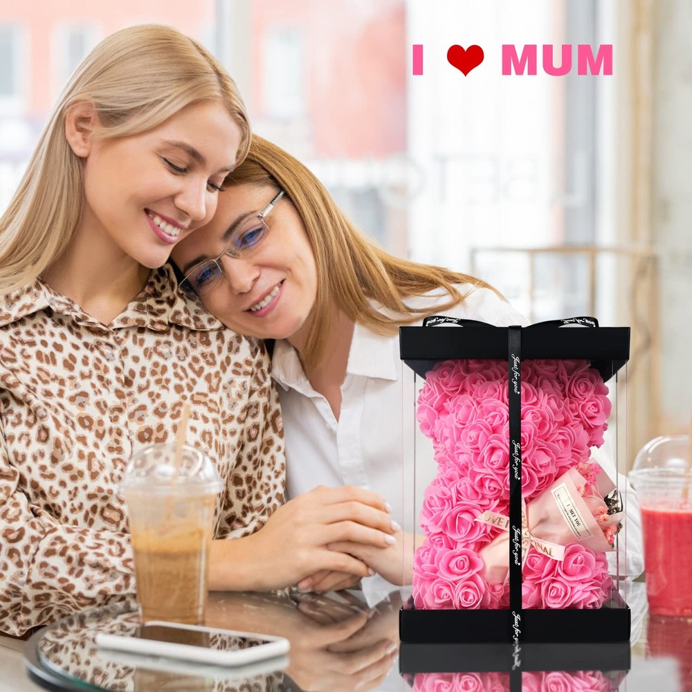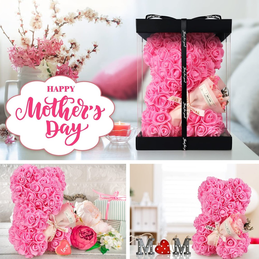 Features: Mothers Day Gifts for Women- Every woman deserves to be loved and cherished. This pink bear is a choice Valentine's Day gift for women, best friend gift, grandma gift, teacher gift, mother gift. Gift for wife and sister. May the pink bear convey the truth to them and witness the sweet moment SUITABLE FOR ANY OCCASION- A symbol of love, pink bears are not only an ideal gift for a loved one, friend or teacher, but also look cute and romantic as a centerpiece or living room. Gift Ideas for Wife, Gift for Mom, Gift for Girlfriend, Valentine's Day Gift for HandcraftedThe rose bear flowers are carefully selected, from 250 flowers, and each petal is carefully installed by hand to ensure the touch of rose rear. Excellent workmanship and beautiful appearance [Gift box packaging]: The transparent gift package contains a very attractive eternal rose bears. eternal rose bears are more passionate and romantic, showing your eternal love. These will be your sweet memories forever [Love Exchange]: Even if it's not a special holiday, you can give this lovely flower bear as a gift to your loved one. If you want to surprise your mom, girlfriend or wife, give her this beautiful rose bear. This is a gift that will make a woman smile.
