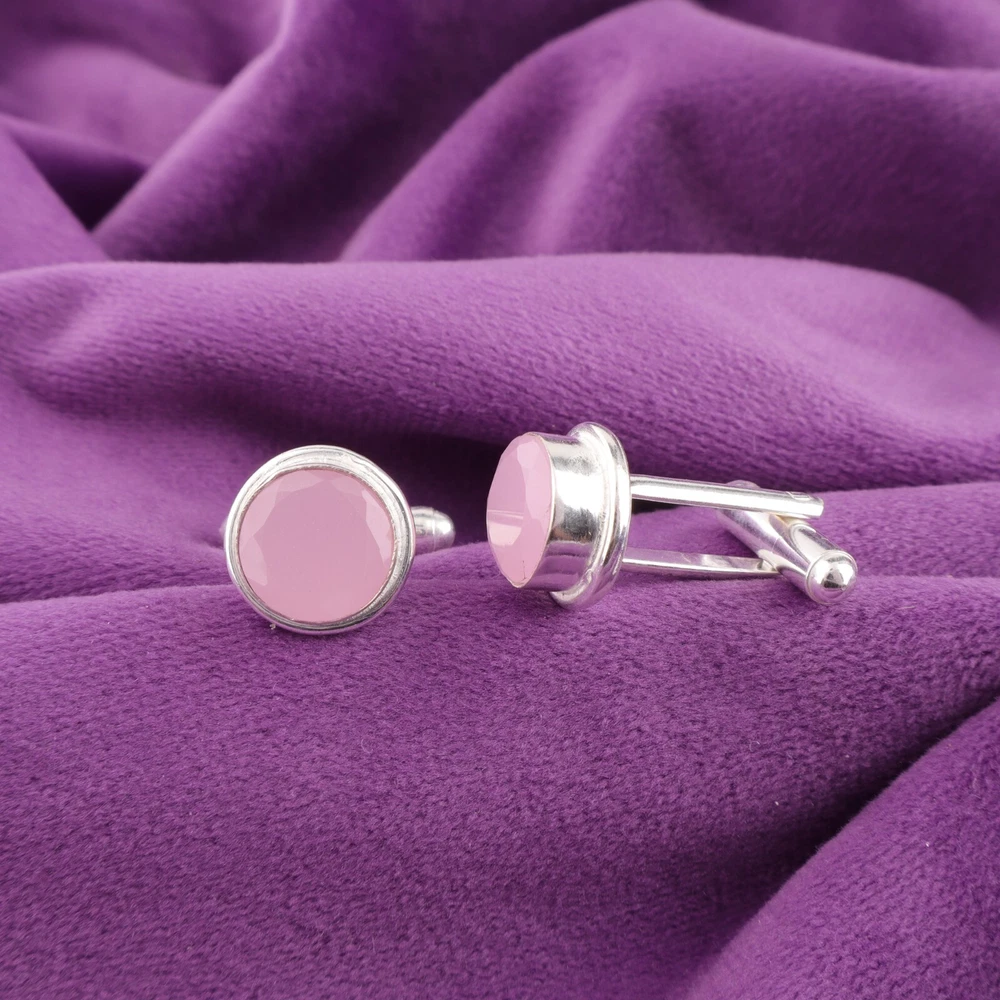 Rose Chalcedony Stone Pink Valentines Anniversary Mens Cufflinks Sterling Silver