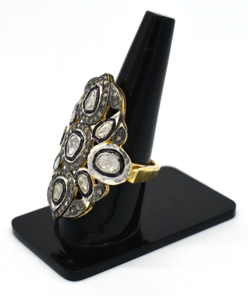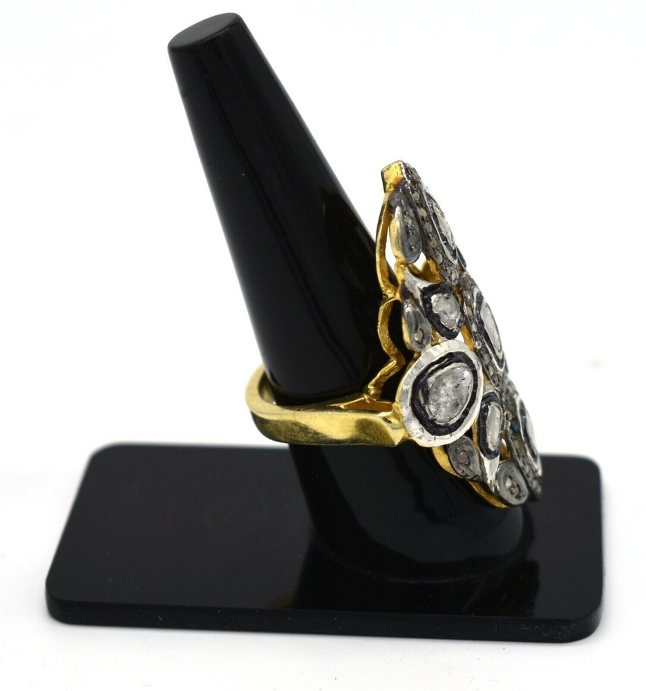 Rose Cut Polki Diamond Victorian Statement Ring in 925 Sterling Silver