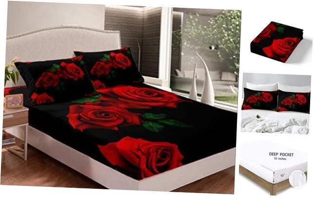 30 Days Return Policy Fast Delivery Trusted seller Rose Fitted Sheet Red Floral Print Bed Sheet Set Romantic Flower Bedding for Women Twin Size Includes 1 Sheets & 1 Pillowcase (No Flat Sheet) Product Description Size: Twin size included 1 fitted sheet 39'' x 75'' x 16'' , 1 pillowcase 20'' x 30''; full size included 1 fitted sheet 54'' x 75'' x 16'' , 2 pillowcases 20'' x 30''; queen size included 1 fitted sheet 60'' x 80'' x 16'' , 2 pillowcases 20'' x 30'' Multiple Uses: Suit for any room in your house, such as bedroom, guest room, kids room, rv, vacation home; good for men and women, moms and dads Material: Our fabrics are made of 100% microfiber; machine wash in cold; dries quick on tumble dry low; deep pocket fitted sheet with elastic all around; flat sheet is not included Useful Sheet: The sheets have clear pattern and vibrant color to update your bedroom; various selection of designs will be easy to match with your bed mattress Design: Our unique 3d print patterns design sheet set will create a serene sleeping experience, leaving you feeling refreshed and rejuvenated Shipping Returns Payment Shipping Shipping is FREE to all addresses other than APO/PO boxes in the lower 48 states. All our stock ships from US-based warehouses. Shipped via USPS or UPS (depending on location and package weight) Unless stated otherwise, all orders will ship within 24-72 hours of your payment being processed. Check our feedback to see the great reviews of FAST shipping we offer. Returns As our valued customer, we will do our best to make sure the product you receive arrives to you on time and as expected. If you are not satisfied with your purchase, please contact us within 30 days of receiving your order to process a return. Payment We currently accept payment via eBay managed payments only. Once payment is cleared, we will dispatch your shipment within 1-3 business days. Please refer to the "Shipping" tab for more information regarding shipping speed to your destination.