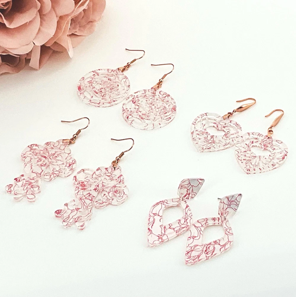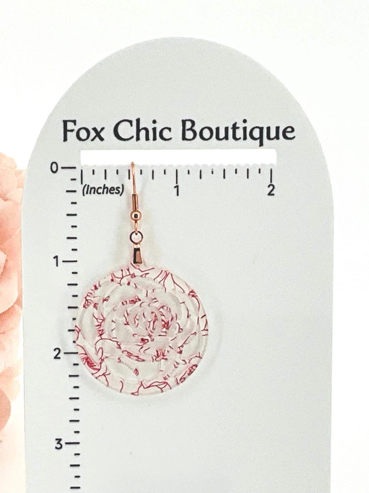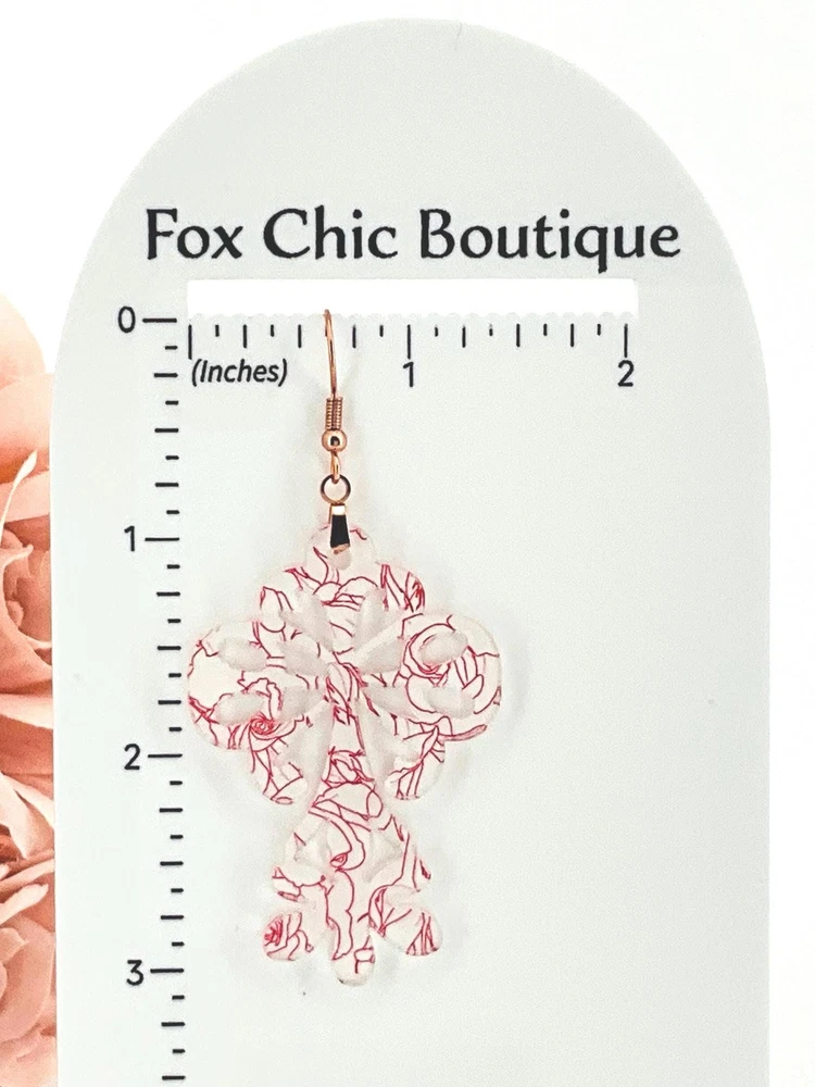 Add a touch of Victorian elegance to your look with these Rose Floral Earrings. Perfect as a Mother's Day or anniversary gift for your girlfriend, mom, or friend. These exquisite cross earrings are a timeless piece that will elevate any outfit. Handcrafted with love, they are sure to make a statement. Lightweight Acrylic Earrings on a Stainless Steel hook/post. Earring hardware is stainless steel, and nickel/lead free. 🌟(Please see item details/highlights/pictures for size information)🌟 Each earring is laser cut from acrylic and assembled by hand in our studio. 🌟Due to variation in the patterns and handmade processes, each earring will vary earring to earring. No two earrings will be identical but will look similar to what is pictured! Each pair of earrings comes on an earring card with silicone backers and packaged in an organza bag. Perfect for gift giving! We currently do not offer more gift-wrapping options. Shipping: All purchases are shipped in a box with tracking so that they arrive safely to you! Currently we only ship to US postal addresses. We have a set standard shipping time of 1-3 business days from the time your order is placed. Everything in our shop is already handmade and ready to ship FAST! Please be aware that unexpected delays can occur, which you will be notified at the time of any such occurrence. Jewelry Care: 🌟Each piece is delicate! Avoid dropping or bending! 🌟Do Not expose to excessive moisture, please remove jewelry before showering, swimming, and sleeping. 🌟Avoid abrasives, perfumes, lotions, excessive heat, chemicals etc. These may deteriorate your jewelry and may damage its appearance. 🌟Clean with the soft cloth we have included in your package (and it is FREE of Charge!) No Returns: Due to hygienic and safety reasons, ALL SALES ARE FINAL. We DO NOT accept returns. In the event you have an issue with your purchase, please feel free to message us on Etsy to discuss any possible resolution.