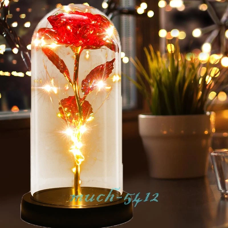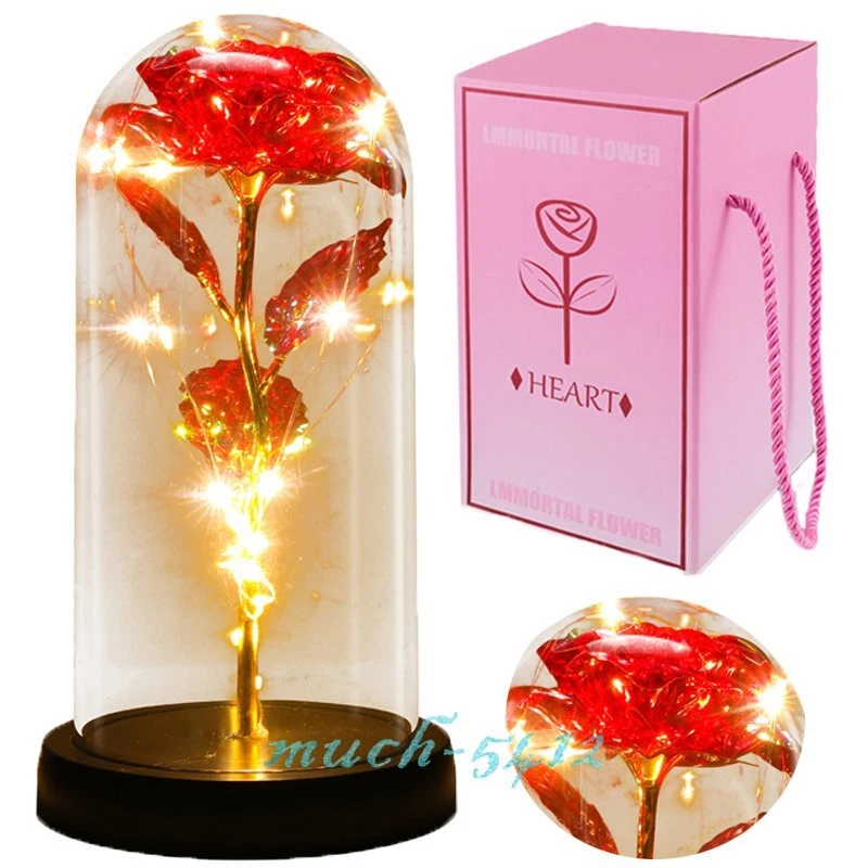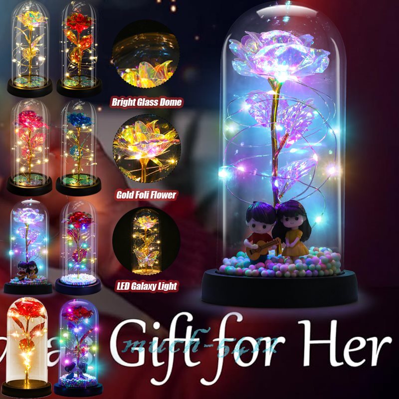 Eternal Galaxy Rose In Glass Dome Forever LED Light Flower Valentine's Day Gift 🌹Red Rose Whisper🌹 -- Love, Passion, Beautiful love. 🌹Golden Rose Whisper🌹-- Noble, Beautiful, Apologetic. 🌹Red and Golden Rose Whisper🌹-- Happiness. 🌹Blue Rose Whisper🌹-- Miracles, Pure, impossible. 🌹Purple Rose Whisper🌹-- Deep Love, Mysterious and Noble. 🎁 Valentines Day Gifts For Her, Mom Gifts, gifts for grandma,valentines rose in Glass Dome perfectly and eternally, crystal clear Glass Dome. Colorful artificial flower rose gifts will never wither and die. The blue Rose Flower Gifts is perfect and impeccable,represent love,colorful roses stand for love and warm. Rose flower is as full of infinite hope and beauty. And it will bring her infinite love and beauty. Rose gifts for her. 🎁 Perfect Valentines day gifts for woman who has everything,cute women gifts. Women Gifts For Moms which are Awesome and Totally Thoughtful. Glass dome rose also would look amazing her gifts in your living room or bedroom. Unique rose flower gift for women,girlfriend,wife,mom,grandma,mother-in-law and stepmom,etc. Birthday presents for women. Mom valentines day gifts. 🎁 Light Up Rose Mom Gifts For Womens. Valentines day gifts for mom from daughter. Valentines day gifts for sister,Valentines day gifts for her. Crystal artificial Rose in a glass dome is wrapped around an LED Strip light,Powered by 3 x AAA batteries(include). Led strip light bright warm white lighting. The beautiful rose flower gift can use in daytime and nighttime for home room or create romantic atmosphere,Valentines glass rose is symbol of appreciation,best wishes,love and romantics. #12618-12619-12620-12621 Pink/Purple/Blue/Red LED Rose Flower+Glass Dome: -- Rose Flower: Made of high-quality plastic, which makes the rose and petals look very real, and also covered with a transparent dome, which can protect the rose flower and enjoy the beauty of the rose in 360°. -- Romantic Symbol: This is a beautiful LED light rose, which means enthusiasm and romance, not only eternal love, but also a symbol of good wishes. -- LED Roses: Roses wrapped around the LED light strip, powered by batteries, can be used for home decoration or create a romantic atmosphere during the day and night. -- Wide Application: Not only can be used as a living room or bedroom decoration, but also can be used as a gift for relatives or friends, very suitable for home decoration, holiday gifts, etc. Specification: Light color: warm white Material: plastic Lighting mode: always on Uses: suitable for home decoration, holiday gifts, etc. Battery Type: 1.5V*AAA battery (NOT Included) Product size: 20.5 (height) *11 (bottom diameter) *9cm/8.07*4.3*3.5inch Package includes: 1xRose Flower Lamp 1x Packing Box #12449 Colorful LED Rose Flower+Kiss Doll: -- Rose Flower: This colorful foil gold rose flower is made of high-quality plastic with a stable and smooth surface, the roses and petals displayed look very real, and it is also covered with a transparent dome that protects the rose flower and makes it timeless. -- LED Rose: The rose is wrapped around the colorful LED light strip, powered by 3 AAA batteries (included). When turned on at night, it will light up with colorful constant lights, creating a romantic atmosphere for your home and bedroom at night. -- Romantic Symbol: The built-in kissing toy for little boys and girls is very cute. The rose will bring you infinite love and beauty. It not only symbolizes eternal love, but also a symbol of good wishes. -- Wide Application: Not only can be used as a decoration in the living room or bedroom, but also as a gift for relatives or lovers, very suitable for home decoration, holiday gifts, etc. Specification: Flower color: colorful Light color: multicolor Material: plastic Lighting mode: always on Battery type: 1.5V*AAA battery (NOT Included) Usage: Suitable for home decoration, holiday gifts, etc. Product size: 21.5 (height)*11 (bottom diameter)*9 (thickness) cm/8.46*4.3*3.5inch Package includes: 1x Rose Flower Night Light 1x Packing Box #12450 Red LED Rose Flower+Kiss Doll: -- Rose Flower: This colorful foil gold rose flower is made of high-quality plastic with a stable and smooth surface, the roses and petals displayed look very real, and it is also covered with a transparent dome that protects the rose flower and makes it timeless. -- LED Rose: The rose is wrapped around the colorful LED light strip, powered by 3 AAA batteries (Included ). When turned on at night, it will light up with colorful constant lights, creating a romantic atmosphere for your home and bedroom at night. -- Romantic Symbol: The built-in kissing toy for little boys and girls is very cute. The rose will bring you infinite love and beauty. It not only symbolizes eternal love, but also a symbol of good wishes. -- Wide Application: Not only can be used as a decoration in the living room or bedroom, but also as a gift for relatives or lovers, very suitable for home decoration, holiday gifts, etc. Specification: Flower color: red Light color: multicolor Material: plastic Lighting mode: always on Battery type: 1.5V*AAA battery (NOT Included ) Usage: Suitable for home decoration, holiday gifts, etc. Product size: 21.5 (height)*11 (bottom diameter)*9 (thickness) cm/8.46*4.3*3.5inch Package includes: 1*Rose Flower Night Light 1*Packing Box #12451 Colorful LED Rose Flower+Glass Dome: -- Rose Flower: This colorful foil gold rose flower is made of high-quality plastic with a stable and smooth surface, the roses and petals displayed look very real, and it is also covered with a transparent dome that protects the rose flower and makes it timeless. -- LED Rose: The rose is wrapped around the colorful LED light strip, powered by 3 AAA batteries (Included ). When turned on at night, it will light up with colorful constant lights, creating a romantic atmosphere for your home and bedroom at night. -- Romantic Symbol: The rose will bring you infinite love and beaut