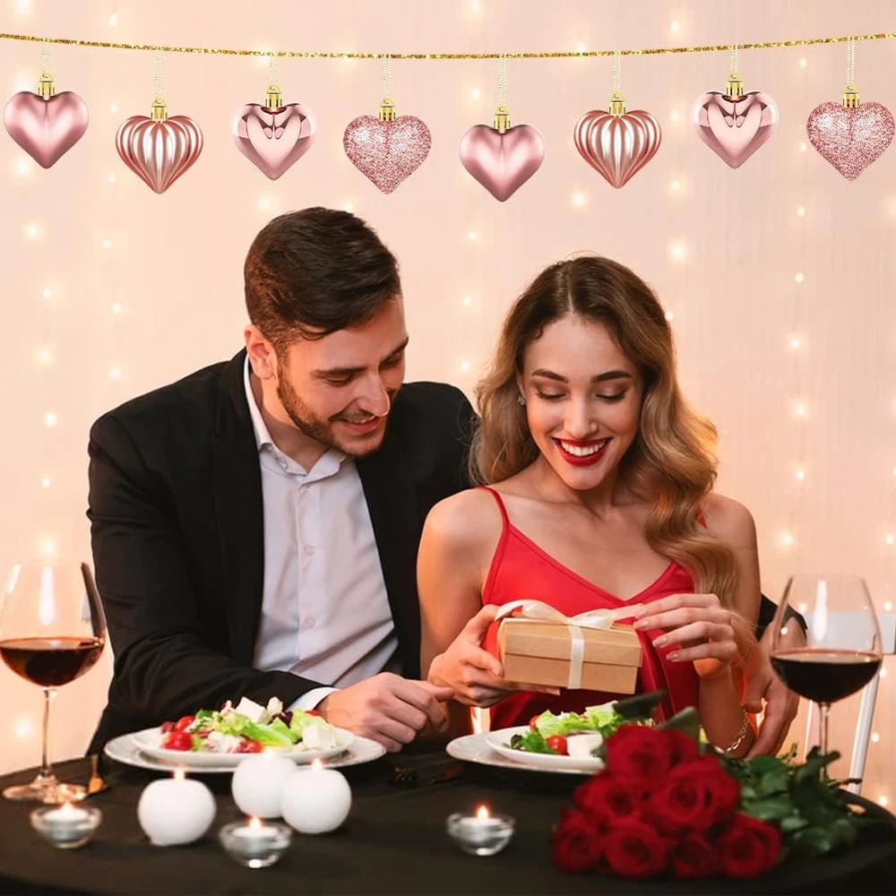 Rose Gold Heart Ornaments Set - 36 Pcs for Valentine's Day & Weddings