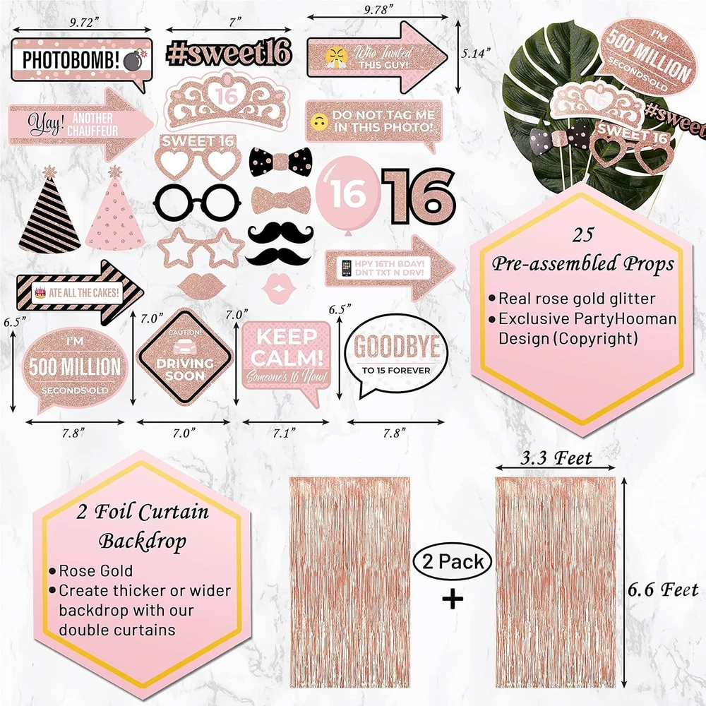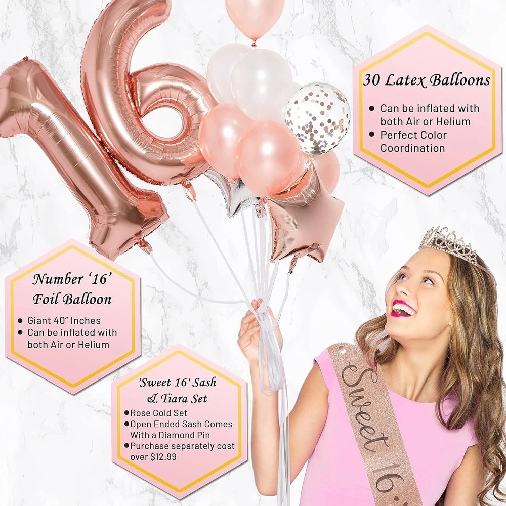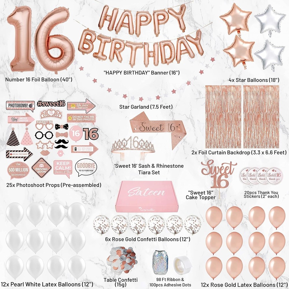 Ultimate Sweet 16 Birthday Decorations Rose Gold Sash & Tiara Set with Props ‹ › ‹ › ‹ › ‹ › ‹ › ‹ › ‹ › ‹ › ‹ › ‹ › Ultimate Sweet 16 Birthday Decorations Rose Gold Sash & Tiara Set with Props Make her milestone birthday genuinely unforgettable with our exquisite Ultimate Sweet 16 Birthday Decorations set, designed to envelop your precious girl in elegance and festivity. This comprehensive collection promises to create enchanting memories that last a lifetime. Celebrate her coming of age with grace and charm like never before! What's Inside: SWEET 16 BIRTHDAY SASH + RHINESTONE TIARA: Elevate her status to royalty with a stunning ‘Sweet 16’ sash and a dazzling rhinestone tiara. Crafted with care, these premium pieces will capture the hearts of family, friends, and—most importantly—your birthday girl! (Separate worth: over $13) 25 PRE-ASSEMBLED PHOTOSHOOT PROPS & DOUBLE FOIL CURTAIN BACKDROP: Ignite the creativity of your event with 25 classy props! Our special double backdrop offers flexibility in creating a picture-perfect photo booth, ensuring every moment is memorable. Constructed with exclusive rose gold components, it’s destined to delight! 36 ASSORTED BALLOONS + 98 FT RIBBON + 100 PCS ADHESIVE DOTS: Transform your venue with 36 striking rose gold and silver balloons that infuse joyous energy. Our holographic ribbons (3x MORE than standard sets) add a captivating touch for display perfection! LOTS OF OTHER GREAT GOODIES: Adorn your tables with 15g of shiny confetti, and hang a matching birthday banner and star garland to enhance the festive ambiance. Our unique Sweet 16 cake topper is the cherry on top of your lavish setup. Follow our intuitive guide for seamless decoration—all you need now is a delicious cake! ULTIMATE DREAMY ROSE GOLD ‘SIXTEEN’ BIRTHDAY BOX: Experience the bliss of finding everything you need in one convenient set. Immerse your celebration in a sophisticated palette of rose gold and silver, offering premium value over $50 and guaranteeing your girl’s special day stands out. Why Choose Our Ultimate Sweet 16 Birthday Set? Uncompromising quality, thoughtful inclusions, and an enchanting aesthetic come together in our exclusive Sweet 16 Birthday Box. Indulge in the dreamlike elegance of rose gold, ensuring your girl’s birthday radiates happiness and pride. From tiara to backdrop, every element tells a story of love and celebration. Transform the birthday party into a royal affair—order your Ultimate Sweet 16 Birthday Decorations Set today and watch the magic unfold! Shipping Free & Fast Shipping - We offer free shipping to most of the USA with a normal delivery time of 3-10 businessdays. However, due to various situations, additional delivery time (up to 3 weeks) may be required for some items. Alternative Carriers - We may use alternative carriers (e.g. USPS, FedEx, UPS, etc.) to ensure your package arrives safely and on time. Due to the use of multiple carriers, we are unable to provide a tracking number automatically. Handling Time - Orders are processed and shipped within 1-5 business days of receiving cleared payment. Shipping Restrictions - Shipping to Alaska, Hawaii, Puerto Rico, Guam, and other US territories may incur shipping charges or delivery restrictions. Please contact us before ordering, or your order can be refunded/cancelled. State Restrictions - There may be restrictions based on your state of purchase. For example, certain items may not be shipped to California due to state regulations. Contact for Tracking Updates - If you require tracking updates or have any concerns about the delivery of your order, please feel free to contact us, and we will be happy to assist you. Return Please see our ebay return policy. We do not accept return on most products. This is to avoid customers mis-using ebay returns. All sales are final. Please be sure to check the return policy listed at the top of the listing. In rare cases, we may accept returns, if the buyer pays both ways shipping and 20% restocking fee. If you are un-sure of return policy of a particular item, please ask before buying. Payment We accept all major credit cards, PayPal, and Apple Pay for your convenience. Your payment information is secure and encrypted to ensure a safe and seamless transaction. Please complete your payment within 3 days of purchase to avoid any delays in shipping. Feedback Your feedback is extremely important to us. We strive to provide the best products and customer service possible. If you are satisfied with your purchase, please take a moment to leave us a positive review. If you have any concerns or issues with your order, please contact us before leaving negative feedback. We are committed to resolving any problems and ensuring your satisfaction. Contact Us If you have any questions or concerns, please feel free to reach out to our customer support team. You can contact us through the eBay messaging system. We are available Monday to Friday, 9:00 am to 5:00 pm EST, and we will do our best to respond to your inquiry within 24 hours. Buy it now and enjoy a pleasant shopping experience! UPC: Not Set Unit Quantity: 25 count Character: Not Set Material: Latex,foil,paper,rhinestone Brand: Unbranded Type: Backdrop Occasion: 16th Birthday Character Family: Not Set Color: Rose Gold Theme: Princess Production Technique: Not Set MPN: Not Set Department: Girls Product Line: Not Set Country/Region of Manufacture: Not Set Pattern: Rose Gold Letter Print Style: Contemporary Origin: California Age Level: Not Set Production Style: Not Set Unit Type: Unit Antique: Not Set Vintage: Not Set Personalize: Not Set