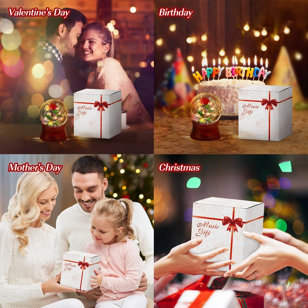 Mothers Day Rose Gifts for Mom, Beauty and The Beast Snow Globe Rose Music Box Color Changing Light Musical Snow Globe Rose Gift for Women Flower Gifts Women Gifts for Her,Mothers Day,Anniversary,Birthday Red Forever Roses Gift Flower - Will never wither away, symbolize everlasting love; The mountain-shaped on base, a symbol of toughness and eternity; while illuminated by the string of lights more luxurious, exquisite and full of artistic sense. It is a unique artwork, Very suitable as Mother's Day, Christmas, or birthday gifts for your mother, grandma, or mother-in-law. Rose Gifts with LED Strip Lights - The eternal rose snow globe music box is the best gift for women, It is well known that women love flowers, and although mothers grow old, their appreciation for flowers never fades. If a mom receives a forever flower from their daughter son or husband on Mother's Day, Valentine's Day, Birthdays, Anniversaries, Christmas, Thanksgiving, Engagements, and Parties, she will be surprised beyond measure. Unique Mothers Day Gifts for Mom - The glass rose snow globe is wrapped around an LED Strip tree lamp, Powered by 3 AAA batteries(not included). Just turn on the bottom switch, and it will glow warm light that can make your mom, woman, wife, or Grandmother's heart feel pleasure on Mother's Day, Birthday. Eternal love - Preserved flowers are known as flowers that never wither; if you receive eternal flowers snow globe, it means that the other party's love for you will never change. Guardian love - The eternal flower implies the protection of love, family and friendship. Beauty and The Beast Gifts - valentine snow globe is perfect for your lover on mother's day,Anniversaries. Love for you will never fade How to use: Turn on the left switch, the light will light up; Turn on the right switch, the snow globe will plays the music. Material: Plastic+Glass Size:3.9x5.3 inches Package: 1x Rose Snow Globe 1xScrewdriver Valentines Snow Globe - The base is made of plastic. Inside the snowball is a resin rose and mountain, and it is compared with colorful-plated and sequin snowflakes. The red rose in glass perfectly and eternally, which more transparent and without impurities. Colorful LED Light - The forever rose flower in snowglobe is wrapped around an LED Strip light, Powered by 3 PCS AAA powers(Not included). Two Mode: Turn on the left switch, the light will light up; Turn on the right switch, the snow globe will plays the music and light up. Mothers Day Rose Gifts for Mom - Preserved red rose flower gifts for her mom women. This rose flower snow globe music box will never wither and die. A meaningful gift, an unique love. Snow globe rose also would look amazing as a centerpiece in your living room or bedroom. Preserved Flowers Snow Globe - Eternal rose flowers music box is very suitable as Mother's Day Gifts, Valentines Day Gifts, or birthday gifts for your mom, wife, girlfriend, grandma, or mother-in-law. The eternal rose is the best gift for women, she will receive your infinite love and be surprised. Beauty and The Beast Rose - Size:3.9x5.3 inches. Each product is wrapped in gift box, make the gift more ceremonial! Good idea to decorate your home, office, bar, or any place to increase the romantic atmosphere with this light-up rose snow globe. Rose Music Box - Mother's Day Gifts for Mom, Christmas Gifts For Girls, Christmas Home Decor, Christmas Gifts For Grandma, Girls Christmas Gifts, Women Christmas Gifts, Unique Christmas Gifts, Christmas Gift For Wife, Christmas Outside Decorations, Christmas Gifts For Sister, Christmas Gifts For Girlfriend, Girlfriends Christmas Gift