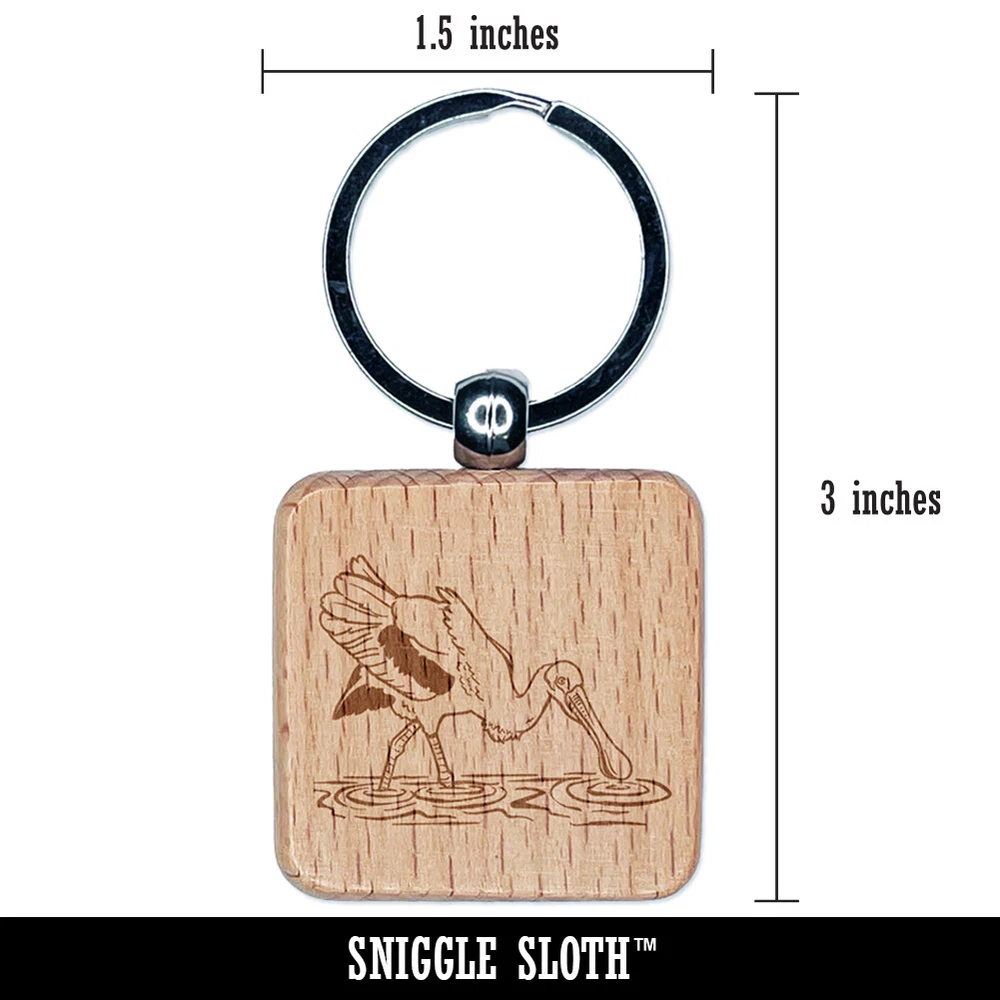 Roseate Spoonbill Wading in Water Bird Engraved Wood Square Keychain Tag Charm