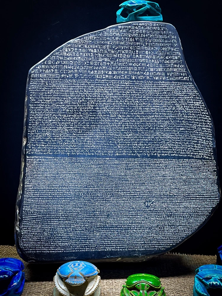 This item is 100% handmade with love and passion by the best sculptors of our family. Brand: EgyptologyStoreEG. Item Description: Rosetta Stone Musem Reproduction Sculpture Wall Relief Reproduction in Museum Original at the British Museum, London. 203 B.C. When the last temple was closed in the 6th century A.D., the skill of reading hieroglyphs was lost until the discovery of this slab of basalt stone found at Rosetta in the western delta in 1779. On the stone are three scripts. The bottom section is in Greek, the center in demotic (popular script originated in the XXVI dynasty, 700-600 B.C. and widely used for the next thousand years.), and the top in hieroglyphs. The stone was first set up in a temple. It was an elaborate "thank you" to the Greek ruler of Egypt, Ptolemy V, who reigned in the 2nd century B.C., for favors that he had given to the priests. The three scripts contained the same text, allowing the hieroglyphs to be translated. French archaeologist, Jean-Francois Champollion spent many years deciphering the symbols of the Rosetta stone. Champollion's work in the Rosetta stone was an important breakthrough in the translation of Egyptian hieroglyphs. Ancient sculpture replica from the original one, 100% Egyptian HAND MADE Made from Basalt Stone Height: 13 Inches Width: 10 Inches MADE IN EGYPT Payment: We are currently accepting many payment methods. Shipping: The items are shipped via DHL express company. Packaging: All the items ordered are 100% securely packaged with utmost efficiency and visually appealing appearance. Return Policy: You can return our product and get a full refund or exchange the product with another one, however the following conditions must be met: 1)Product must be returned within 14 days from the receival date. 2)In case an exchange is made, the shipping costs is paid. 3)Product must be returned in the same condition that it was received in. 4)Product must be returned in its original packaging. Feedback is highly appreciated :)