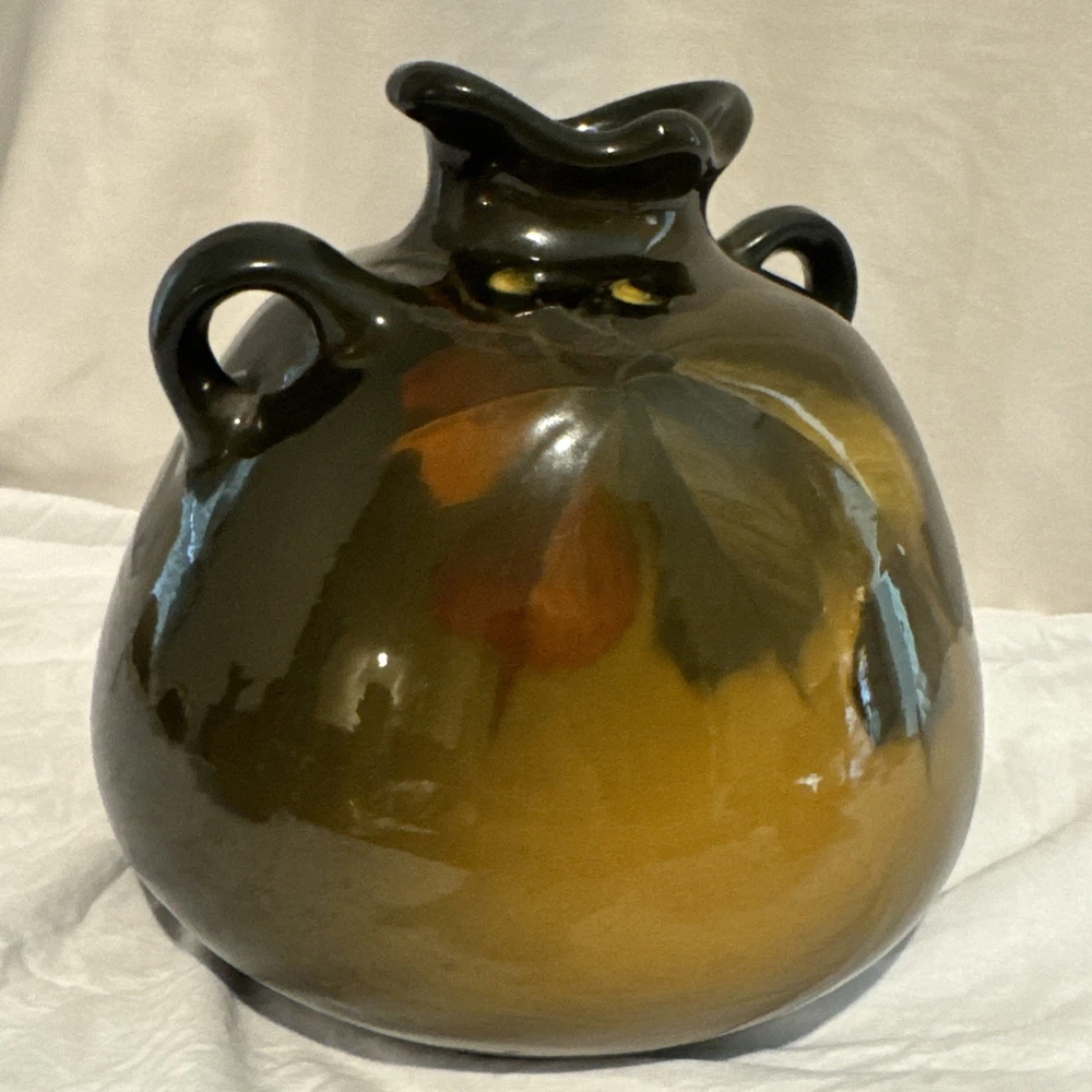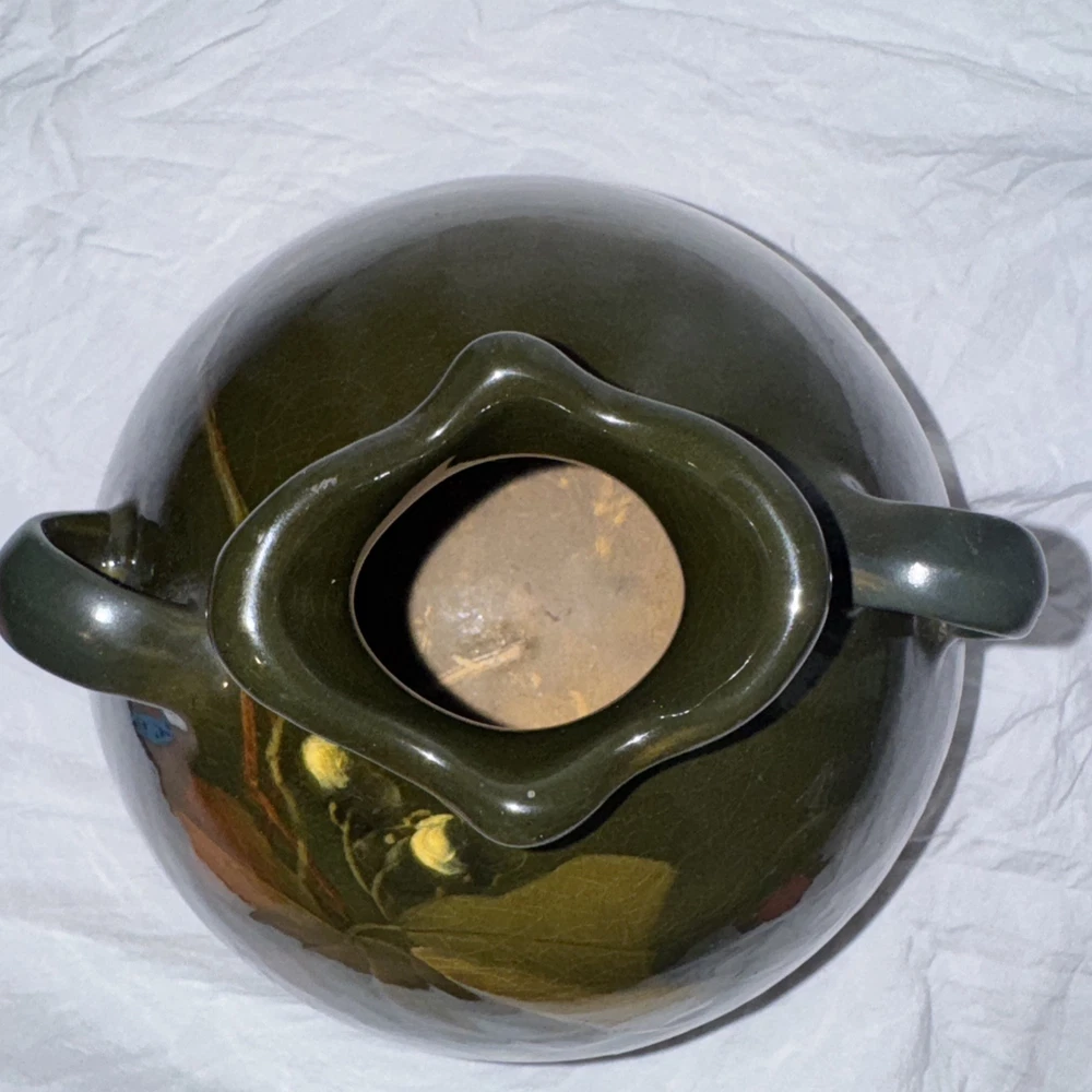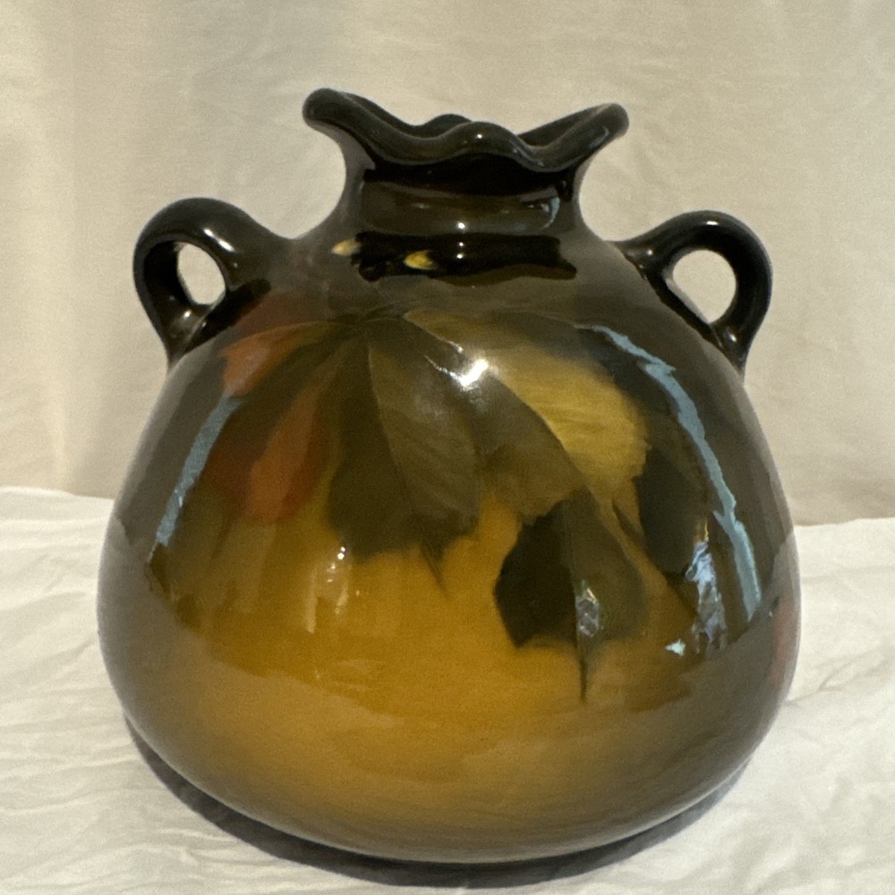 $ 118.8Roseville Rozane Royal Dark #888, 4.5” Ball Jug Vase. Signed Lilly Mitchell ‘LM’