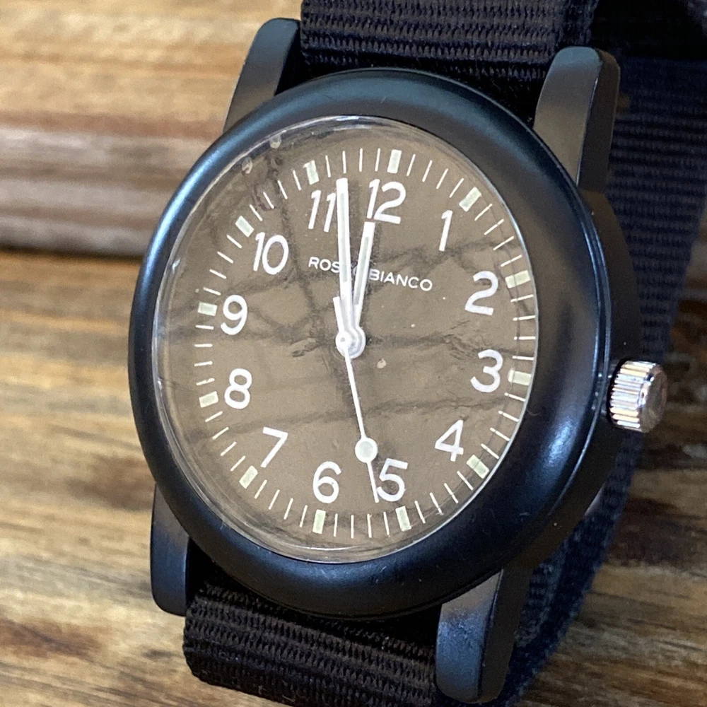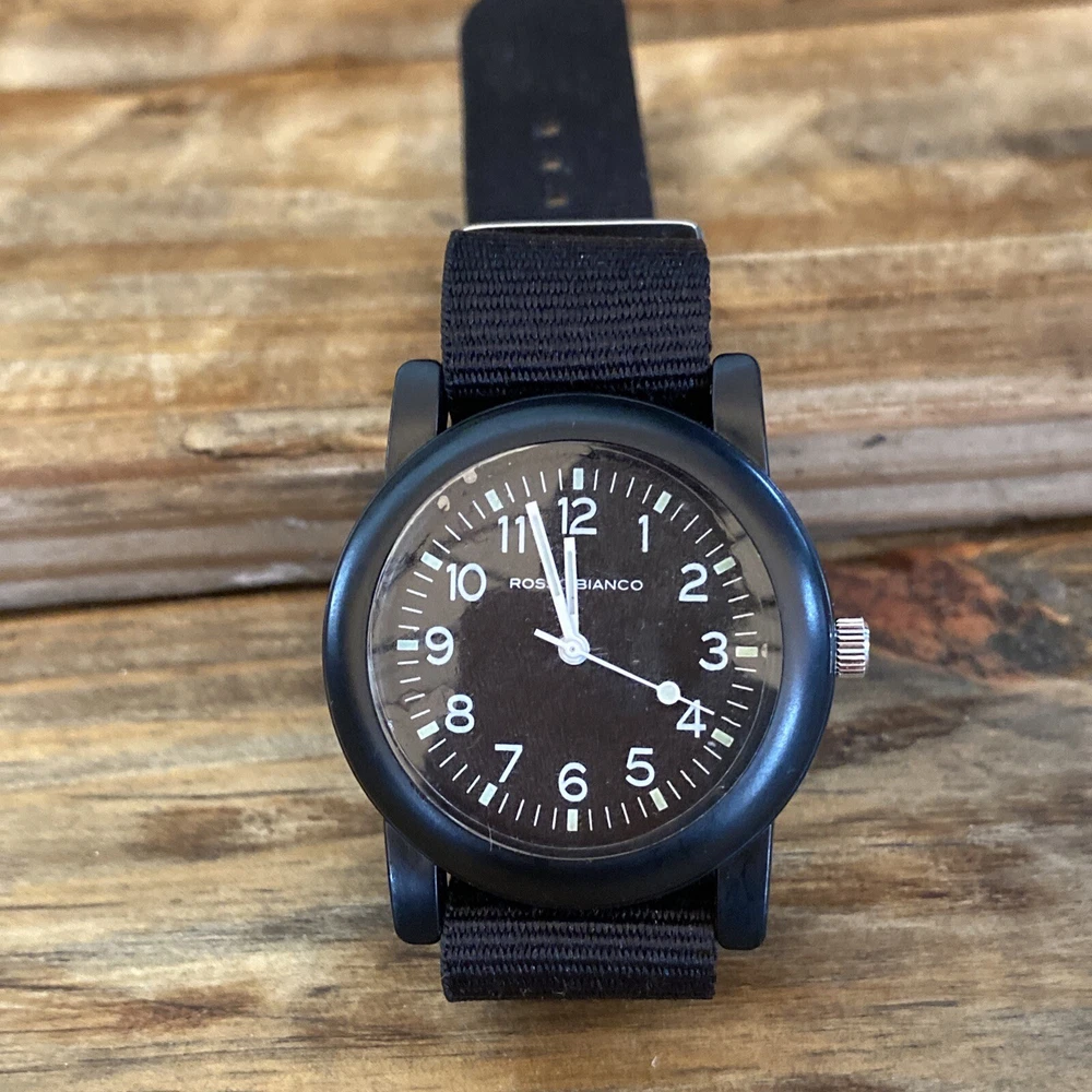 Elevate your wrist game with this Rosso Bianco PC21S Military Style Quartz Black Watch on Nylon Strap. The timepiece embodies a rugged military theme that is perfect for anyone who wants to stand out from the crowd. Its black nylon strap complements the black quartz dial, while the Rosso Bianco branding on the face adds a touch of elegance to the watch. Crafted with high-quality materials, this wristwatch band fits perfectly on Rosso Bianco PC21S, and its durability ensures that it can withstand the rigors of everyday use. The black color of the strap and dial gives the watch an understated look that is both stylish and versatile. Get ready to make a statement with this Rosso Bianco watch that is perfect for any occasion.