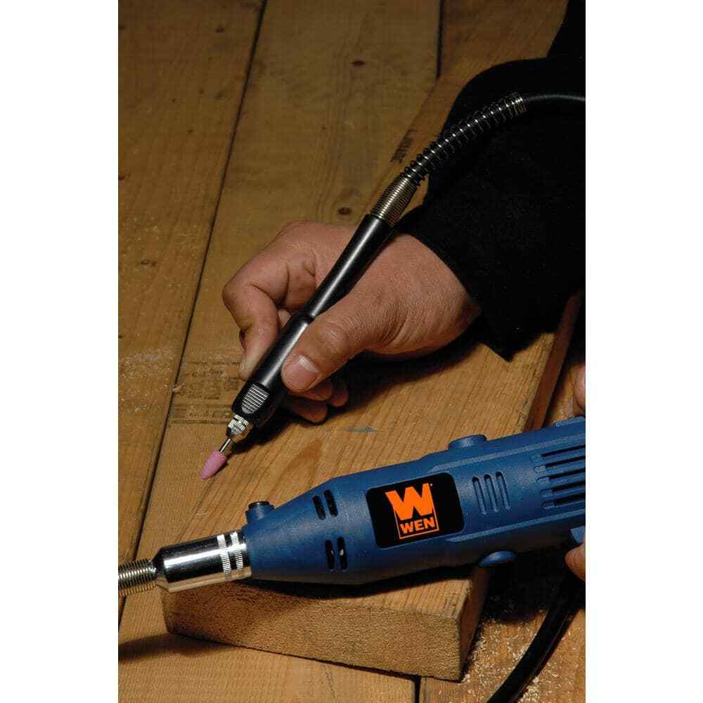 Features a flex shaft, a carrying case and over 80 accessories Variable speed rotary tool goes from 8,000 to 30,000 RPM Compatible with the majority of Dremel accessories Polish, sand, grind, cut, drill, remove burrs and shape with precision with the WEN Rotary Tool Kit with Flex Shaft. This kit comes with 80 accessories conveniently stored in a case. The rotary tool offers variable speeds of 8000 to 30,000 RPM to fit your various projects. 1 amp motor 2.3 mm and 3.2mm collets 8000-30,000 RPM variable speed for various applications Flexible lightweight shaft attachment Double-insulated 80 accessories for cutting, removing burrs, polishing, shaping and drilling Storage case for organization and safety