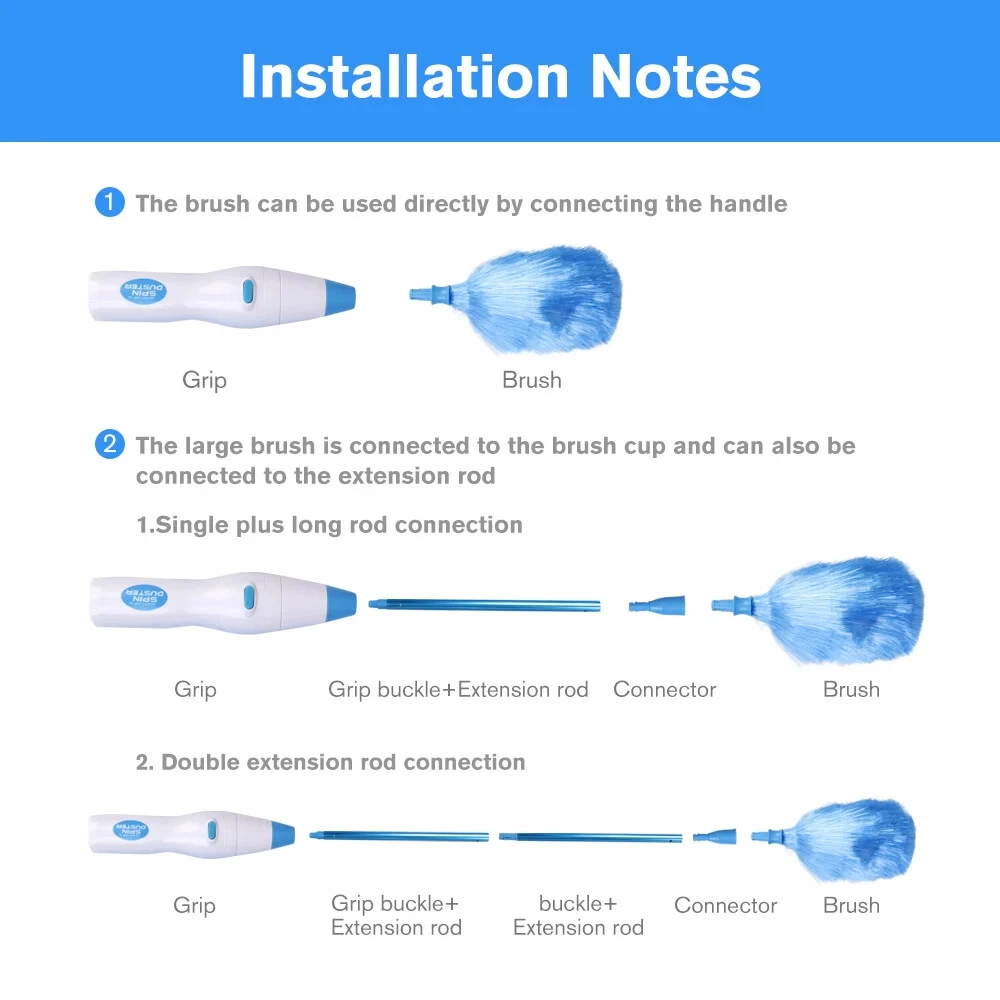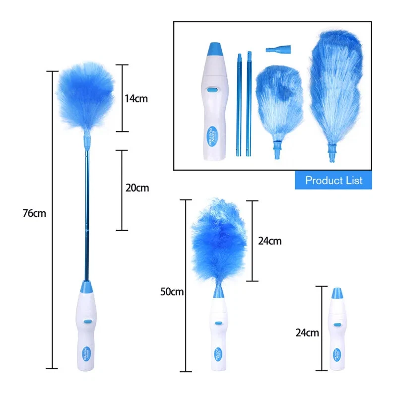 Feather Duster,Adjustable Bookshelf Window Cleaning Brush, Household Clean Assistant Specification Material: Chenille Type: dust removel Shape: flat head Power supply: 4 sections 5th batteries( not include) Features 1. The easy solution to the impossible, back-breaking task of dusting without using a feather duster or dust cleaner 2. dust removel, easy and labor-saving 3. 360° no dead angle, easy corner cleaning Package like picture show: Real Picture: Product size: Product Details Introduction: Product usage scenarios: