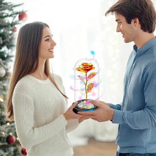 Rotating Birthday Gifts for Women,Christmas Rose Gifts Rotating Red Colorful