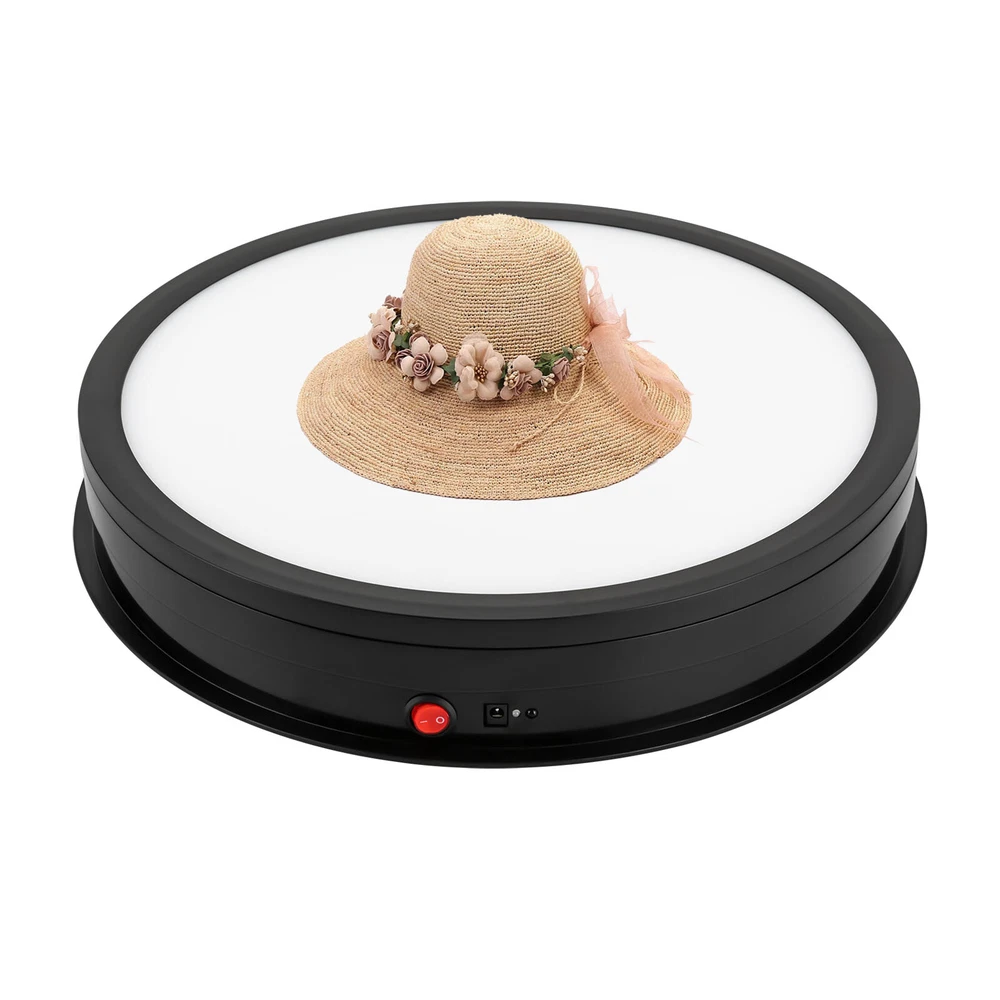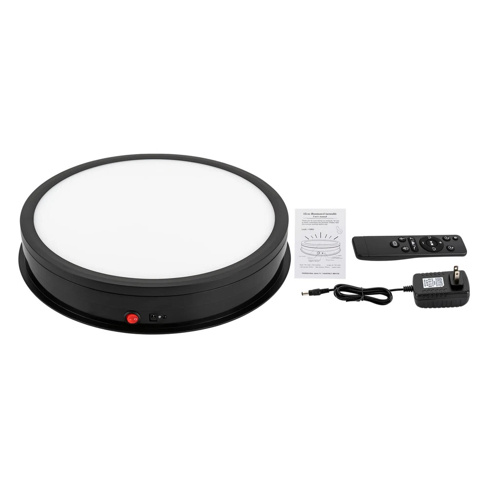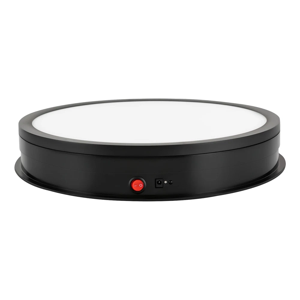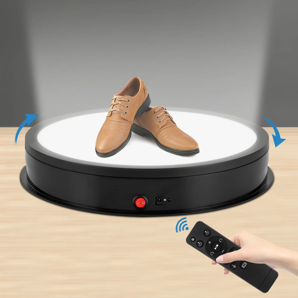 Specification Material: ABS+Acrylic Assembly Required: No Mount Type: Countertop Plug Standard: US Standard Voltage: 100-240V Shape: Round Style: Modern Base Type: Pedestal Power Source: Corded Electric Number of Items: 1 Three Colors of Light: White/Yellow/Yellow-White Rotation Speed: 20-60 Seconds / Circle Adjustment Method: Remote Control Battery Type: 2*AAA Batteries(Not Included) Remote Control Distance: Unobstructed 2-5m/6.56-16.4ft Maximum Weight: ≤50kg Working Noise: <40dB Light Power: 16W Overall Power: 30W Adjustable Angle: 45°, 90°, 180° Rotating Direction: Anti-Clockwise and Clockwise Gross Weight: 3.1kg/ 6.83 lbs Net Weight: 2.45kg/ 5.4 lbs Package Size: 45*48*9 cm/17.72*18.9*3.54 in Rotating Display Stand Platform Rack Product W/ 3 Color Led Light Turntable Rack Specification Model: QM0105902 Material: ABS+Acrylic Color: Black Assembly Required: No Mount Type: Countertop Plug Standard: US Standard Voltage: 100-240V Shape: Round Style: Modern Base Type: Pedestal Power Source: Corded Electric Number of Items: 1 Three Colors of Light: White/Yellow/Yellow-White Rotation Speed: 20-60 Seconds / Circle Adjustment Method: Remote Control Battery Type: 2*AAA Batteries(Not Included) Remote Control Distance: Unobstructed 2-5m/6.56-16.4ft Maximum Weight: ≤50kg Working Noise: <40dB Light Power: 16W Overall Power: 30W Adjustable Angle: 45°, 90°, 180° Rotating Direction: Anti-Clockwise and Clockwise Gross Weight: 3.1kg/ 6.83 lbs Net Weight: 2.45kg/ 5.4 lbs Package Size: 45*48*9 cm/17.72*18.9*3.54 in Product Size(φ*H): 42*7 cm/16.5*2.75 in Package Included 1 * Rotating Display Stand with Led Light 1 * Remote Control 1 * Adapter 1 * English Manual Specification Model: QM0105902 Material: ABS+Acrylic Assembly Required: No Mount Type: Countertop Plug Standard: US Standard Voltage: 100-240V Shape: Round Style: Modern Base Type: Pedestal Power Source: Corded Electric Number of Items: 1 Three Colors of Light: White/Yellow/Yellow-White Rotation Speed: 20-60 Seconds / Circle Adjustment Method: Remote Control Battery Type: 2*AAA Batteries(Not Included) Remote Control Distance: Unobstructed 2-5m/6.56-16.4ft Maximum Weight: ≤50kg Working Noise: <40dB Light Power: 16W Overall Power: 30W Adjustable Angle: 45°, 90°, 180° Rotating Direction: Anti-Clockwise and Clockwise Gross Weight: 3.1kg/ 6.83 lbs Net Weight: 2.45kg/ 5.4 lbs Package Size: 45*48*9 cm/17.72*18.9*3.54 in Product Size(φ*H): 42*7 cm/16.5*2.75 in Description Detailed product details and beautiful product images are more attractive to customers. Our rotating display stand with LED light can be rotated 360° so that the details in all directions can be displayed. It can also adjust the speed, angle, brightness, and rotation mode by remote control, thus adding more convenience to your shooting. It can make your display more beautiful and is also a great partner for home collections. Key Features High-quality Material: This product is made of high-quality ABS and acrylic, with high hardness, high abrasion resistance, and long service life. High Stability: The large 16.5 inch diameter round base provides high stability and over 110 lbs of load capacity, thus making the product safer to use. Easy to Use: The one-touch switch and remote control are simple and easy to operate. You can adjust the speed, angle(45°, 90°, 180°), brightness, and rotation mode (continuous rotation and intermittent rotation) by remote control to meet your different shooting needs. Panoramic Display: The 16.5" diameter round display can be rotated 360° to show every detail of your product and make it stand out in the reflection of light. The high quality white guide plate makes it free from visual screen flash and protects your eyes to a certain extent while enhancing the aesthetics of the product. It also does not cause shadows on the objects placed on it, making it easier for you to photoshop your products. Good Light Source: Energy-saving LED light with three colors (white/yellow/yellow white) can save energy and costs, and also allow you to choose the appropriate lighting atmosphere based on the appearance and color of the product, making the product images more exquisite and better attracting customers. Low Noise: The high-quality movement and motor make the working noise of product rotation within 40 decibels, which can provide you with a quiet and comfortable working environment. Protective Shipping: Plastic bags, bubble film, rigid cartons, and other multiple packaging make the product less likely to wear out during shipping, thus allowing you to receive an almost undamaged product. Details Long Power Cord: The 4.92ft power cord reduces usage limitations and further protects you. Anti-slip Pads: Five anti-slip pads not only effectively enhance the friction of your products but also protect the bottom of your product and the table from being worn. Application This product is ideal for displaying jewelry, watches, digital products, bags, models, shampoos, glasses, and other collectibles and is suitable for stores, studios, school libraries, exhibition halls, living rooms, events, parties, weddings, and other places. It is a great tool for product photography, making 360° videos, short videos, 3D models, and other product presentations. Notes Please note that other display items are not included in the package. Please do not use it for more than 8 hours at a time. For heavy products please make sure to place in the middle area of the turntable and turn slowly. Products with electrical plugs are designed for use in the US. Please check compatibility before purchasing. Please read the operating manual completely before use, and pay particular attention to the safety instructions included. Please allow the slight color difference caused by the shooting light and the 1-3 cm error due to manual measurement, and make sure you do not mind before ordering. Payment Delivery details Terms of sales About us Contact us Payment We accept ebay payment 。 Fees s