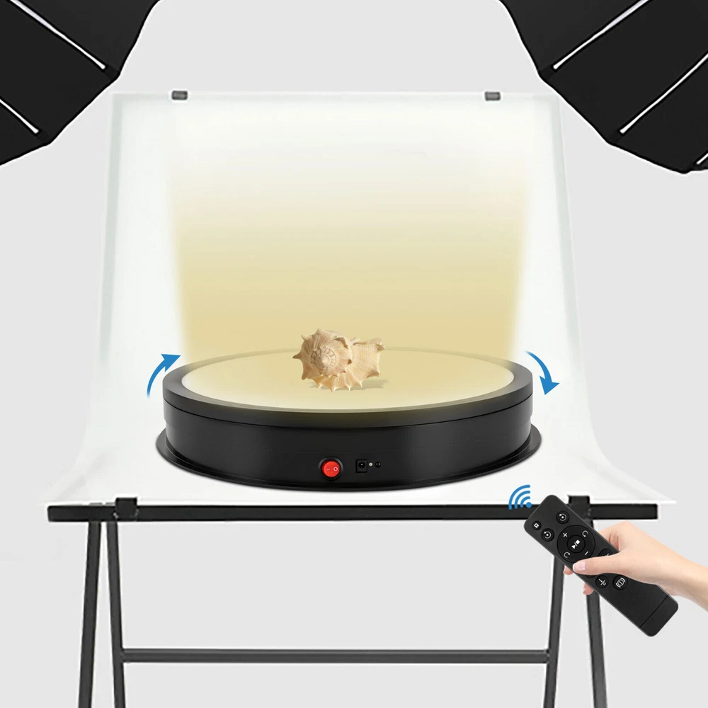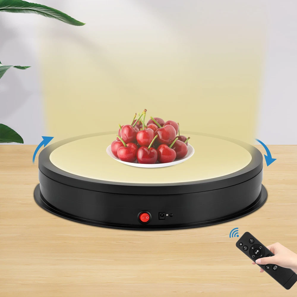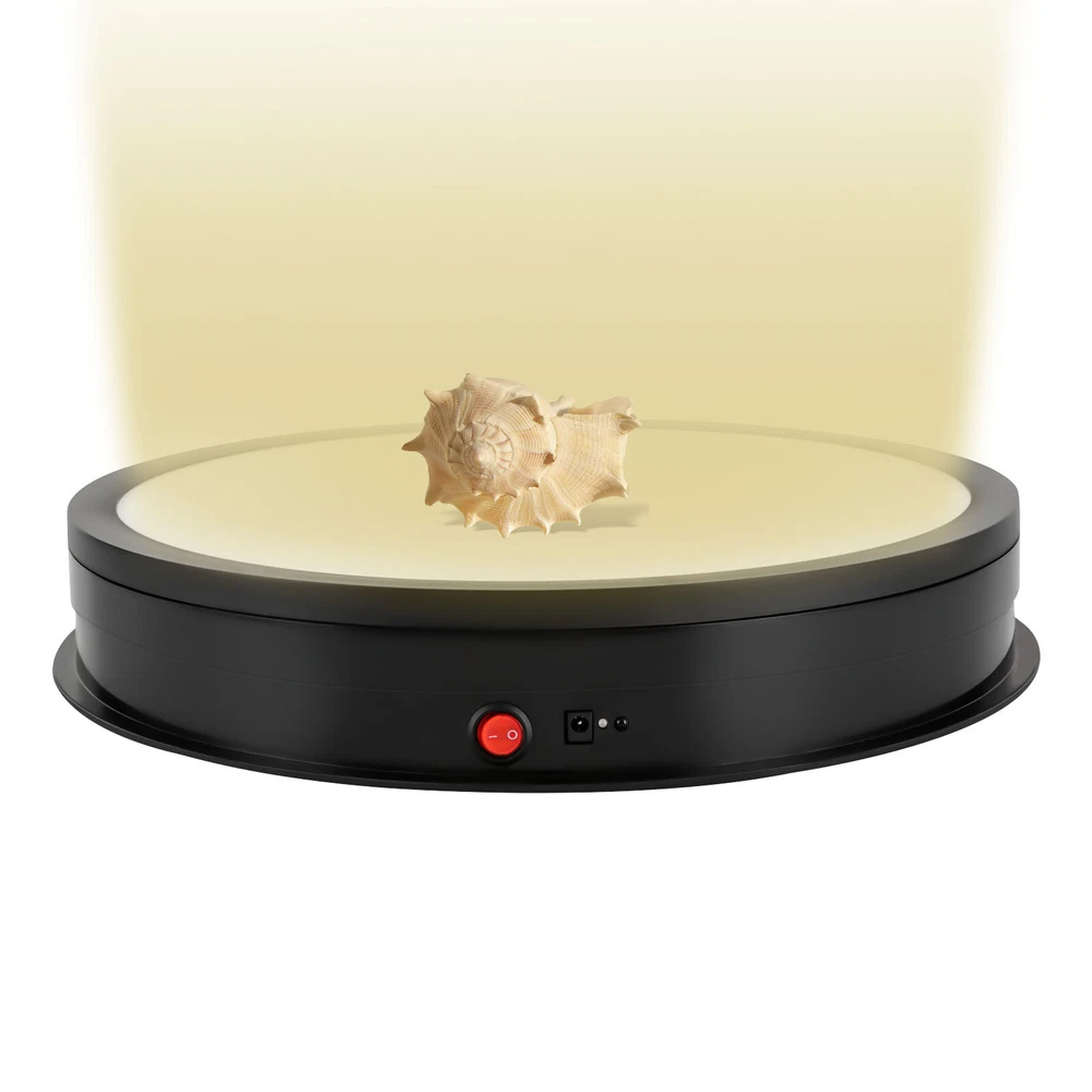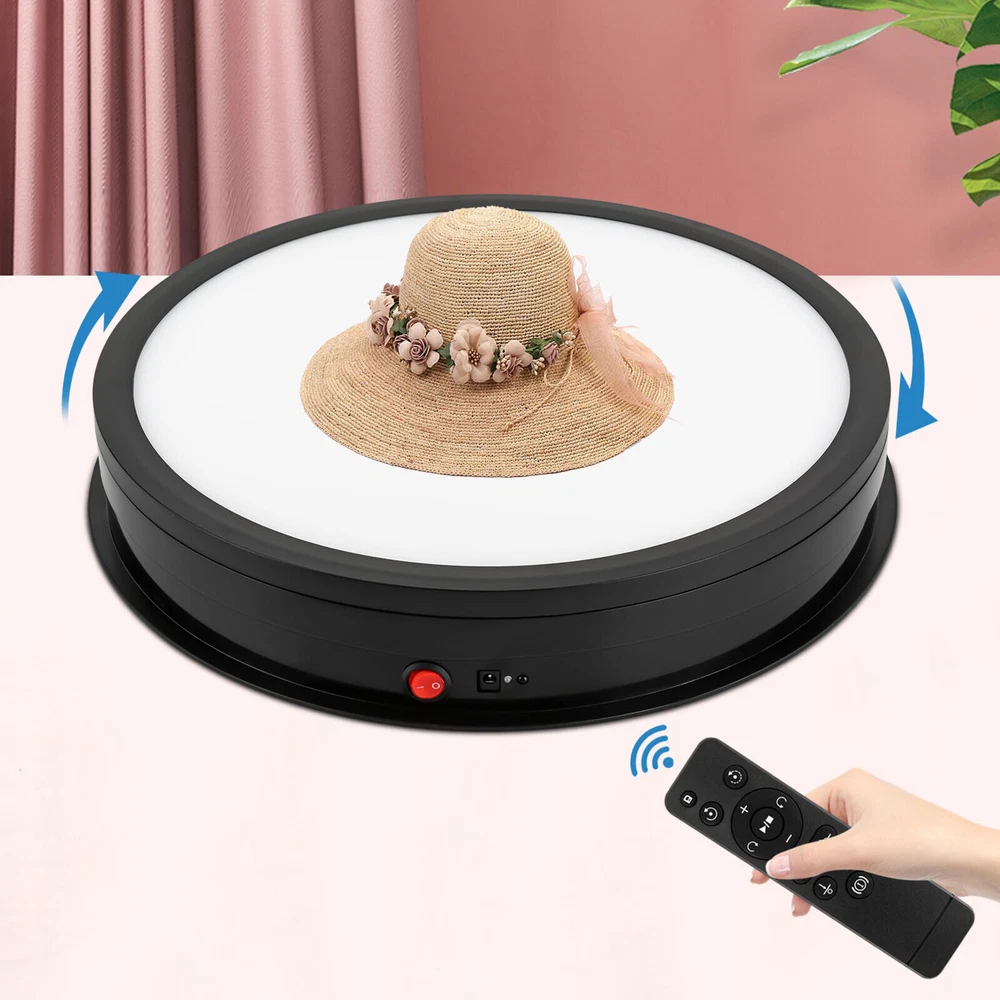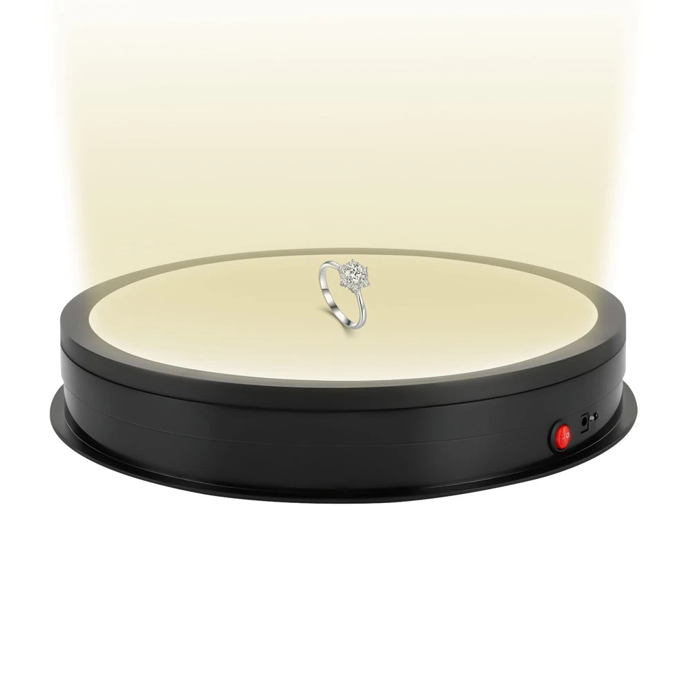 Specification Material: ABS+Acrylic Assembly Required: No Mount Type: Countertop Plug Standard: US Standard Voltage: 100-240V Shape: Round Style: Modern Base Type: Pedestal Power Source: Corded Electric Number of Items: 1 Three Colors of Light: White/Yellow/Yellow-White Rotation Speed: 20-60 Seconds / Circle Adjustment Method: Remote Control Battery Type: 2*AAA Batteries(Not Included) Remote Control Distance: Unobstructed 2-5m/6.56-16.4ft Maximum Weight: ≤50kg Working Noise: <40dB Light Power: 16W Overall Power: 30W Adjustable Angle: 45°, 90°, 180° Rotating Direction: Anti-Clockwise and Clockwise Gross Weight: 3.1kg/ 6.83 lbs Net Weight: 2.45kg/ 5.4 lbs Package Size: 45*48*9 cm/17.72*18.9*3.54 in Rotating Display Stand Platform Rack Product W/ 3 Color Led Light Turntable Rack Specification Model: QM0105902 Material: ABS+Acrylic Color: Black Assembly Required: No Mount Type: Countertop Plug Standard: US Standard Voltage: 100-240V Shape: Round Style: Modern Base Type: Pedestal Power Source: Corded Electric Number of Items: 1 Three Colors of Light: White/Yellow/Yellow-White Rotation Speed: 20-60 Seconds / Circle Adjustment Method: Remote Control Battery Type: 2*AAA Batteries(Not Included) Remote Control Distance: Unobstructed 2-5m/6.56-16.4ft Maximum Weight: ≤50kg Working Noise: <40dB Light Power: 16W Overall Power: 30W Adjustable Angle: 45°, 90°, 180° Rotating Direction: Anti-Clockwise and Clockwise Gross Weight: 3.1kg/ 6.83 lbs Net Weight: 2.45kg/ 5.4 lbs Package Size: 45*48*9 cm/17.72*18.9*3.54 in Product Size(φ*H): 42*7 cm/16.5*2.75 in Package Included 1 * Rotating Display Stand with Led Light 1 * Remote Control 1 * Adapter 1 * English Manual Specification Model: QM0105902 Material: ABS+Acrylic Assembly Required: No Mount Type: Countertop Plug Standard: US Standard Voltage: 100-240V Shape: Round Style: Modern Base Type: Pedestal Power Source: Corded Electric Number of Items: 1 Three Colors of Light: White/Yellow/Yellow-White Rotation Speed: 20-60 Seconds / Circle Adjustment Method: Remote Control Battery Type: 2*AAA Batteries(Not Included) Remote Control Distance: Unobstructed 2-5m/6.56-16.4ft Maximum Weight: ≤50kg Working Noise: <40dB Light Power: 16W Overall Power: 30W Adjustable Angle: 45°, 90°, 180° Rotating Direction: Anti-Clockwise and Clockwise Gross Weight: 3.1kg/ 6.83 lbs Net Weight: 2.45kg/ 5.4 lbs Package Size: 45*48*9 cm/17.72*18.9*3.54 in Product Size(φ*H): 42*7 cm/16.5*2.75 in Description Detailed product details and beautiful product images are more attractive to customers. Our rotating display stand with LED light can be rotated 360° so that the details in all directions can be displayed. It can also adjust the speed, angle, brightness, and rotation mode by remote control, thus adding more convenience to your shooting. It can make your display more beautiful and is also a great partner for home collections. Key Features High-quality Material: This product is made of high-quality ABS and acrylic, with high hardness, high abrasion resistance, and long service life. High Stability: The large 16.5 inch diameter round base provides high stability and over 110 lbs of load capacity, thus making the product safer to use. Easy to Use: The one-touch switch and remote control are simple and easy to operate. You can adjust the speed, angle(45°, 90°, 180°), brightness, and rotation mode (continuous rotation and intermittent rotation) by remote control to meet your different shooting needs. Panoramic Display: The 16.5" diameter round display can be rotated 360° to show every detail of your product and make it stand out in the reflection of light. The high quality white guide plate makes it free from visual screen flash and protects your eyes to a certain extent while enhancing the aesthetics of the product. It also does not cause shadows on the objects placed on it, making it easier for you to photoshop your products. Good Light Source: Energy-saving LED light with three colors (white/yellow/yellow white) can save energy and costs, and also allow you to choose the appropriate lighting atmosphere based on the appearance and color of the product, making the product images more exquisite and better attracting customers. Low Noise: The high-quality movement and motor make the working noise of product rotation within 40 decibels, which can provide you with a quiet and comfortable working environment. Protective Shipping: Plastic bags, bubble film, rigid cartons, and other multiple packaging make the product less likely to wear out during shipping, thus allowing you to receive an almost undamaged product. Details Long Power Cord: The 4.92ft power cord reduces usage limitations and further protects you. Anti-slip Pads: Five anti-slip pads not only effectively enhance the friction of your products but also protect the bottom of your product and the table from being worn. Application This product is ideal for displaying jewelry, watches, digital products, bags, models, shampoos, glasses, and other collectibles and is suitable for stores, studios, school libraries, exhibition halls, living rooms, events, parties, weddings, and other places. It is a great tool for product photography, making 360° videos, short videos, 3D models, and other product presentations. Notes Please note that other display items are not included in the package. Please do not use it for more than 8 hours at a time. For heavy products please make sure to place in the middle area of the turntable and turn slowly. Products with electrical plugs are designed for use in the US. Please check compatibility before purchasing. Please read the operating manual completely before use, and pay particular attention to the safety instructions included. Please allow the slight color difference caused by the shooting light and the 1-3 cm error due to manual measurement, and make sure you do not mind before ordering. Payment Delivery details Terms of sales About us Contact us Payment We accept ebay payment 。 Fees s