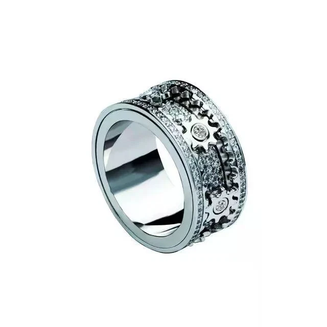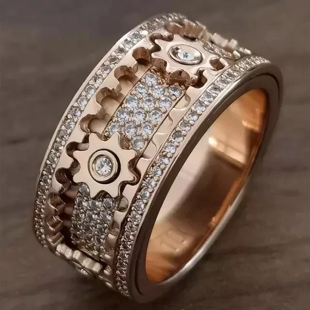 Theme: Punk Ring Item: Wedding Rings Setting Type: None Shape: Gear Material: Metal Surface Width: 2.5mm,8mm Brand: Unbranded Gender: Unisex Suit: Men Women Style: Spinner, Vintage Metal: Rose Gold Type: Ring Ring Size: 10 Item Type: Rings Occasion: Party Origin: Mainland China Fine Or Fashion: Fashion Color: Silver Shape\pattern: Geometric Main Stone Color: Pink Rings Type: Cocktail Ring