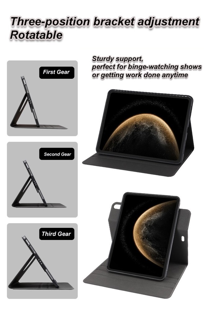 F eatures: 🌟 Elevate Your iPad Experience with Our Premium Protective Case Designed to blend style, functionality, and durability—this isn’t just a case, it’s a daily companion for your iPad. Whether you’re working on the go, binge-watching your favorite shows, or video calling loved ones, it checks every box for convenience and protection. ✨ Premium PU Leather: Sleek Style That Stays Pristine Crafted from high-grade PU leather, this case boasts a luxuriously smooth finish that complements your iPad’s modern design. Say goodbye to unsightly smudges, fingerprints, or accidental stains—even coffee spills or makeup marks wipe away in seconds with a damp cloth. Keep your iPad looking sleek and professional, day in and day out. 🔄 360° Rotating Stand: Perfect Angle for Every Moment No more struggling to prop up your iPad! The built-in 360-degree rotating stand lets you switch effortlessly between landscape and portrait modes, and lock into any angle that suits you: -Watch movies or TikTok hands-free at a comfortable viewing tilt -Type emails or take notes with a stable, laptop-like setup -Video call friends/family without holding your device -Read e-books or PDFs at a glare-free angleIdeal for home, office, travel, or even lazy weekends on the couch! 💤 Smart Auto Sleep/Wake: Save Battery, Simplify Use Forget fumbling with power buttons—this case does the work for you. When you close the lid, it automatically puts your iPad to sleep to preserve battery life. Open it back up, and your device wakes instantly, ready to use. Perfect for busy schedules—never waste time waiting for your iPad to turn on again. 🛡️ Reinforced Corner Protection: Durability You Can Trust Accidents happen, but your iPad doesn’t have to suffer. We’ve added reinforced, shock-absorbent corners to shield against drops, bumps, and scratches—whether you’re tossing it in a backpack, setting it on a desk, or using it on the move. Rest easy knowing your device is protected, without sacrificing style. 🎒 Slim & Lightweight: Protection Without the Bulk Who wants a bulky case weighing down their bag? This cover is ultra-slim and lightweight, so it slides easily into backpacks, purses, or briefcases. Use it for daily commutes, work trips, or weekend getaways—enjoy full protection without adding extra heft to your iPad. Package Included: 1 x Case Cover(not include ipad,screen protector,pencil) Please check back bottom of your iPad to find one of these model numbers Choose Model Name iPad Model Number Screen Size(inch ) For iPad Mini (6th 8.3"2021) A2567/A2568/A2569 8.3 For iPad Mini (A17 Pro) 2024 A2995/A2996 8.3 For iPad 5th Gen (9.7"2017) A1822/A1823 9.7 For iPad 6th Gen (9.7"2018) A1893/A1954 9.7 For iPad Air 1(9.7"2013) A1474/A1475/A1476 9.7 For iPad Air 2(9.7"2014) A1566/A1567 9.7 For iPad 7th Gen (10.2" 2019) A2197/A2198/A2199/A2200 10.2 For iPad 8th Gen (10.2" 2020) A2430/A2429/A2428/A2270 10.2 For iPad 9th Gen (10.2" 2021) A2602/A2603/A2604/A2605 10.2 For iPad 10th Gen (10.9" 2022) A2696/A2757/A2777 10.9 For iPad 11" (A16) 2025 A3354 / A3355 / A3356 11 For iPad Air 4(10.9"2020) A2316/A2324/A2325/A2072 10.9 For iPad Air 5(10.9"2022) A2588/A2589/A2591 10.9 For iPad Air 11 M2 (2024) A2902/A2903/A2904 11 For iPad Air 11 M3 (2025) A3266/A3267/A3270 11