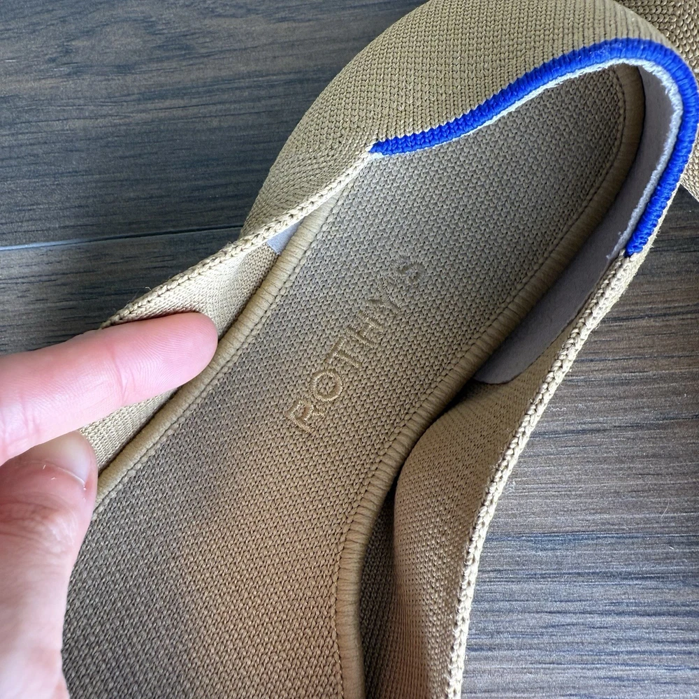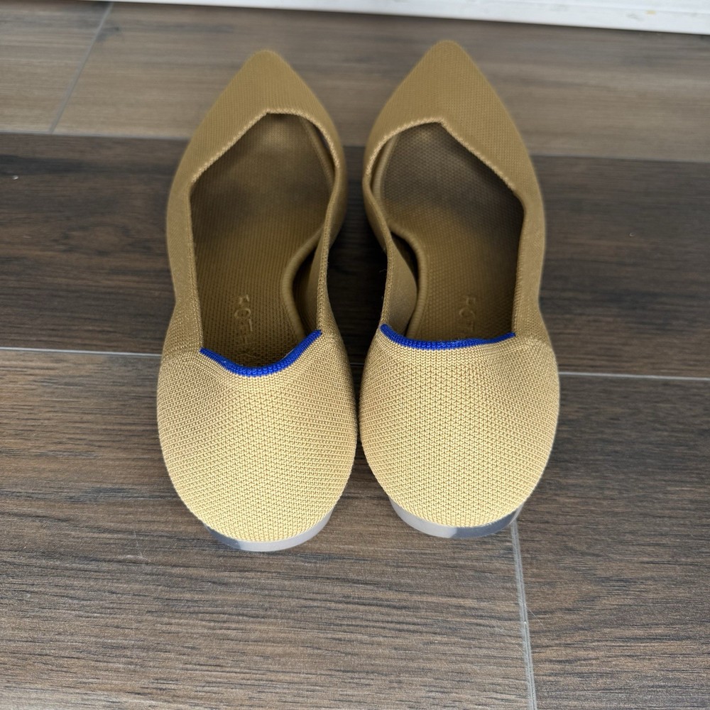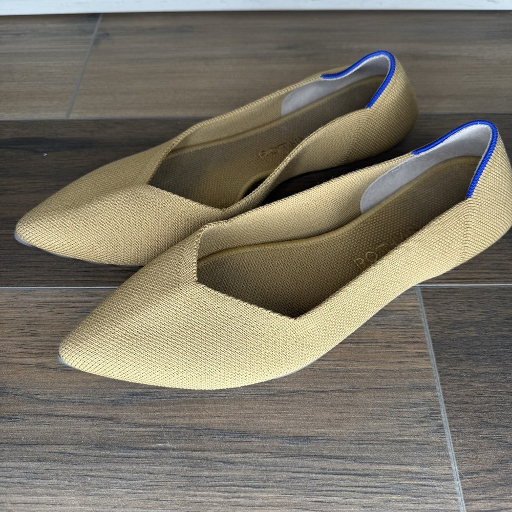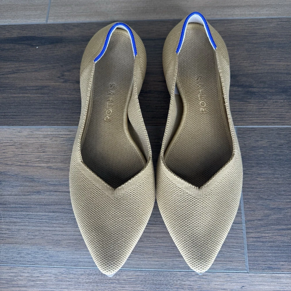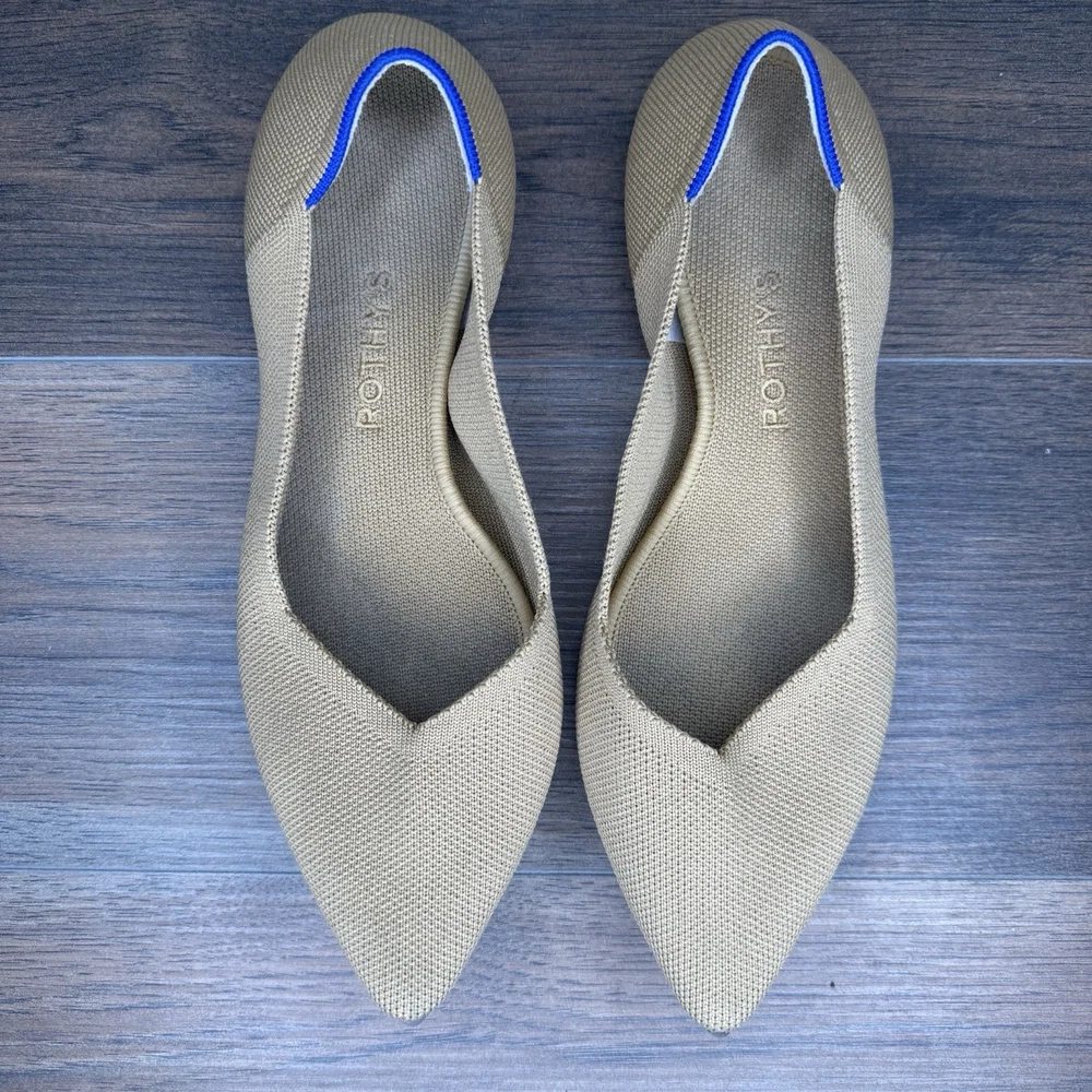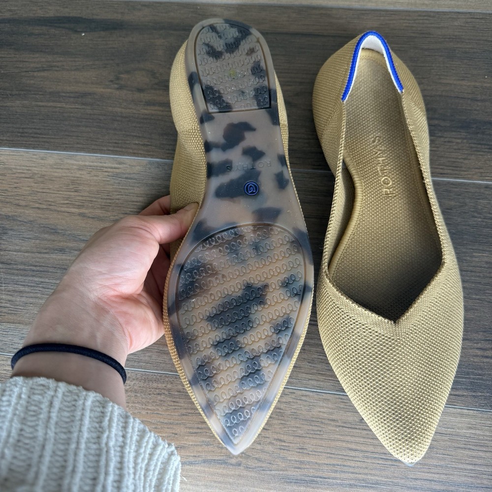 These Rothy's Flats in Women's Size 10.5 are a stylish and comfortable option for casual wear. Featuring a classic pointed toe design and slip-on closure, these ballet flats are perfect for year-round wear. Made with synthetic upper material and a rubber outsole, they offer both durability and comfort. The tan color and solid pattern make them versatile for pairing with a variety of outfits.
