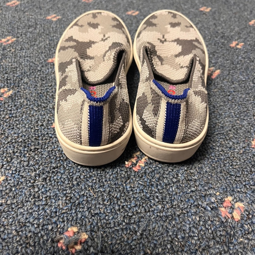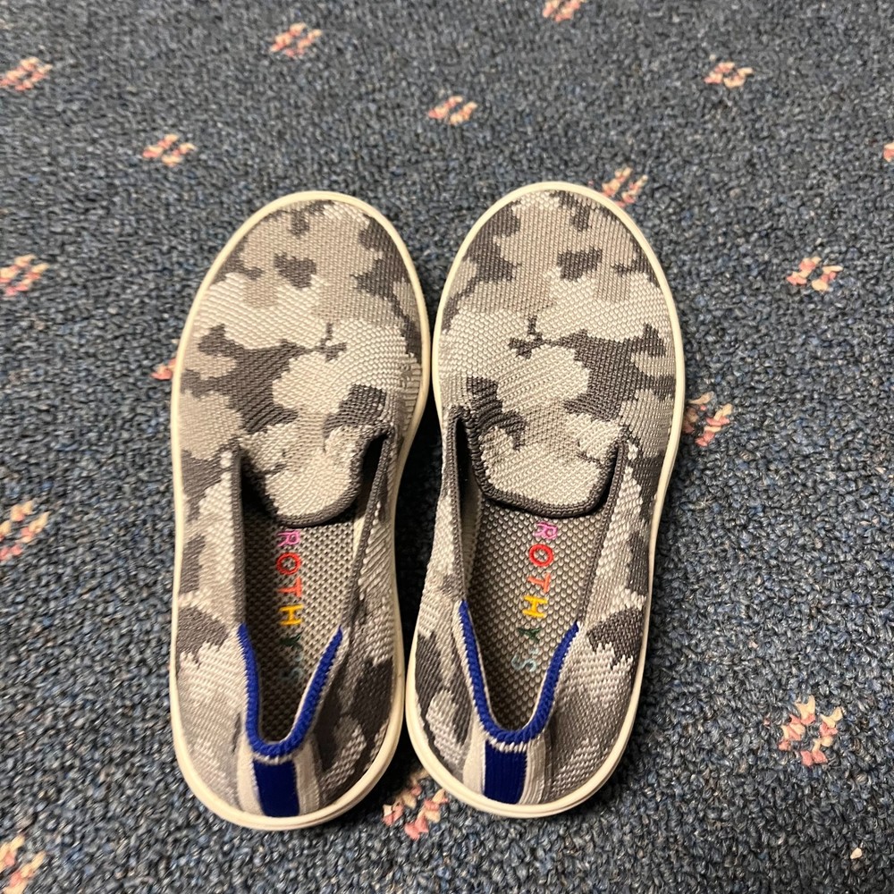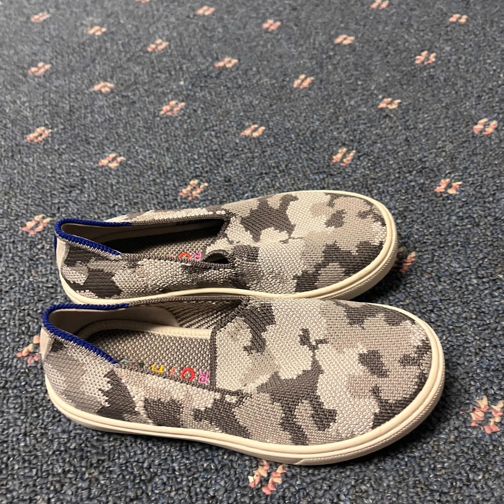 The Rothy's Kids Slip-On Sneaker Loafer in Gray Camo is a stylish and comfortable option for active kids. With a slip-on design, round toe shape, and flat heel, these sneakers are perfect for casual wear and walking activities. Made from knit fabric with a rubber outsole, they offer breathability and comfort. The colorful camouflage pattern adds a fun touch to the standard shoe width, making them a versatile choice for summer, fall, and spring seasons. Ideal for both boys and girls, these sneakers are a practical and fashionable option for young individuals.