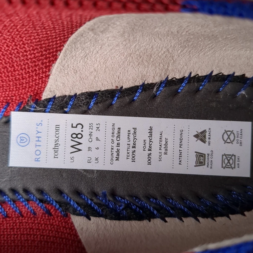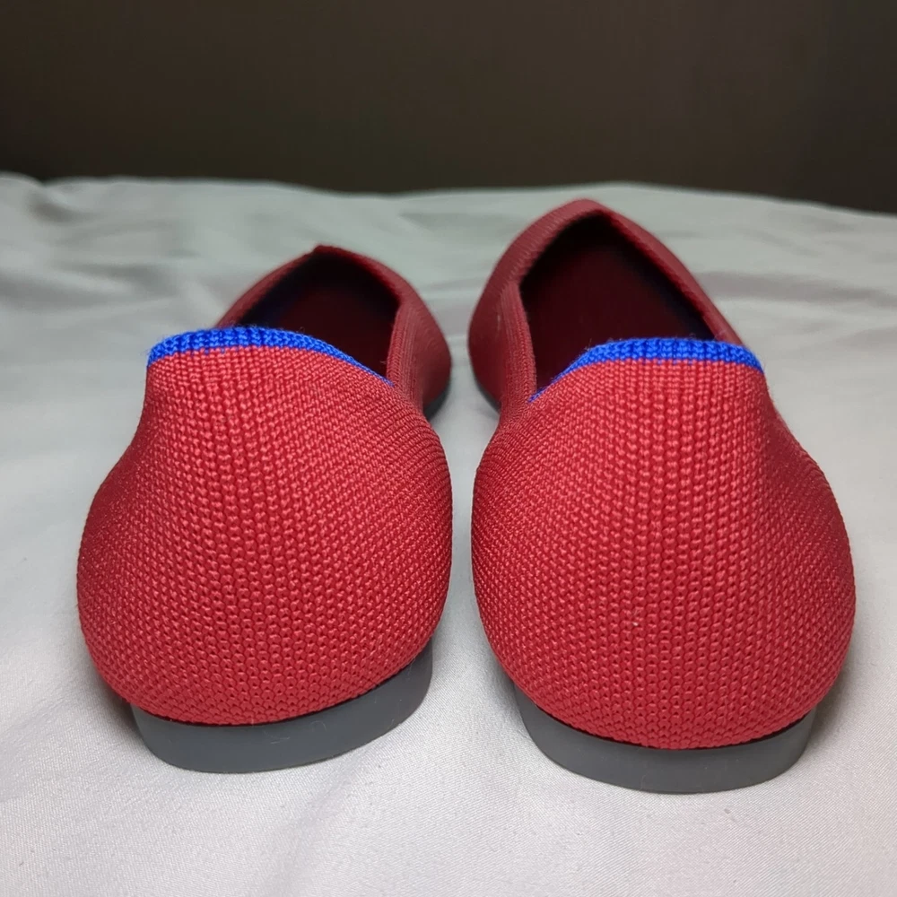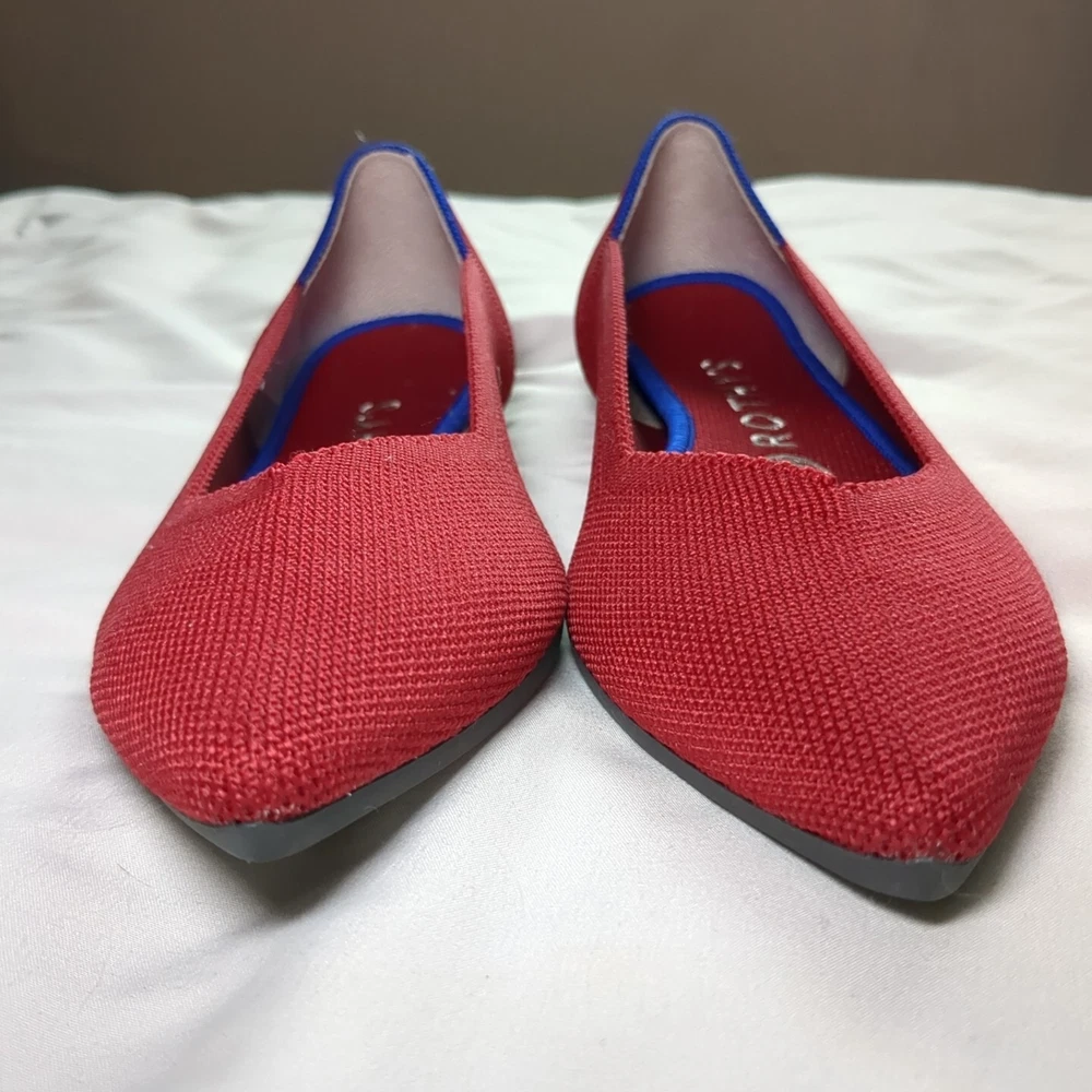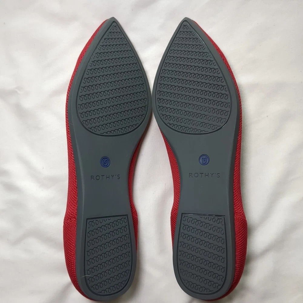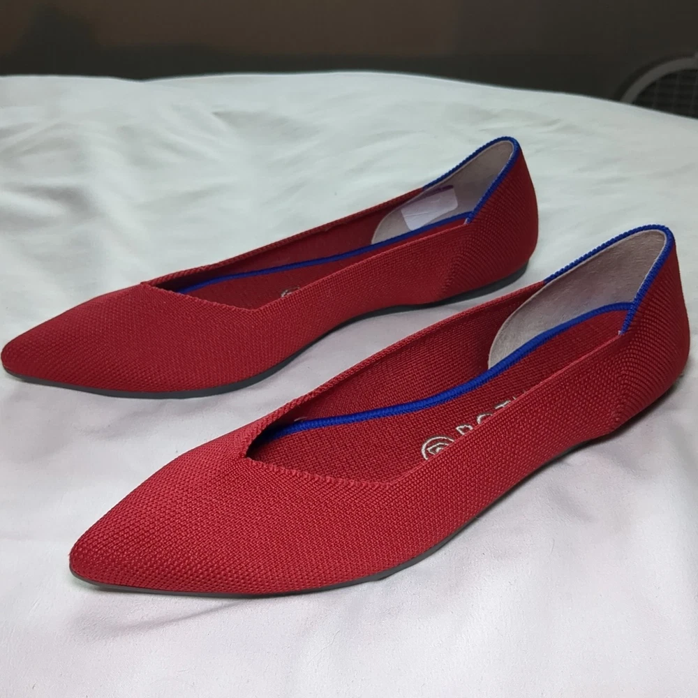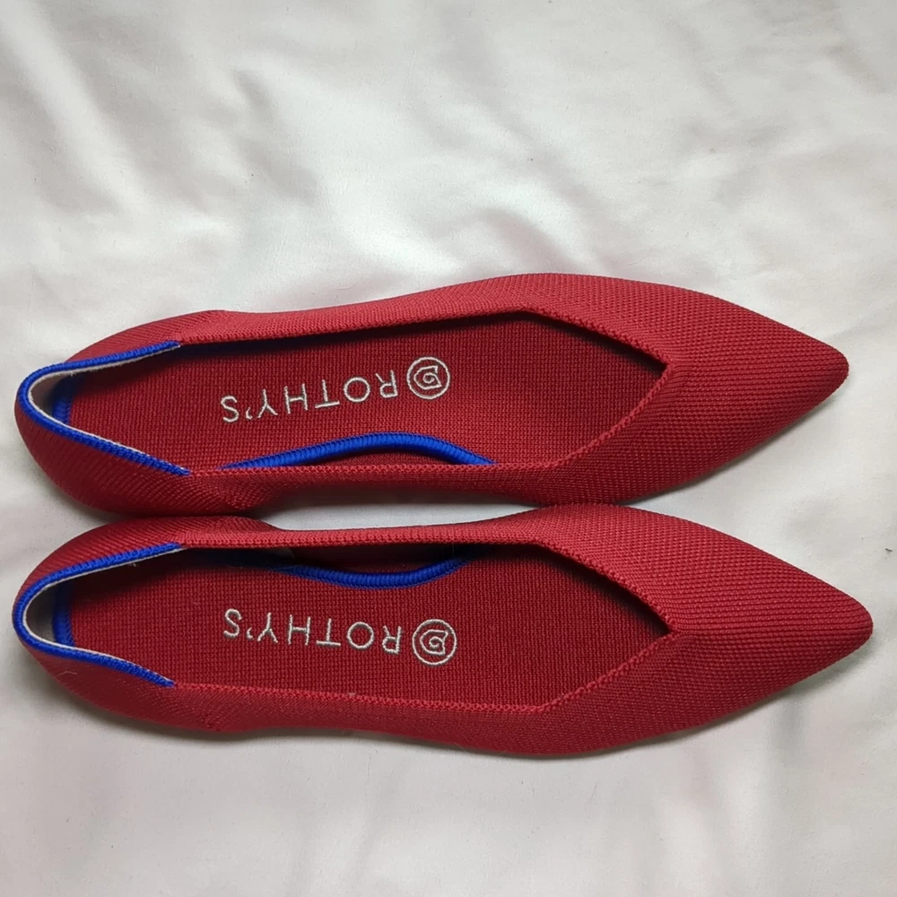 Elevate your casual look with these classic Rothys ballet flats in a beautiful red color. These slip-on flats feature a pointed toe and a comfortable foam insole, making them perfect for all-day wear. The knit fabric type and rubber outsole material ensure durability and breathability, making them ideal for spring. The flats are available in UK Shoe Size 6, US Shoe Size 8.5, and EU Shoe Size 39, with a standard shoe width. The textile lining material and upper material further add to the comfort and breathability of these flats. These Rothys ballet flats are perfect for any casual occasion and are a must-have addition to any wardrobe.