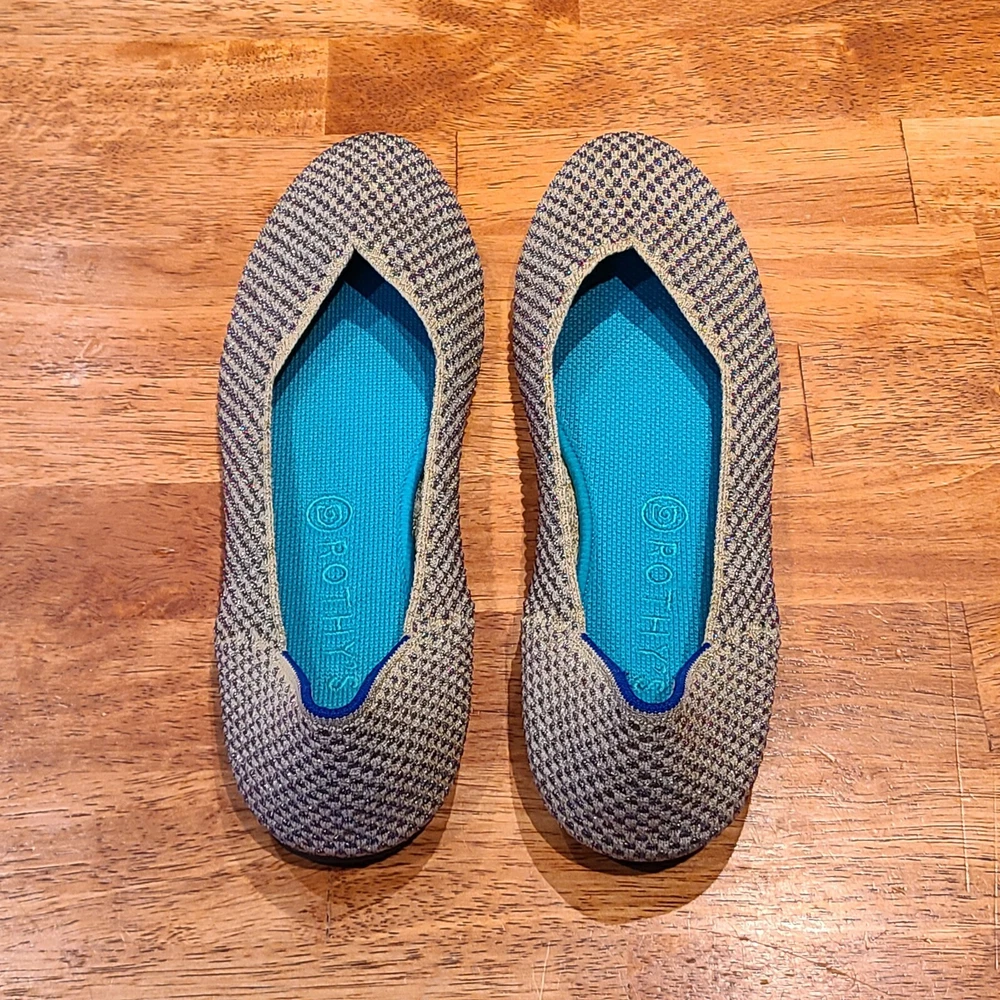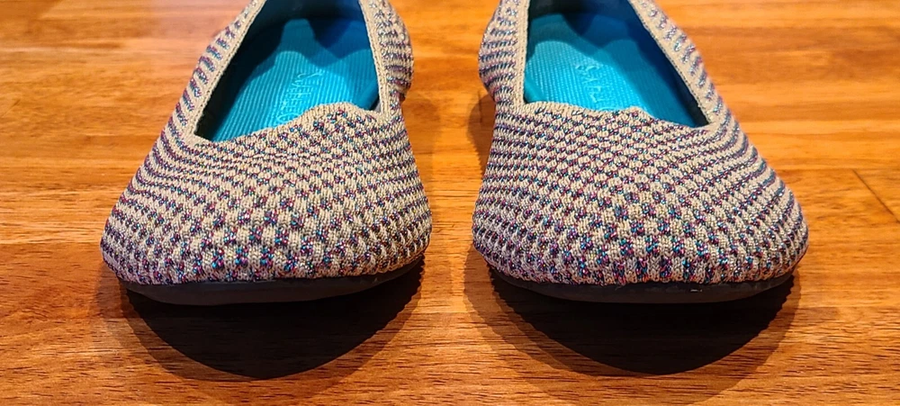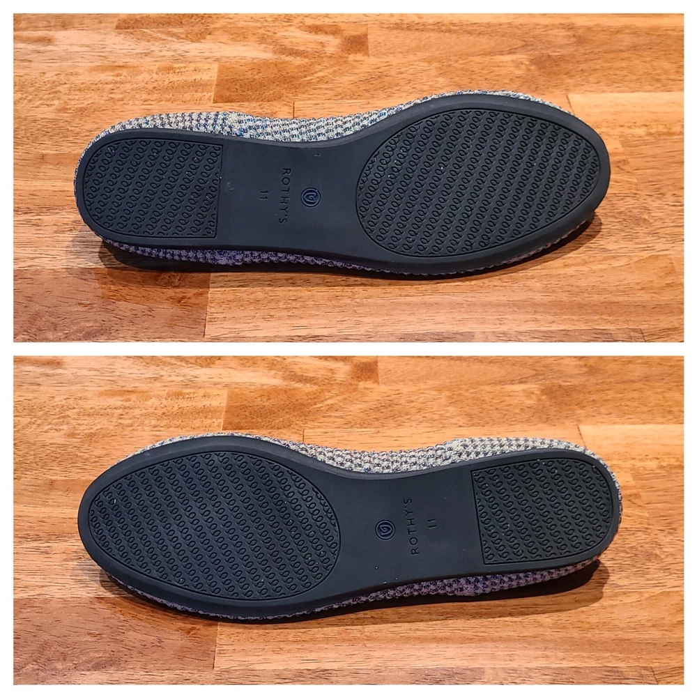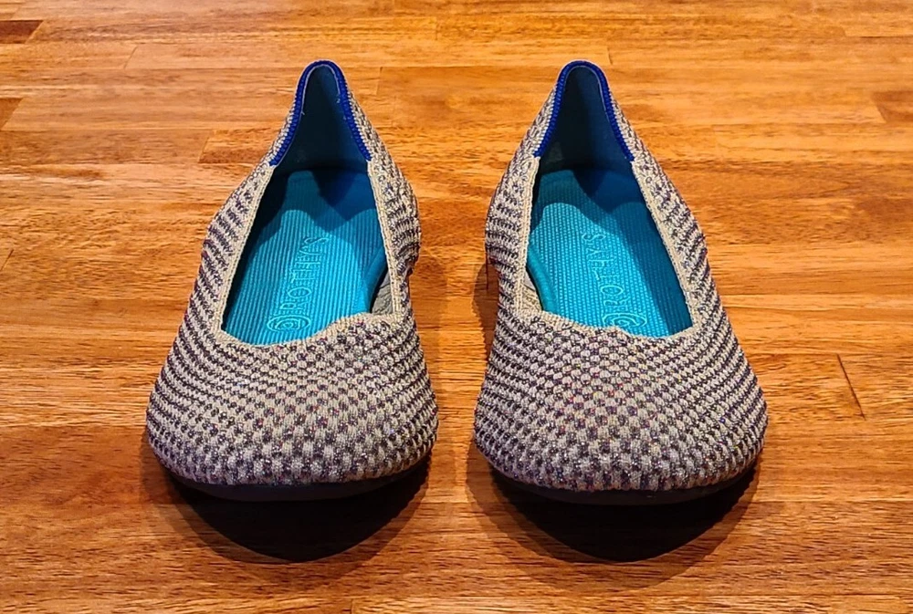 Preowned Rothy's Rounded Toe Flats Cyber Monday Holiday Limited Edition Multi Metallic Sparkling Slip-On Shoes. Size is 11. Shoes are in excellent condition. See photos.