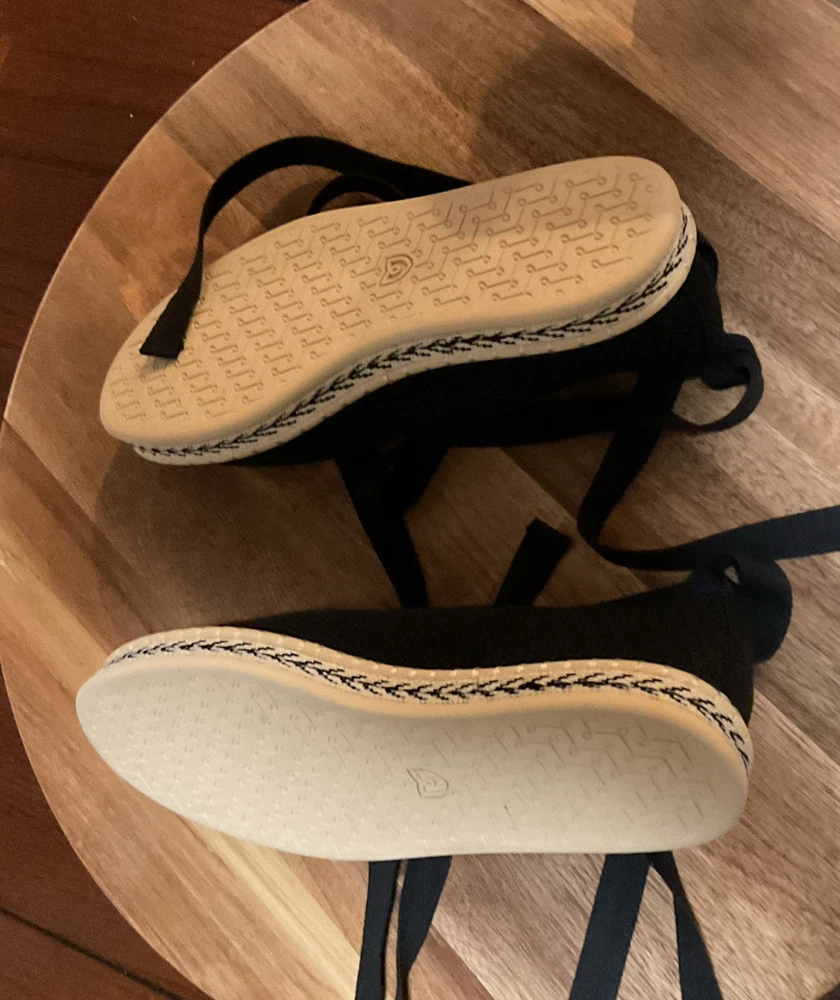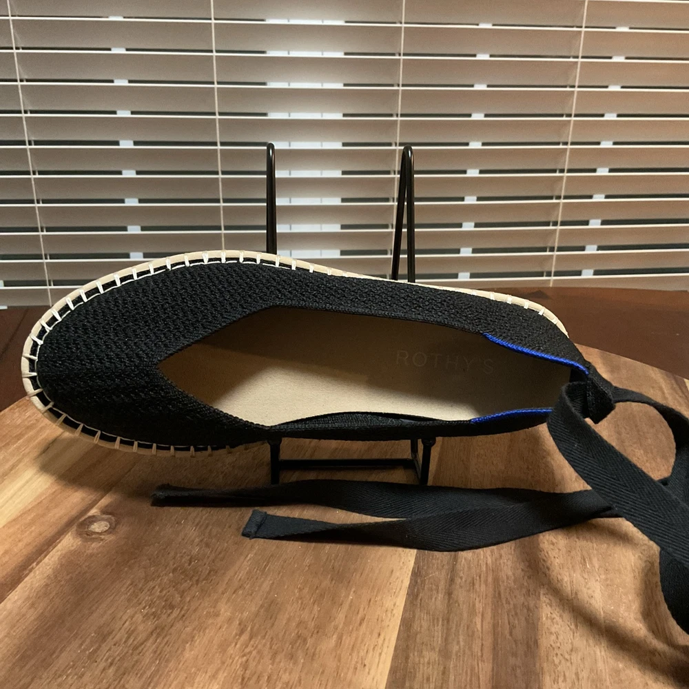Step into effortless style and comfort with these chic Rothy's black knit espadrilles. Designed for the modern woman, these flats feature a sleek espadrille upper and a lightweight foam insole to keep your feet feeling breezy all day long. The breathable fabric lining ensures your feet stay cool and comfortable, while the durable rubber outsole provides reliable traction for any occasion. Whether you're headed to the office, running errands, or exploring a new city, these versatile shoes are the perfect companion for your casual, bohemian, or preppy ensembles. The slip-on design with tie ankle straps offers a secure and customizable fit, making these Rothys a practical and fashionable addition to your footwear collection.