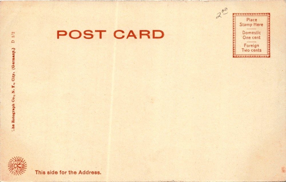 MAKE AN OFFER. THE MORE YOU BUY THE BETTER DEAL I WILL ACCEPT The postcard is from The Rotograph Co. based in New York City, with a branch in Germany. The front side is designated for the address. The postcard has space for a stamp, with the cost for domestic postage being one cent and for foreign postage being two cents.