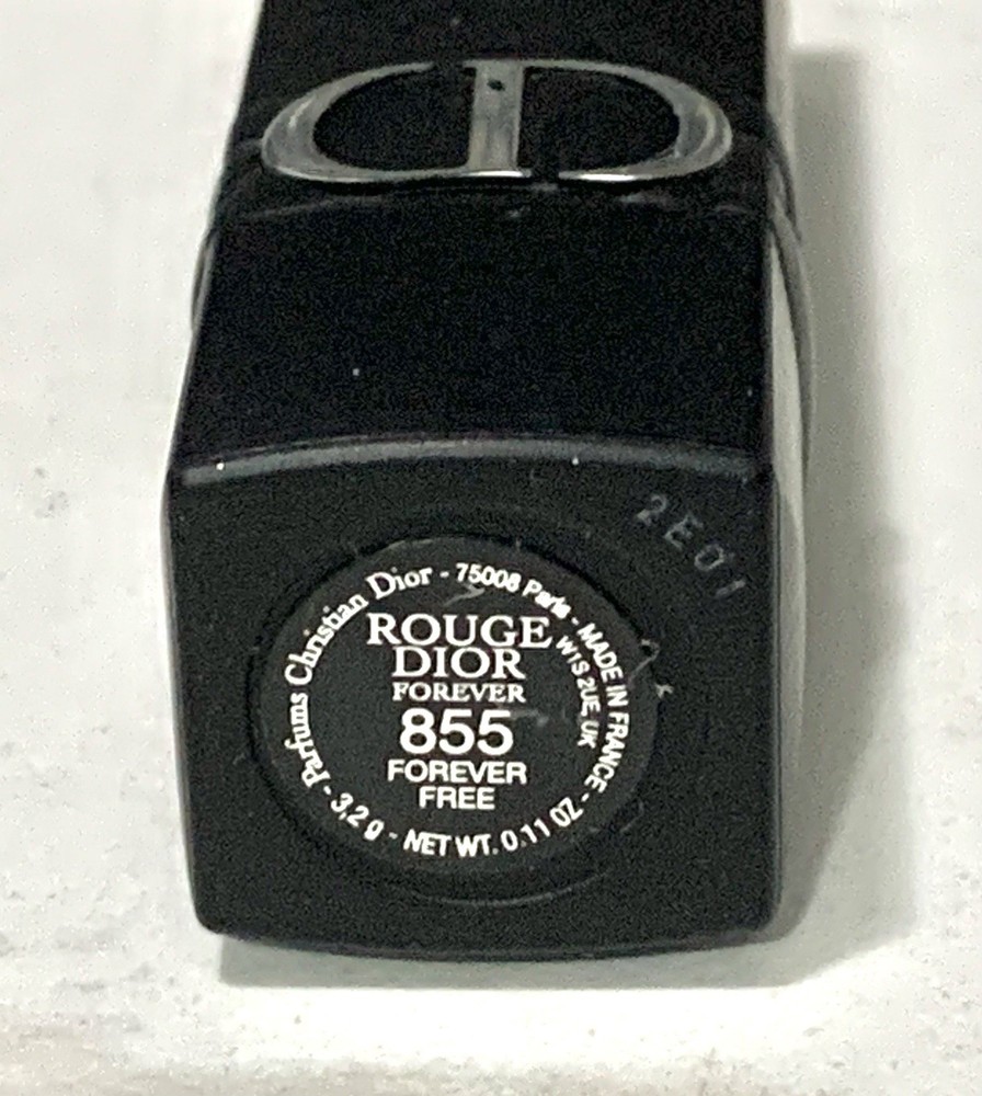 Size:StandardType:LipstickFeatures:Rouge Dior ForeverExpiration Date:n/aUPC:Does not applyPeriod After Opening (PAO):12MBrand:DiorProduct Line:DiorShade:855Effect:Mattegtin13:Does not applyFormulation:LipstickVolume:0.11 ozCountry/Region of Manufacture:France