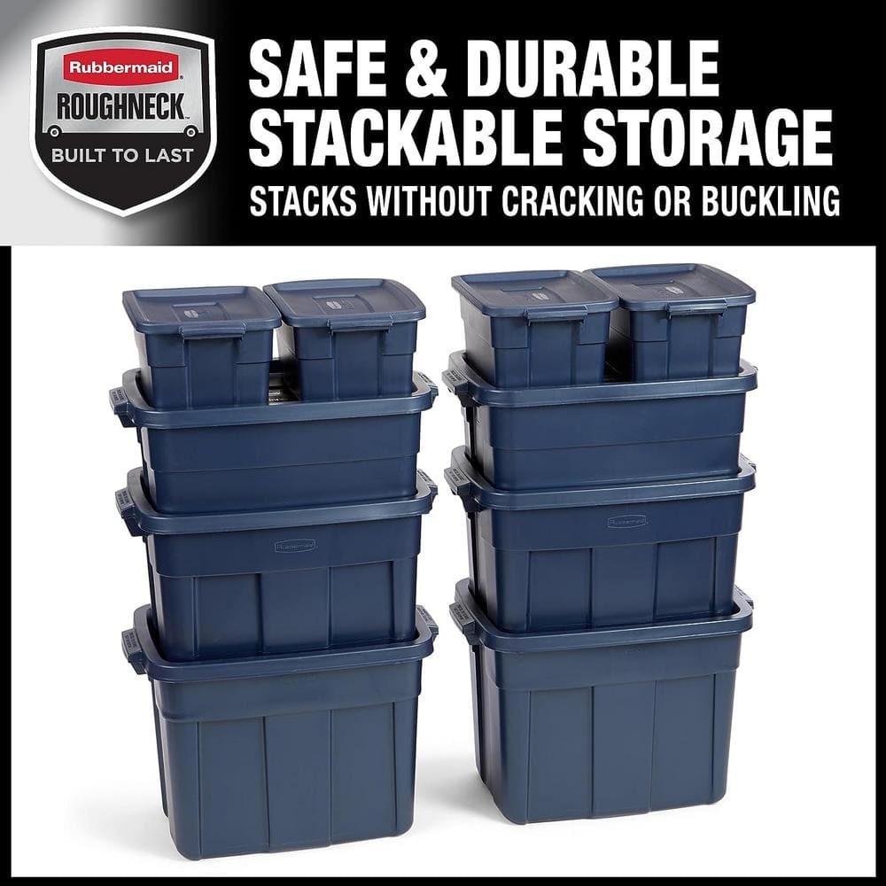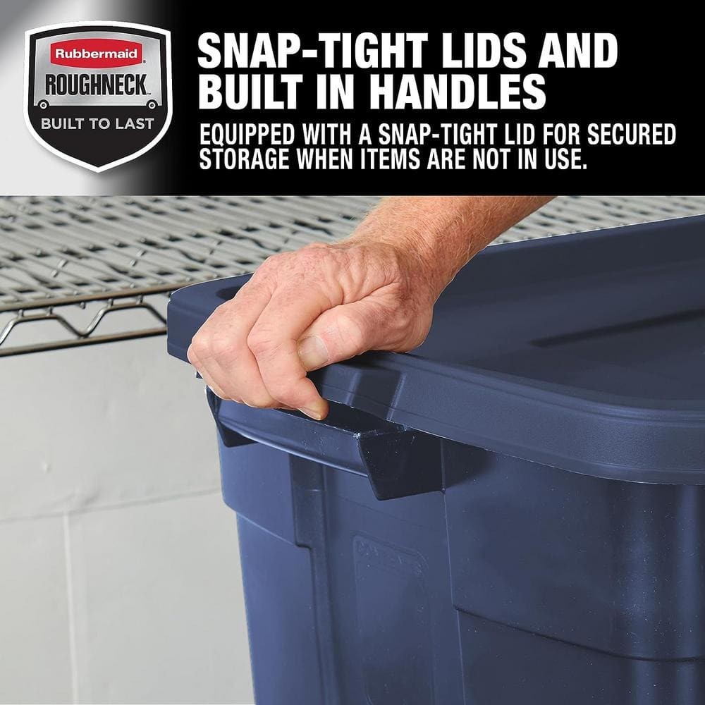 These Roughneck totes are a game-changer for storage! The snap-on lids keep everything dust-free and secure, while the heavy-duty design holds up to stacking without bending. I love the built-in handles—makes moving them a breeze. Perfect for garages, attics, or anywhere you need tough, reliable storage. The dark indigo color looks sleek too!