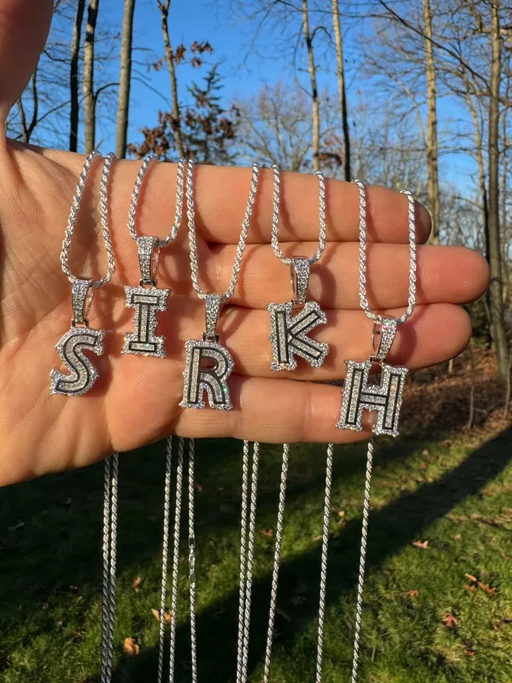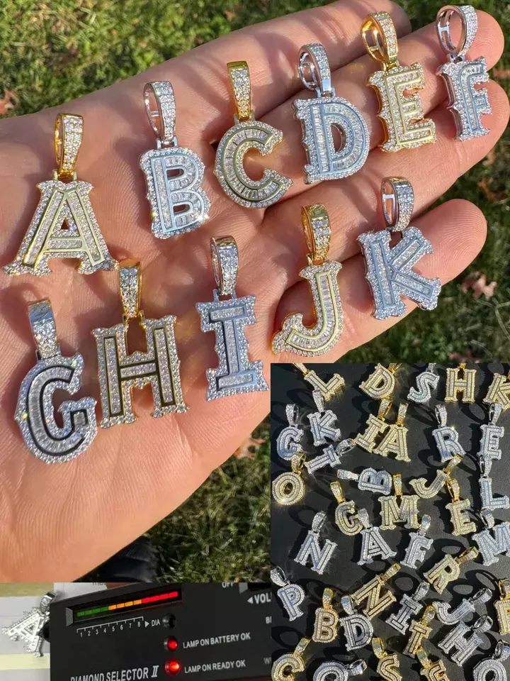 Personalize: Yes Style: Pendant Brand: Handmade Studio Necklace Length: No Cut Grade: Excellent Country of Origin: India Main Stone Color: White Main Stone Shape: Round Gemstone Clarity Grade: Eye Clean Number of Diamonds: 1 Material: Gemstone Color: White Diamond Clarity Grade: Flawless (FL) Diamond Color Grade: D Base Metal: Sterling Silver Total Carat Weight: No Metal Purity: 925 Secondary Stone: Moissanite Occasion: Anniversary, Birthday, Christening, Christmas, Confirmation/Communion, Engagement, Father's Day, Graduation, Mother's Day, Valentine's Day, Wedding Pendant Shape: Initial Necklace Setting Style: Pavé Country/Region of Manufacture: India Main Stone Creation: Lab-Created Metal: Sterling Silver Main Stone Treatment: Not Enhanced Theme: Gothic, Hip Hop Certification: No Pendant/Locket Type: Alphabet/Letter Colored Diamond Intensity: Faint Type: Pendant Main Stone: Assorted Gemstones