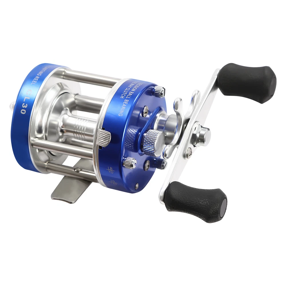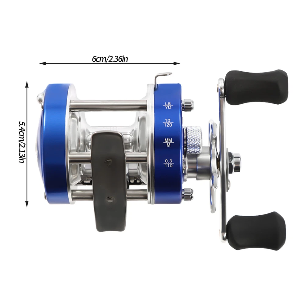 Specifications Reel Model: #30 Material: Metal, EVA, Stainless Steel, Brass Style: Modern Color: Blue Shape: Round Feature: Anti-reverse Hand Orientation: Right Hand Fishing Type: Freshwater Fishing/Saltwater Fishing Resistance: 13.61kg/30lbs Ball Bearing: 2BB+1RB Line Capacity: 4.53kg/109.7m/10lbs/120yard; 0.3mm/110m/0.012in/120.3yard Gear Ratio: 5.0:1 Gross Weight: 0.22kg/0.48lbs Product Size(L*D): 6*5.4cm/2.36*2.12in Package Size: 12*11*7.5cm/4.7*4.3*2.9in Package Included 1*Round Baitcasting Reel Have a nice day~ Description Our round baitcasting reel is made of high-quality metal, stainless steel, brass and EVA material, which is corrosion and rust-resistant and can be used for a long time. The sound switch alerts you to line disengagement. The anti-reverse ball bearing helps you reel in your line. Combining a round baitcasting reel with a braided line and a carbon fiber rod (not included) can make for a great fishing and baitcasting rod combo. It is ideal for your sea fishing, come and bring it home! Key Features Build to Last : The product's high-quality metal and EVA materials are highly resistant to impact and abrasion, ensuring a long service life. Fishing Assistant: With it, you can easily achieve sea fishing. It is a motivational aid for your fishing, allowing you to drag your rod and cast with less effort. High Stability: It features precision-cut brass gears and stainless steel ball bearings that help ensure long-lasting performance. In addition, the centrifugal brake applies consistent pressure for exceptionally accurate throwing. Large Capacity: It has a large line capacity(10lbs/120yard; 0.3mm/120.3yard) and can easily handle lengths of braided or monofilament lines(not included) for a variety of rods (not included) and target species. Thoughtful Design: The ergonomic thumb lever out release, star unloading adjustment, and up to 30 pounds of smooth carbon fiber drag will make reeling in your line easier. Easy to Use: You just need to fix the bottom of the product on the reel seat of the fishing rod (not included) and tighten it to start using it. Easy to Carry & Store: The product is lightweight(less than 0.48lbs ) and small in size( 2.36*2.12in ), making it easy for you to carry it on the go. It won't take up too much space when you store it. Hassle-free Cleaning: Thanks to its smooth surface and simple structure, you can easily clean it with water and a rag (not included). Ideal Gift: Thanks to its practicality and aesthetics, you can give it to your family or friends who enjoy fishing. Details Sturdy Base: It attaches to the fishing rod's reel seat, which is tightened and ready for use. 2 Non-slip EVA Handles: They can be easy for you to hold and won't slip easily. Clear Engraved Marks: The data marking of the line capacity is clearly displayed on the body of the product to help you better understand the capacity of this product. Practical Sound Switch: It alerts you when the line is disengaged, helping you react in time. Application It is suitable for catfish, salmon, eel, striped bass, tuna and inshore and deep sea fishing. Specifications Reel Model: #30 Material: Metal, EVA, Stainless Steel, Brass Style: Modern Color: Blue Shape: Round Feature: Anti-reverse Hand Orientation: Right Hand Fishing Type: Freshwater Fishing/Saltwater Fishing Resistance : 13.61kg/30lbs Ball Bearing: 2BB+1RB Line Capacity: 4.53kg/109.7m/10lbs/120yard; 0.3mm/110m/0.012in/120.3yard Gear Ratio: 5.0:1 Gross Weight: 0.22kg/0.48lbs Product Size(L*D): 6*5.4cm/2.36*2.12in Package Size: 12*11*7.5cm/4.7*4.3*2.9in Package Included 1*Round Baitcasting Reel Notes This product is for right-handed cranking only. Please note the size of the product before ordering. This product is ideal for fresh or saltwater use. We recommend properly rinsing the reel after use in saltwater. Please note that this product does not include a fishing line or rod. Please allow the slight color difference caused by the shooting light and 1-3cm error due to manual measurement, and make sure you do not mind before you order. Payment Delivery details Terms of sales About us Contact us Payment We accept ebay payment 。 Fees such as import duties, taxes are not included in the item price or shipping costs. These charges are the buyer's responsibility. Delivery details Shipping: 2-9 working days to: USA Terms of sales We maintain high standards of excellence and strive for hundred percent customer satisfaction. Feedback is very important to us. We hope that you contact us immediately before you give neutral or negative feedback, so that we can address your concerns. It is impossible to address issues if we do not know about them! About us Your satis faction is our ultimate goal. We work hard to earn your trust and future business. Our certified technicians have tested each item before shipping. The unit comes with 1 year limited warranty on all manufacturing defects. a) If you receive a defective item, you may return it or ask for a discount. Please contact us within 14 days after you receive the package. b) What you returned must be intact and in its original packaging as re? u. Customer is responsible for shipping costs of the returned item. c) We will cover the cost of shipping back t with the shipping rate indicated in the registration page. We will send you a new unit or refund the full payment you paid. Thank you. Contact us Business Hour Business Hour: Monday To Friday: 8:30 AM to 5:00 PM (Beijing China time) Due to time zones, our reply to your questions may not be immediately. But within above working time, we will reply your email within 24 hours. If it's non-workdays, please kindly be patient and wait till Monday. Please contact us with ebay message. Please feel free to contact us if you have any questions. Monday To Friday: 8:30 AM to 5:00 PM (Beijing China time) Due to time zones, our reply to your questions may not be immediately. But within above working time, we will reply your email within 24 hours. If it's non-wo