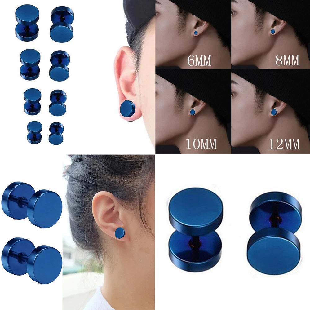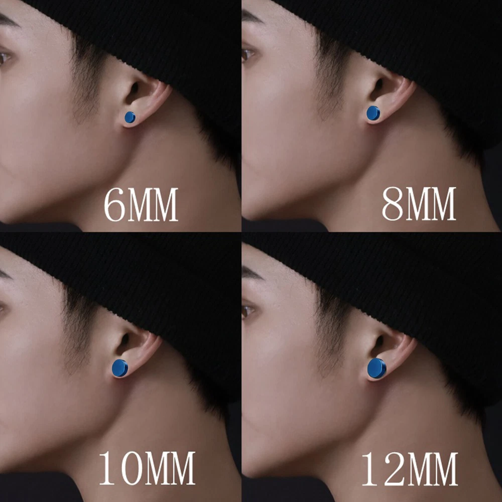 Material:Titanium Steel Size:Approx 3mm 4mm 5mm 6mm 8mm 10mm 12mm 14mm High polished surface,comfortable to wear.Great electroplating process,long-term discoloration.Excellent screw,easy to tighten or put off.No need to worry about the plug earrings for men falling off when you do some strenuous actions. Suitable for all men women.Classic punk style,simple and cool,ideal for daily wear,punk music parties,racing cars,bikers,and other occasions. 3mm/4mm/5mm/6mm/8mm/10mm/12mm/14mm disc size for choice,select it by your preference and need.Single wear or multiple wears gives you different cool experiences. The punk stud earrings are minimalist and fashionable.Fully show men's masculinity and cool personality.Great as a daily surprise or special gift to yourself,your boyfriend,your brother,your father when on birthday,date,Fathers'Day,Thanksgiving Day,etc. Package includes:1 Pair Earring Notes: 1.Due to the different monitor and light effect,the actual color of the item might be slightly different from the color showed on the pictures.Thank you. 2.Please allow 2-3% measuring deviation due to manual measureme.