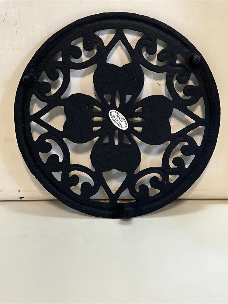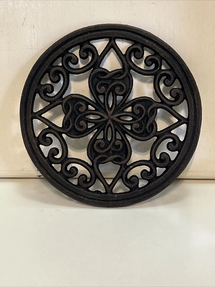 Vintage Cast Iron Trivet with Tile Design for Kitchen or Wall Decor